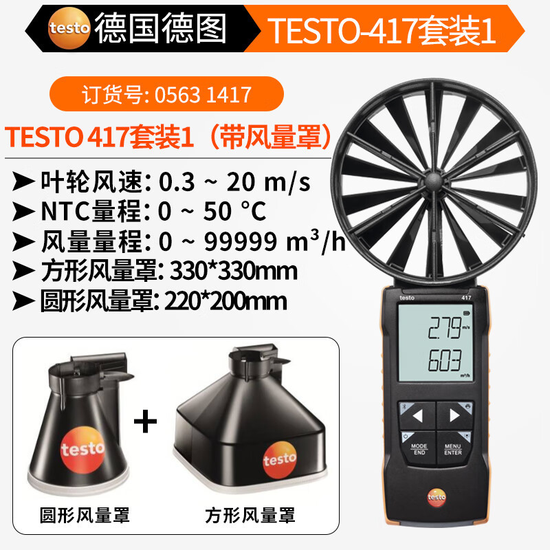 Testo testo417 анемометр с большим рабочим колесом, измерение выхода воздуха в помещении, скорость ветра, объем воздуха, температура, комплект воздуховодов