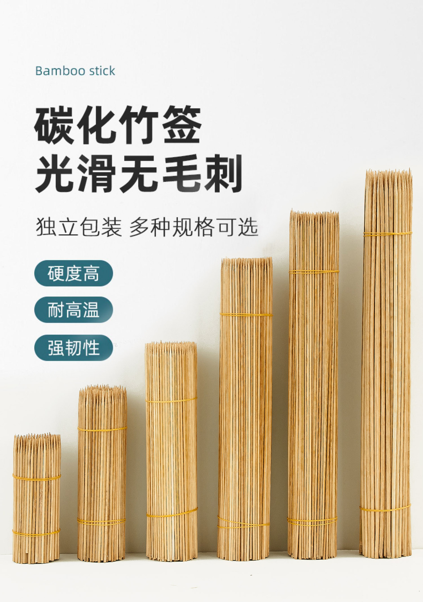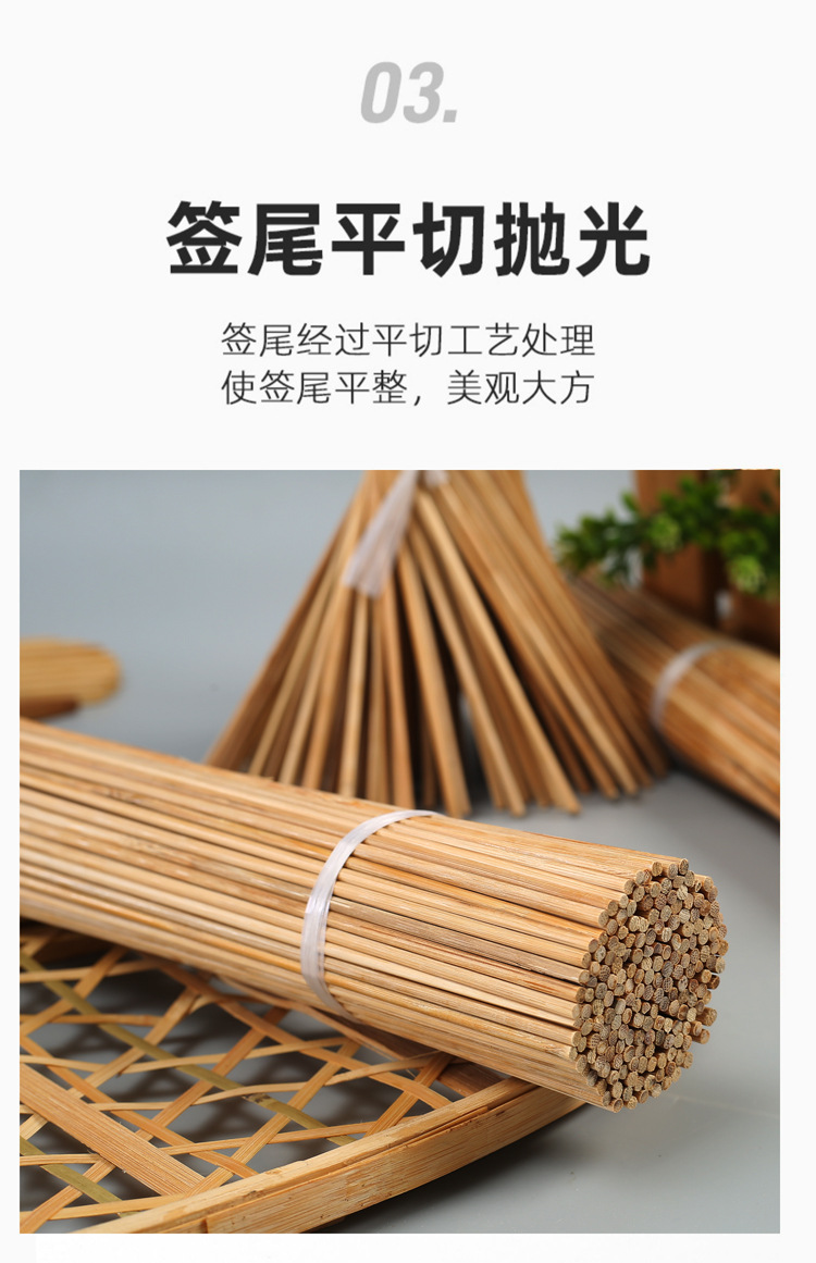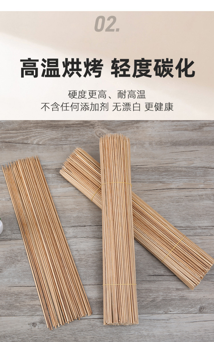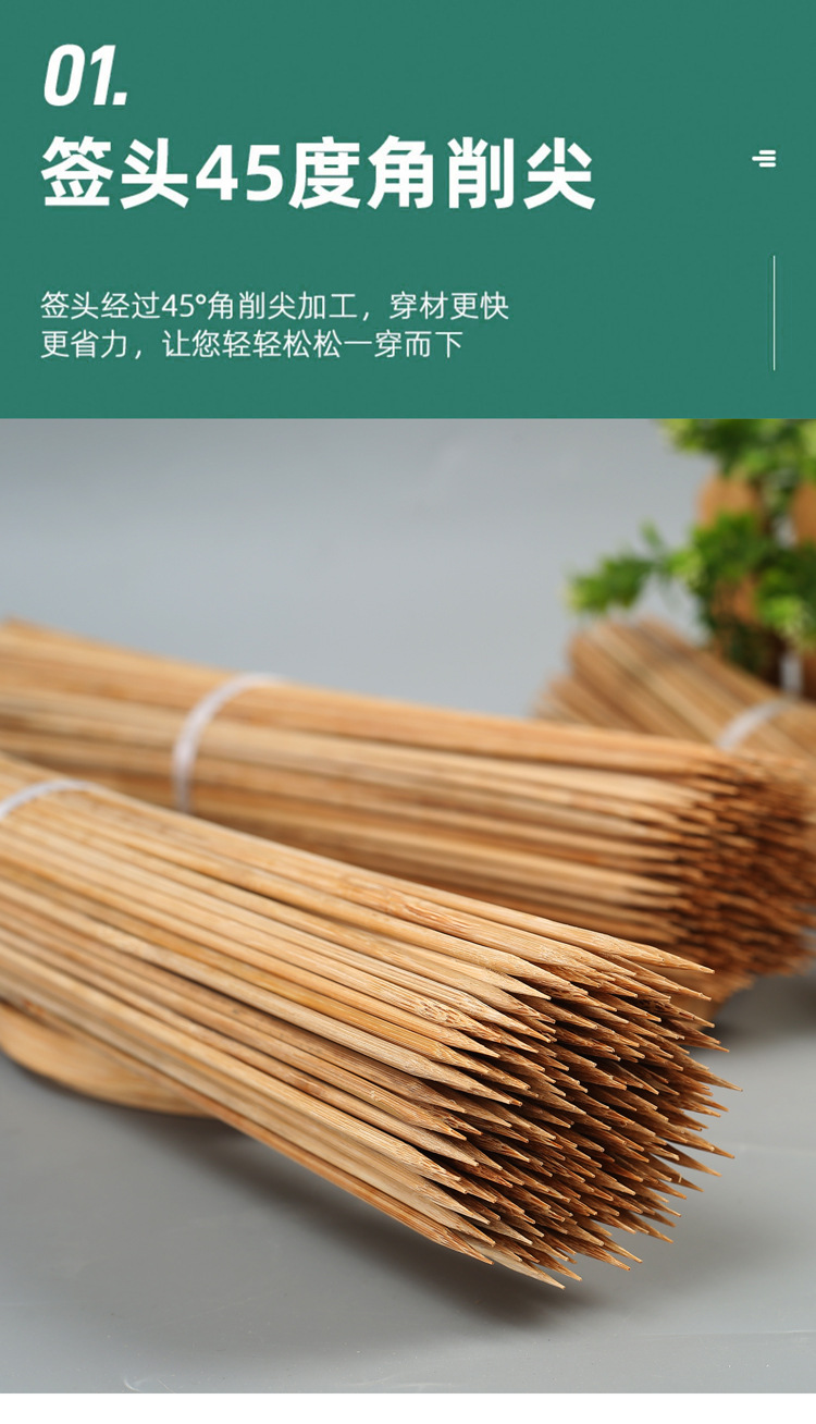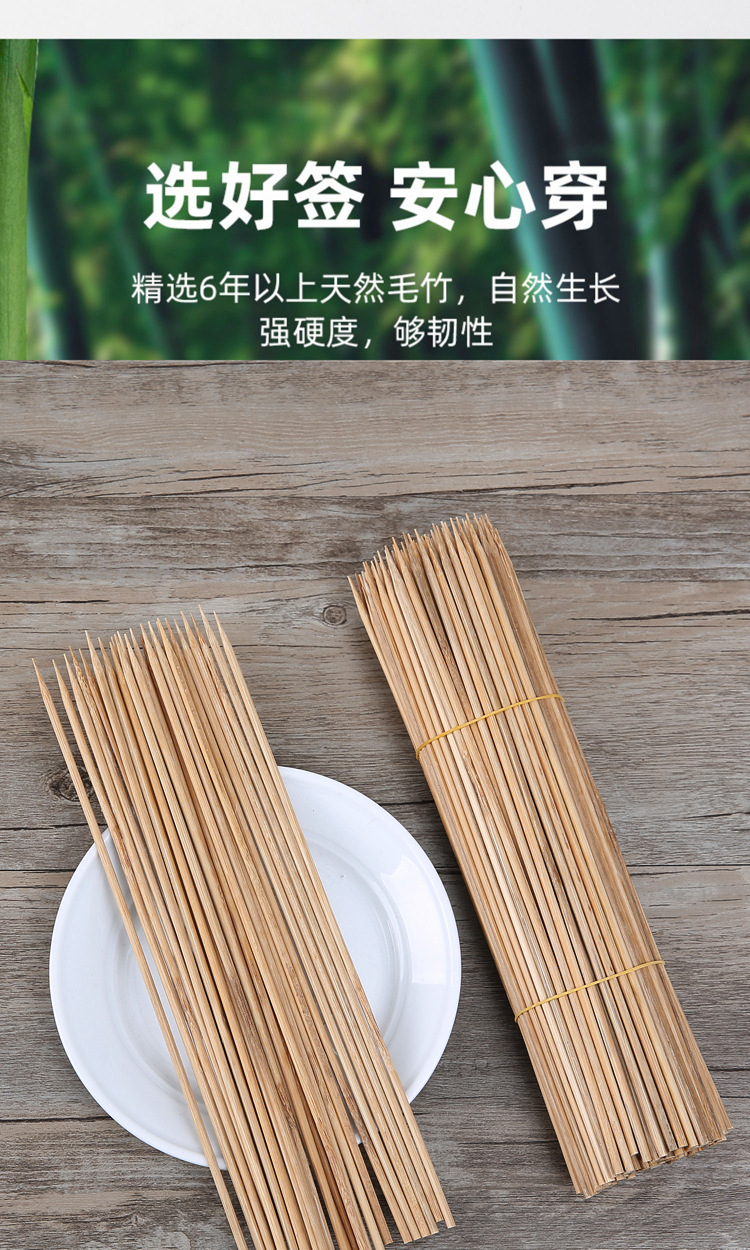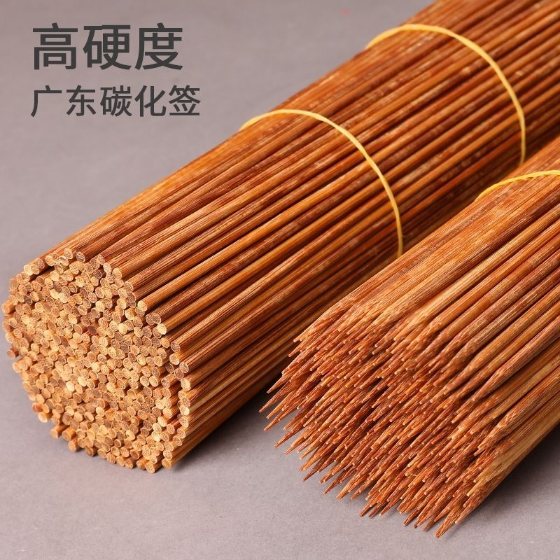 Оптовые одноразовые бамбуковые шампуры для барбекю коммерческого использования, изготовленные из твердого карбонизированного материала Гуандун, подходят для шашлыков из баранины и шашлыков на гриле.