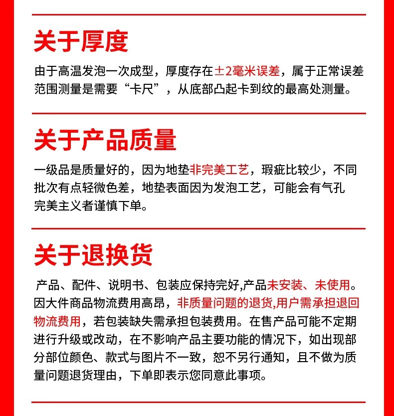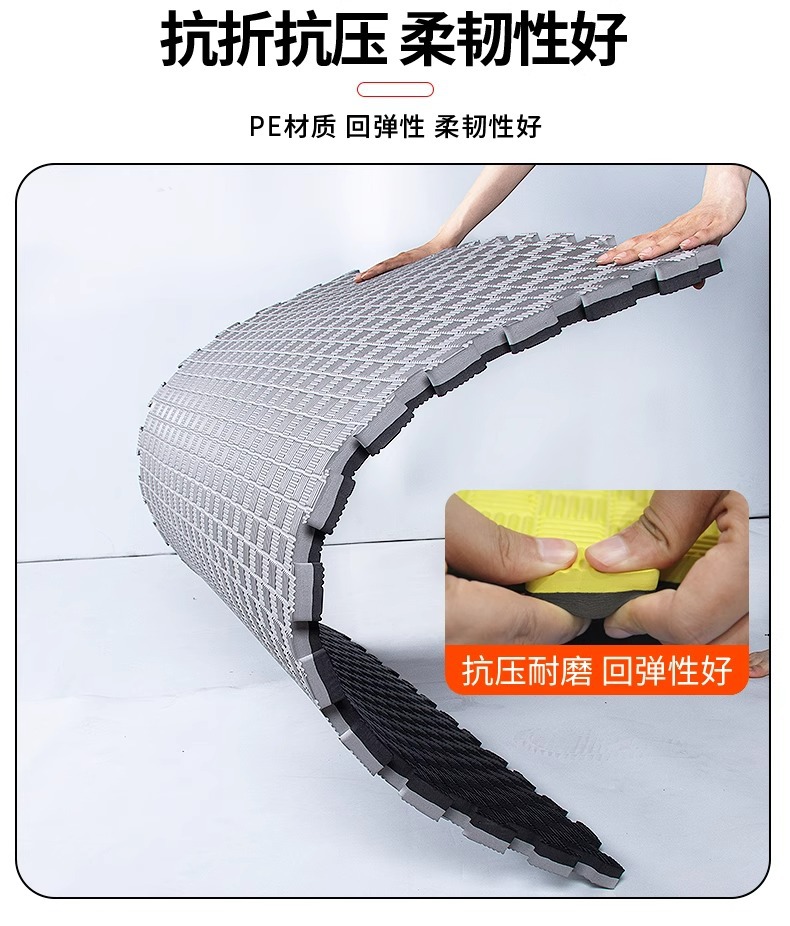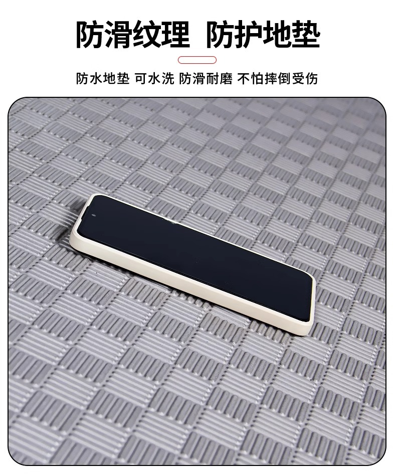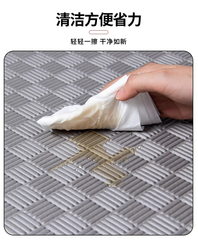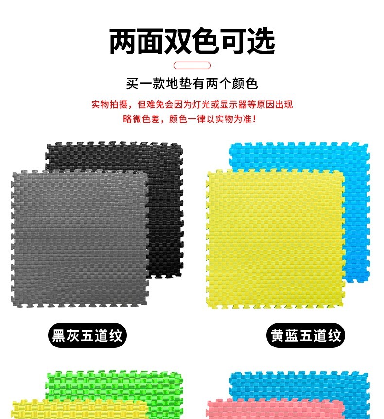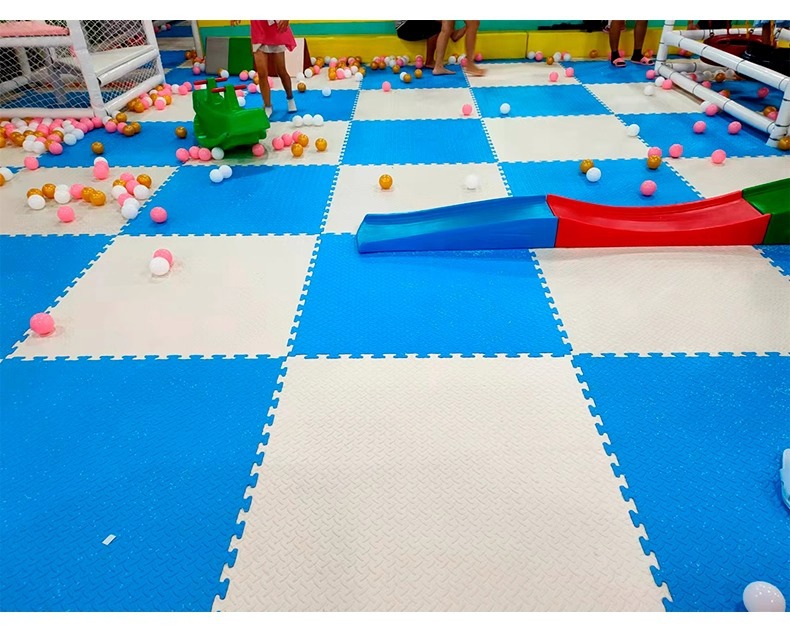 垫子是塑料颗粒经高温发泡而成,是有轻微味道的,铺上后通风几天基本就闻不到了,可放心使用。