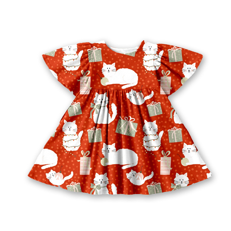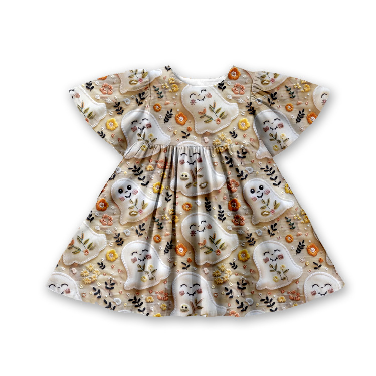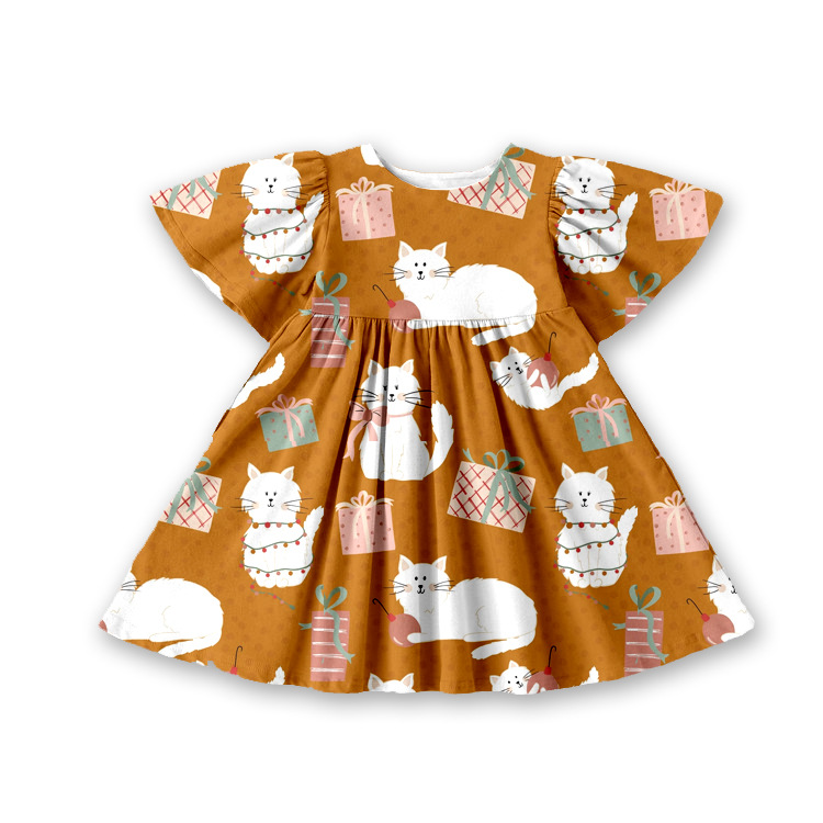 Оптовые трансграничные летние платья для девочек с летящими рукавами, индивидуального пошива, с множеством принтов и милыми модными элементами