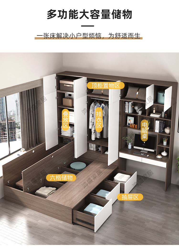 Татами-кровать с интегрированным шкафом для малогабаритных квартир, многофункциональная кровать-гардероб с местом для хранения, детский стол, комбинированная кровать