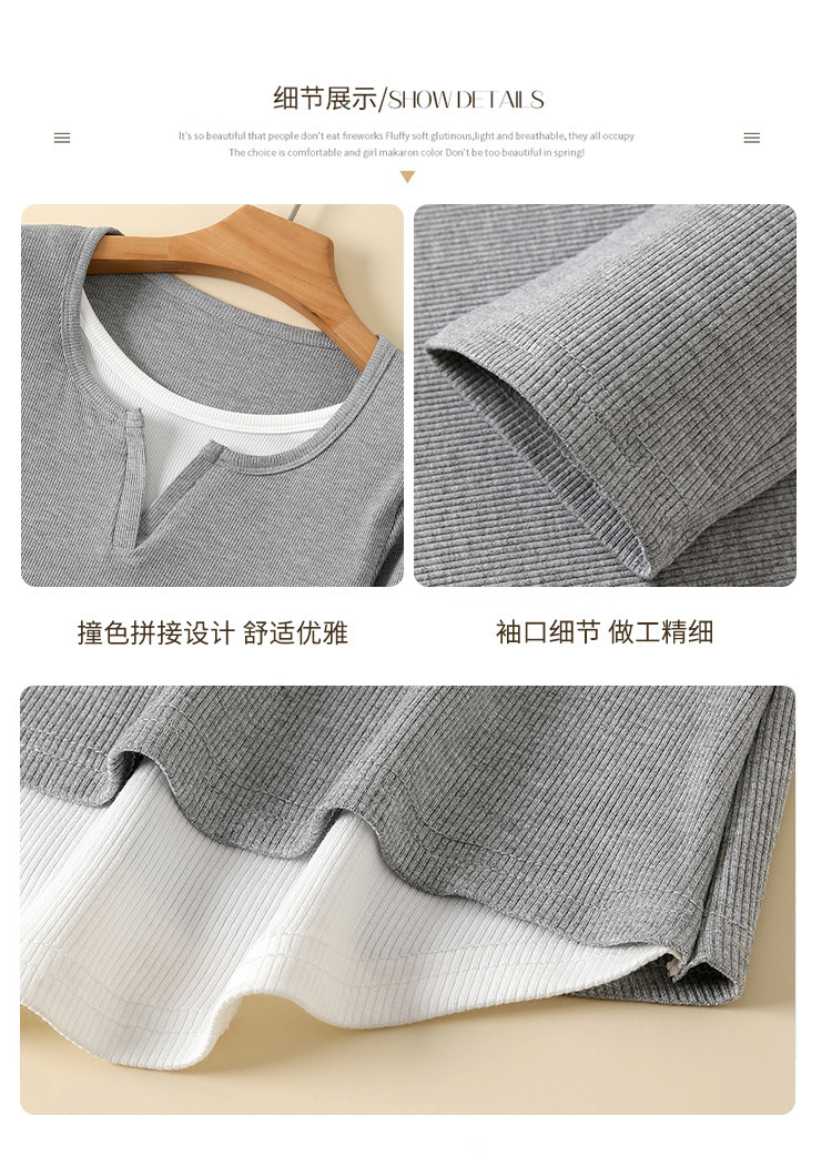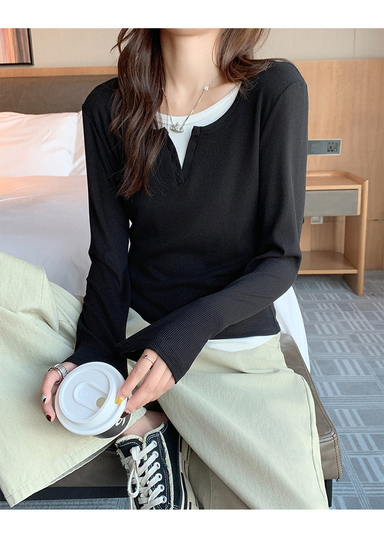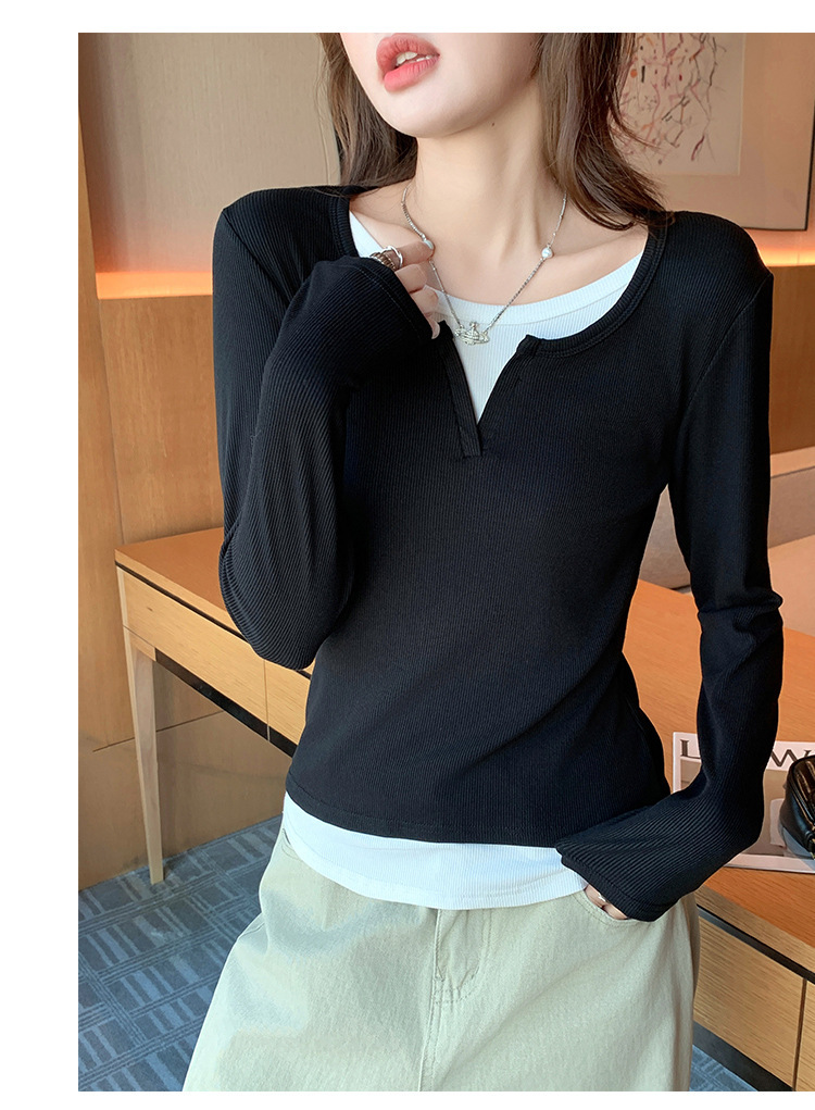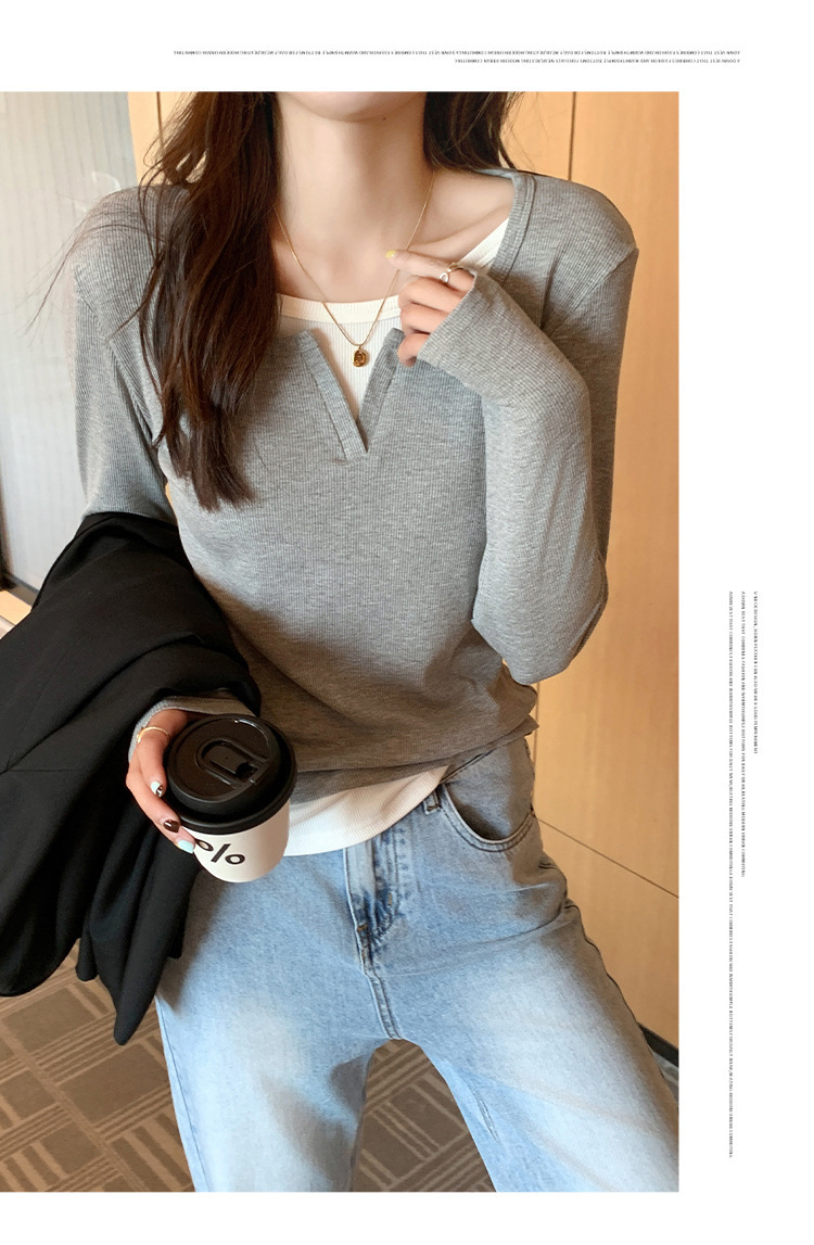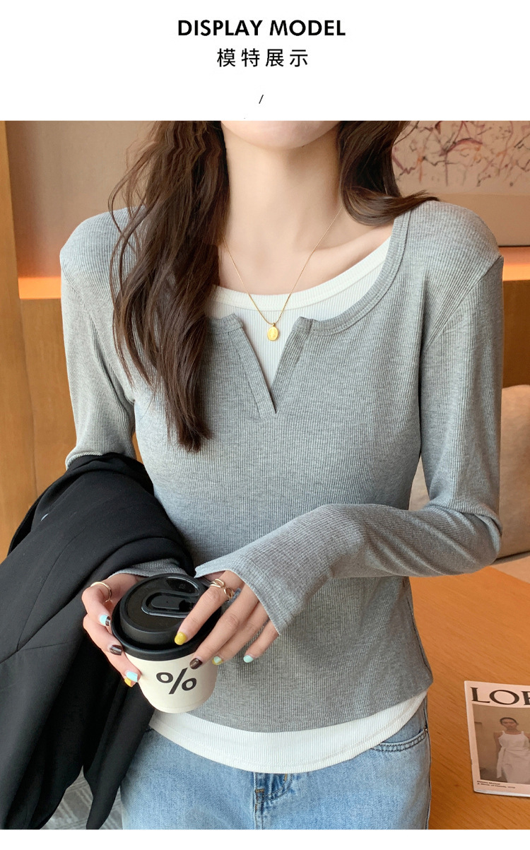 Женская футболка с длинными рукавами из двух частей, осенняя, стройнящая, шикарный и красивый топ, рубашка с круглым вырезом.