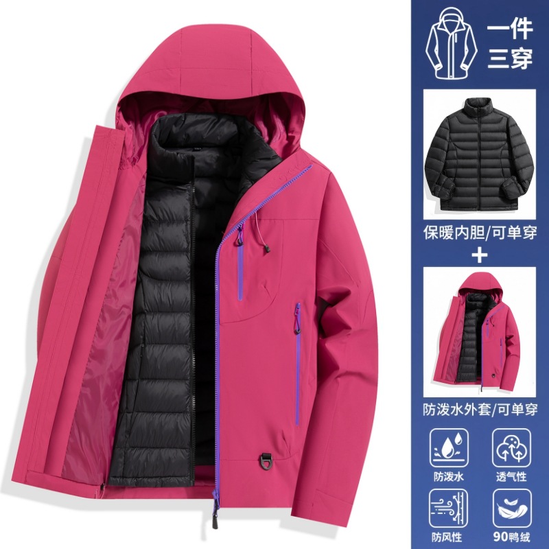 Kongshan Rain Outdoor Jacket Женская осенне-зимняя жесткая ветрозащитная и водонепроницаемая куртка «три в одном» с капюшоном Альпинистская куртка Мужская 25