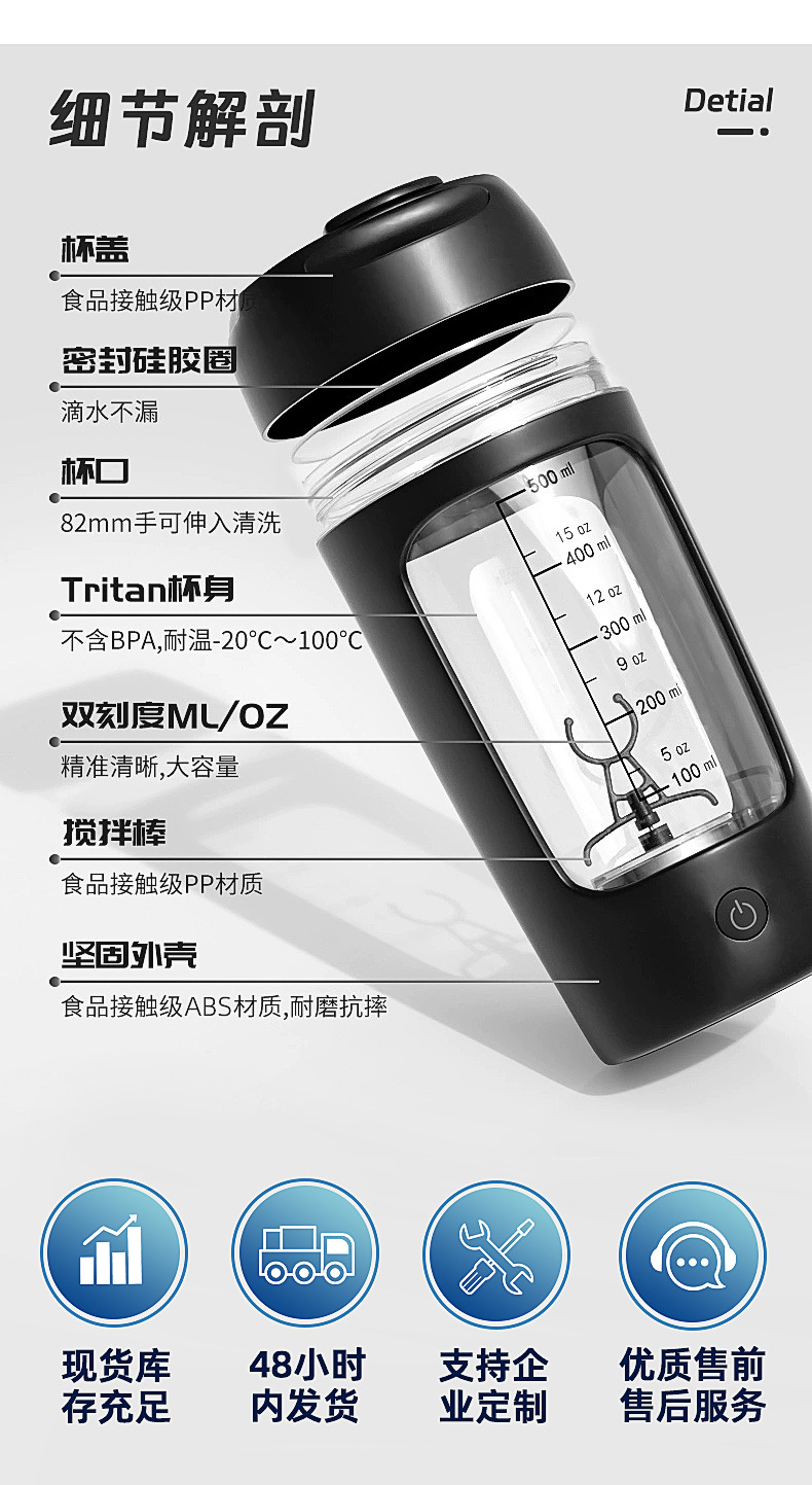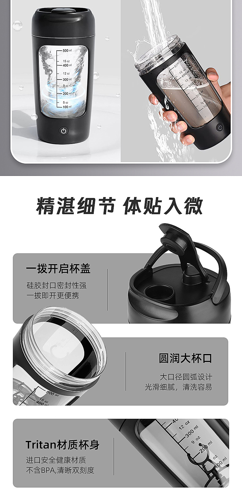 Электрический шейкер для смешивания, портативный, для занятий спортом на открытом воздухе и фитнеса, для протеинового порошка, оптовая продажа, кружка для воды