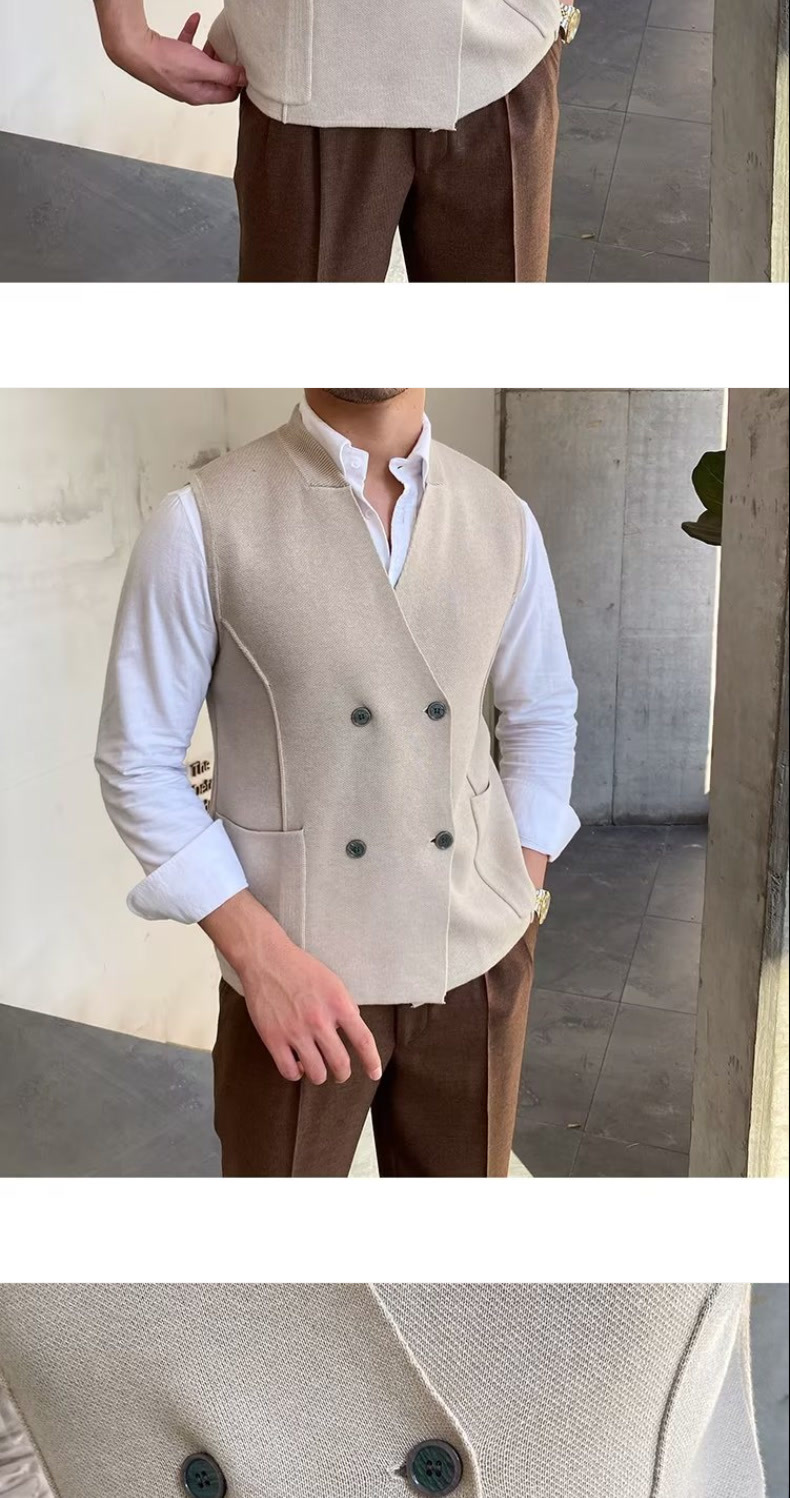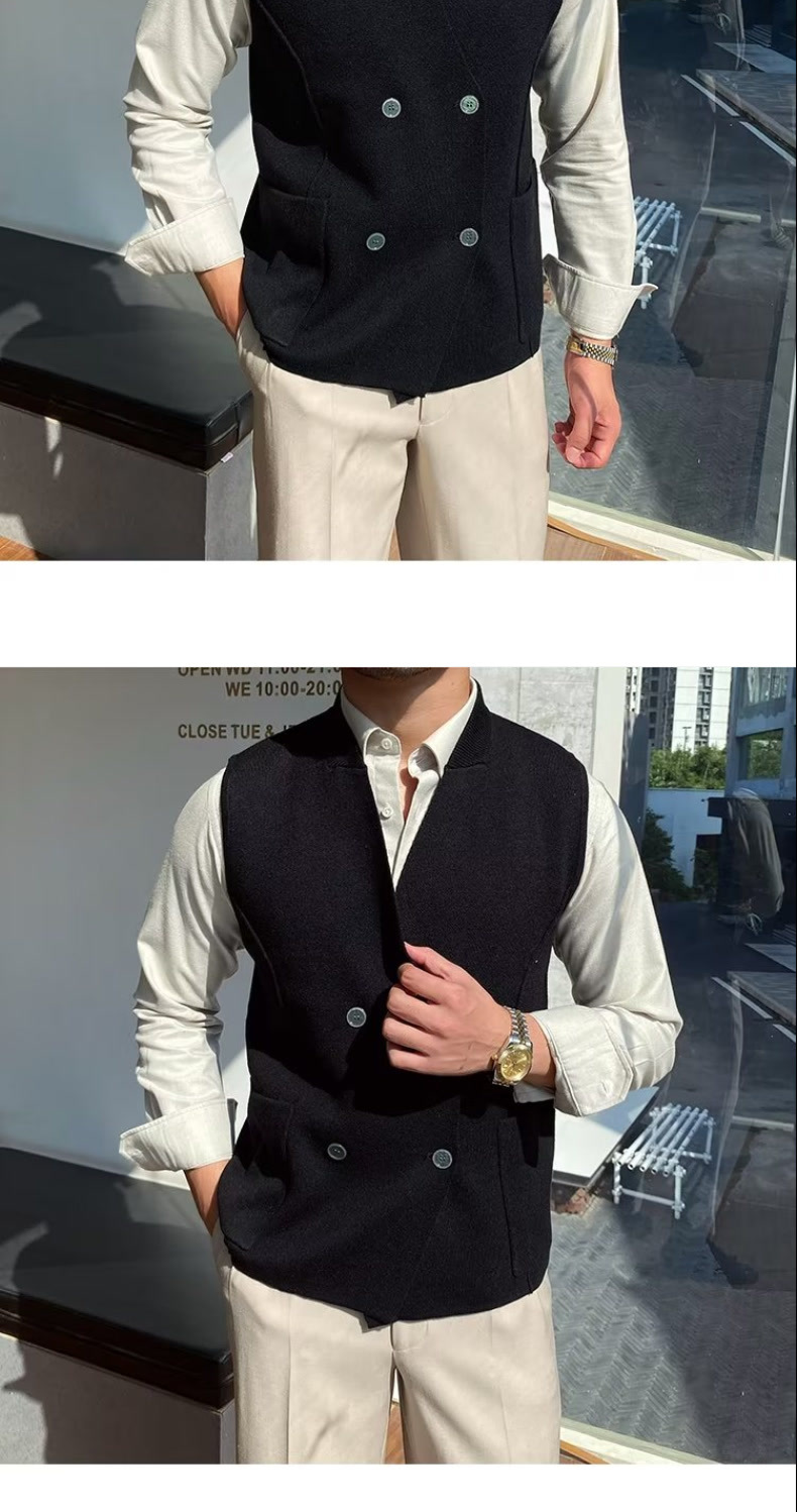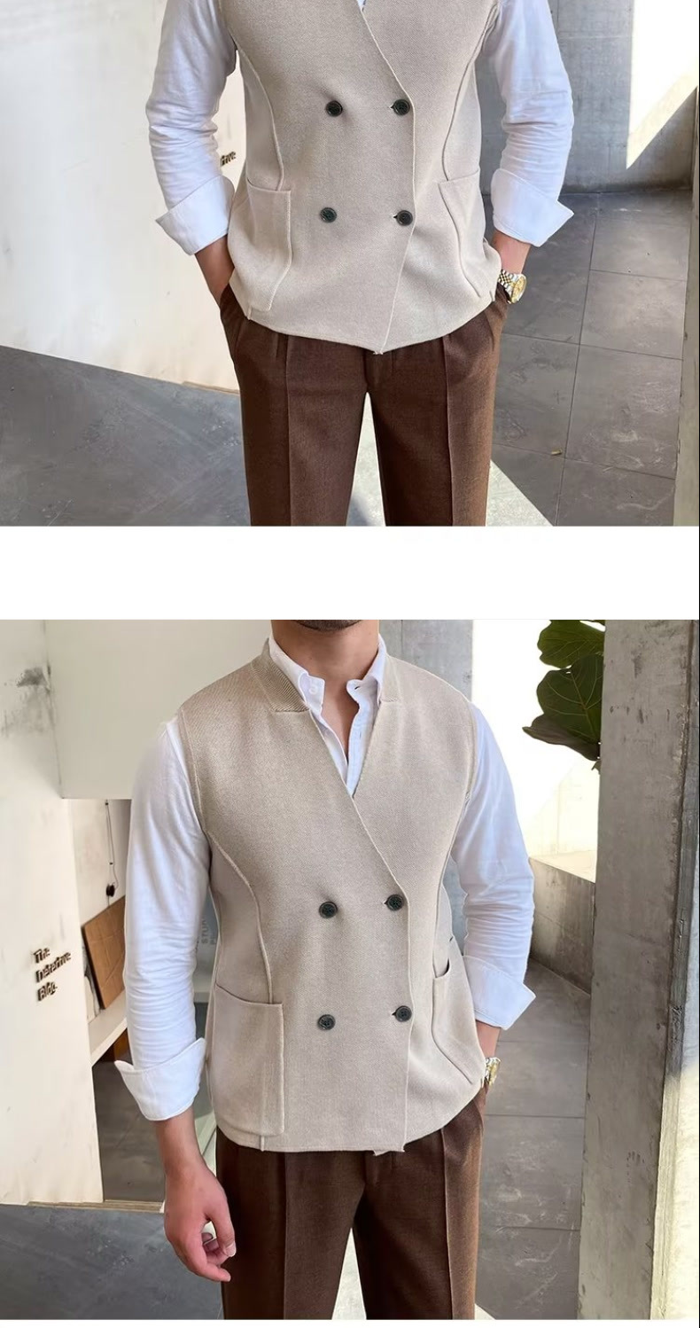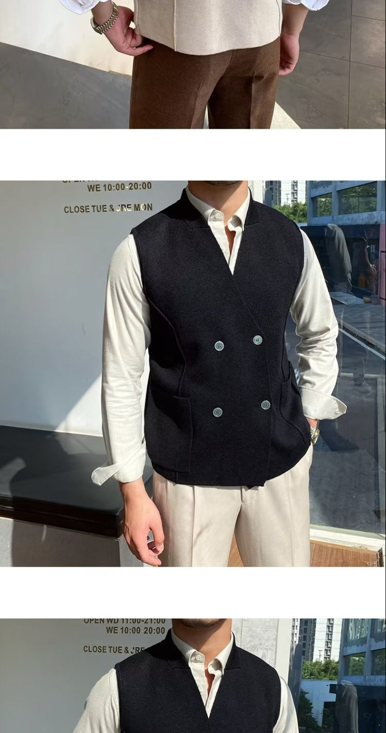 Осенний мужской тонкий шерстяной жилет в британском стиле ретро в елочку, повседневный шерстяной двубортный жилет для костюма