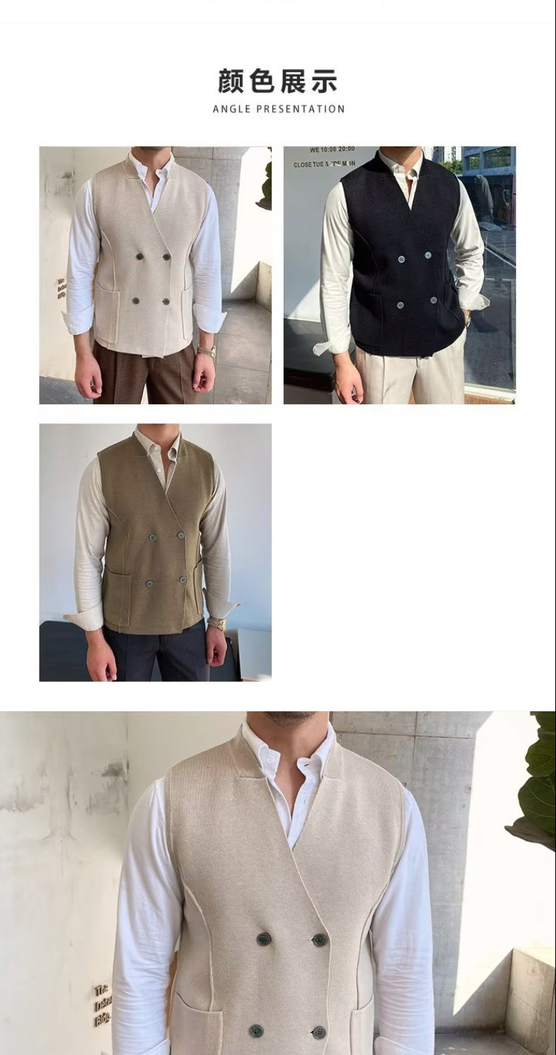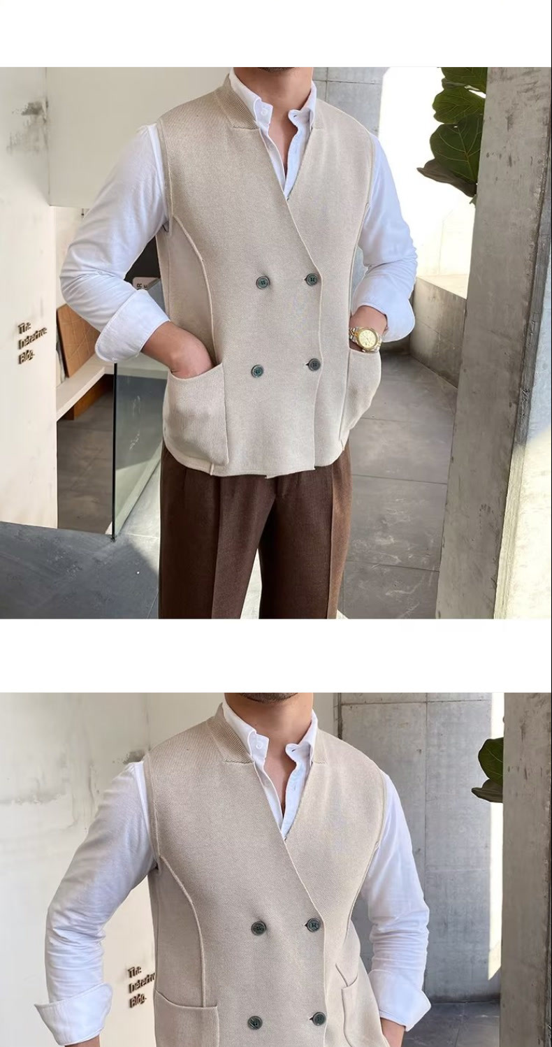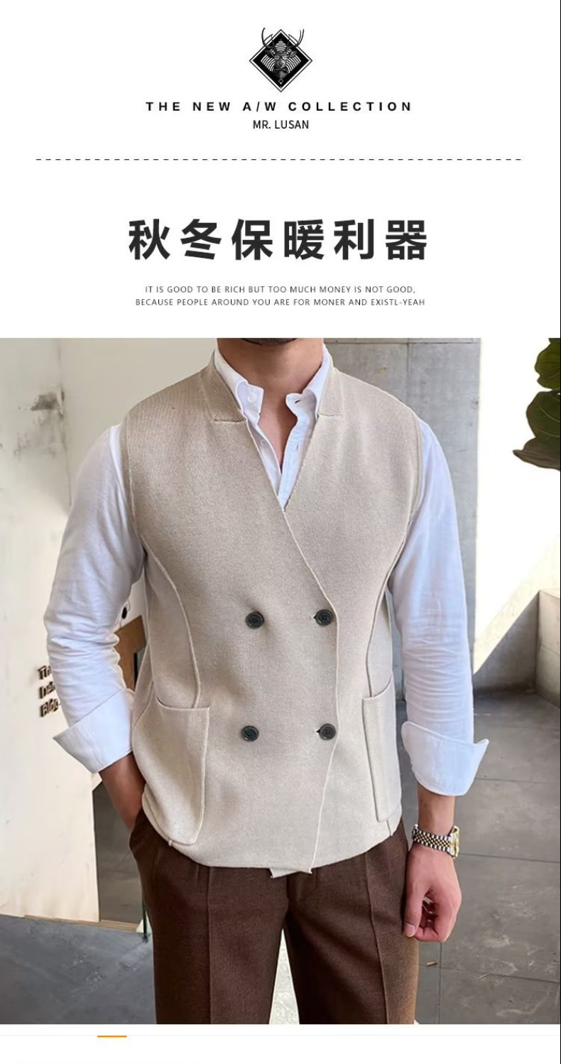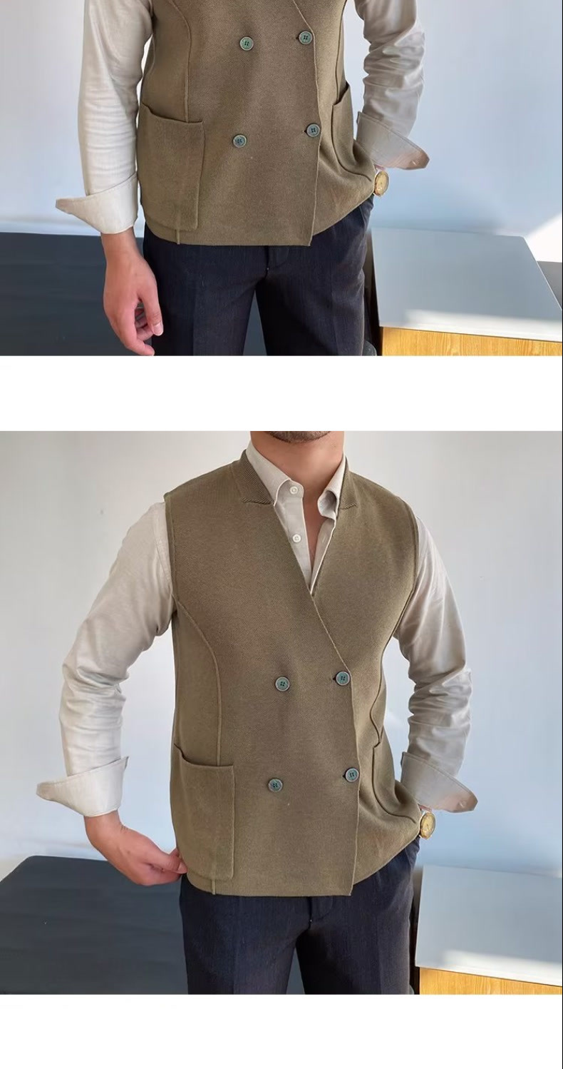 Осенний мужской тонкий шерстяной жилет в британском стиле ретро в елочку, повседневный шерстяной двубортный жилет для костюма