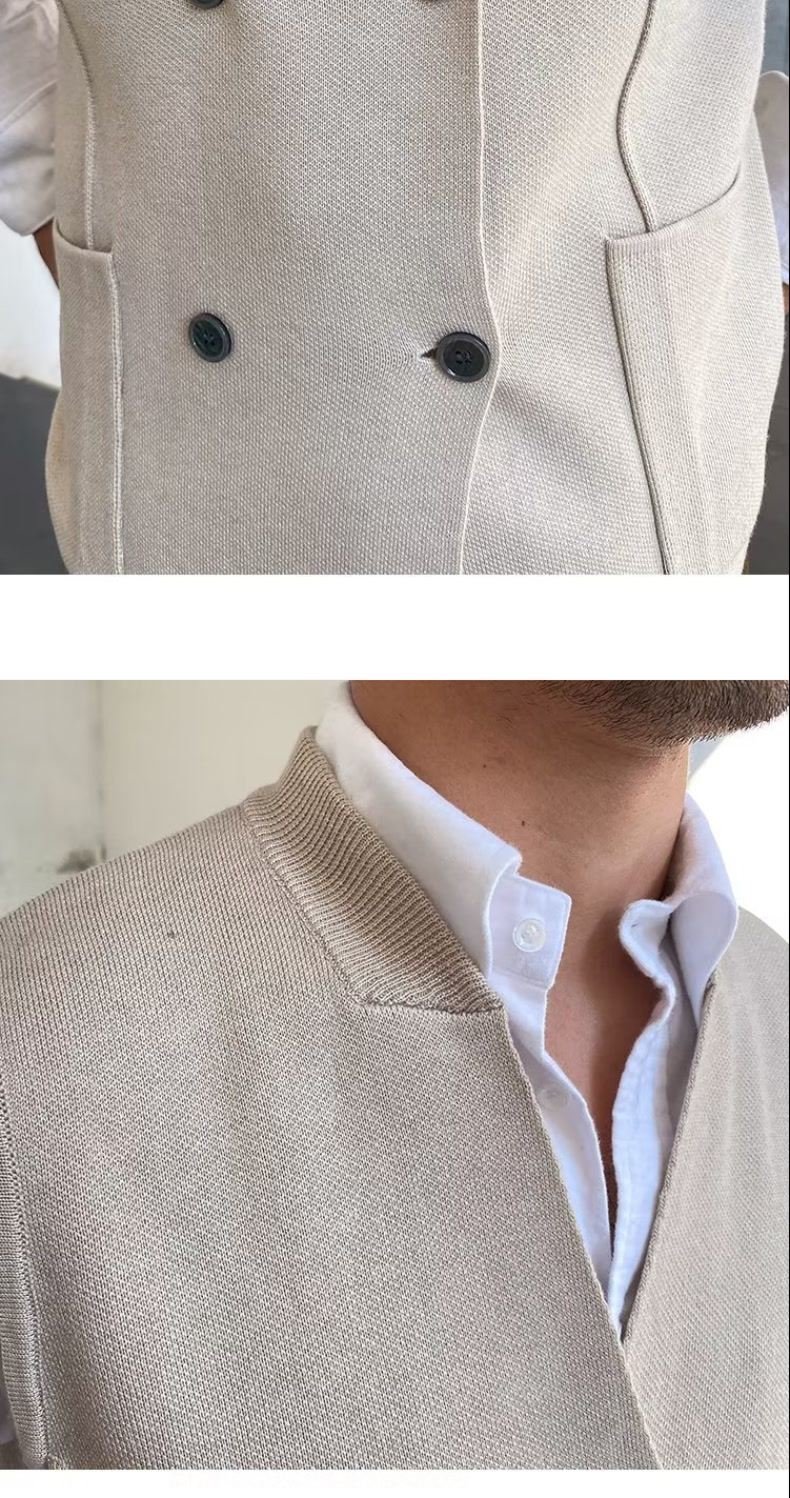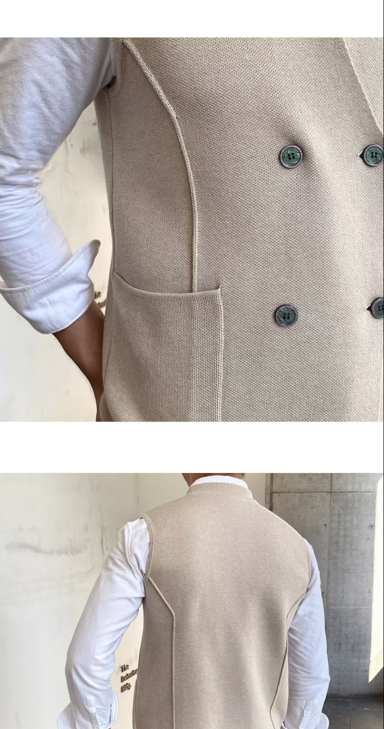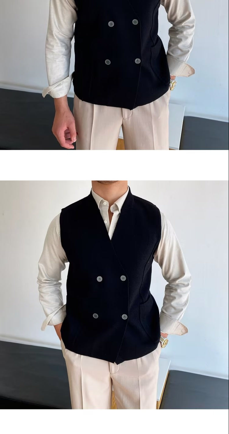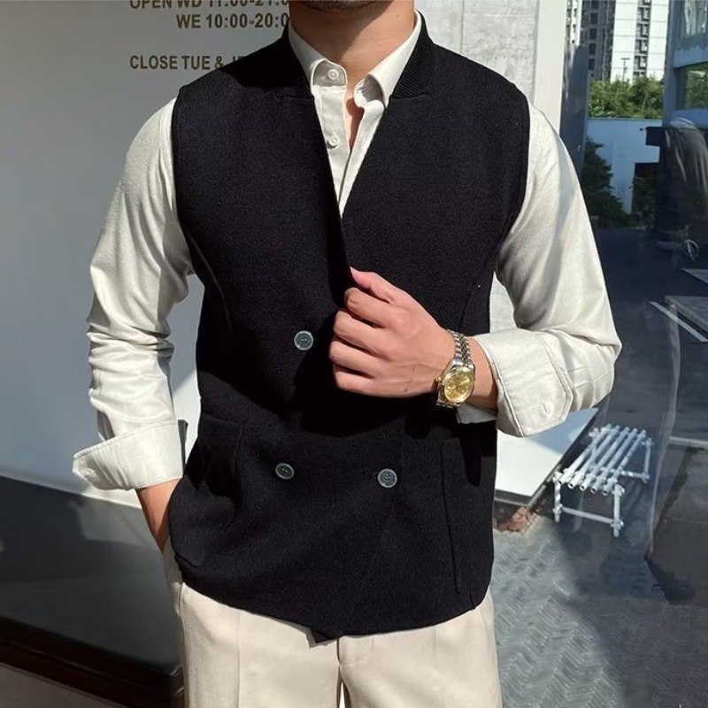 Осенний мужской тонкий шерстяной жилет в британском стиле ретро в елочку, повседневный шерстяной двубортный жилет для костюма