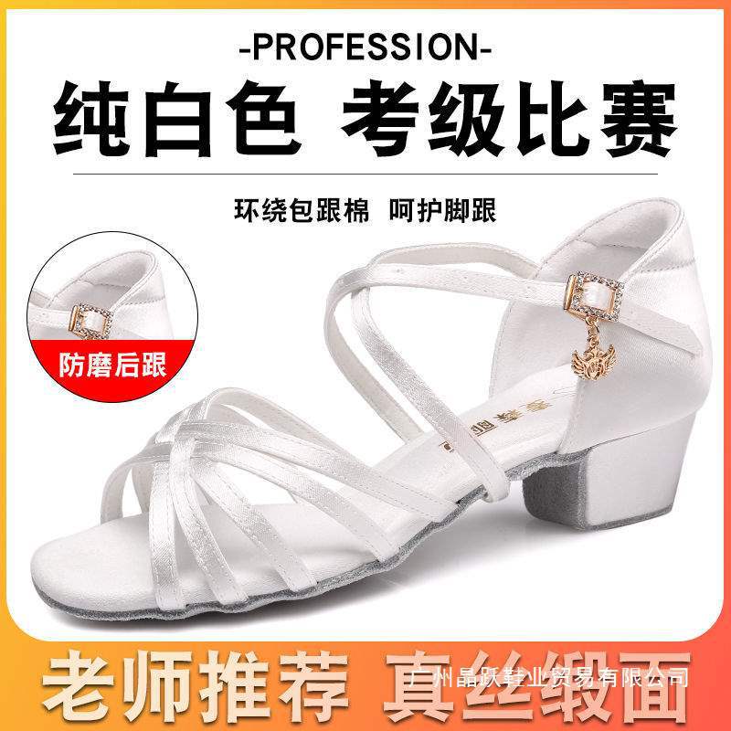 Детские белые белые туфли для латинских танцев, профессиональные соревновательные туфли на мягкой подошве для начинающих, туфли для латинских танцев, танцевальные туфли для девочек