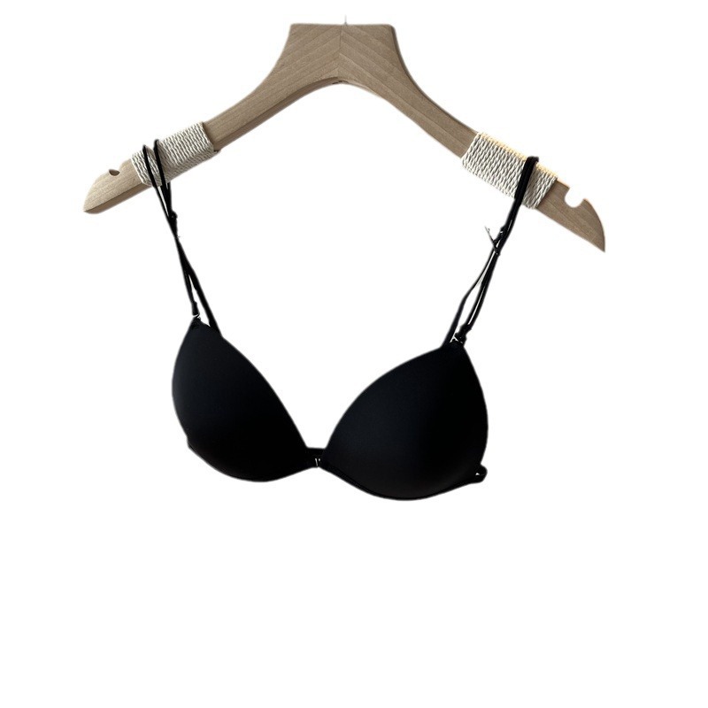 Летний красивый бюстгальтер на спине для женщин, тонкие бретельки-спагетти, бюстгальтер с французской пряжкой спереди, треугольная чашка для маленькой груди, глянцевый бесшовный бюстгальтер