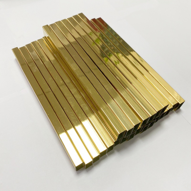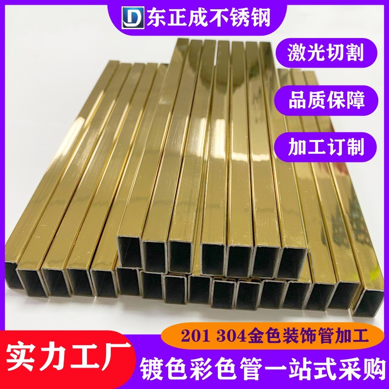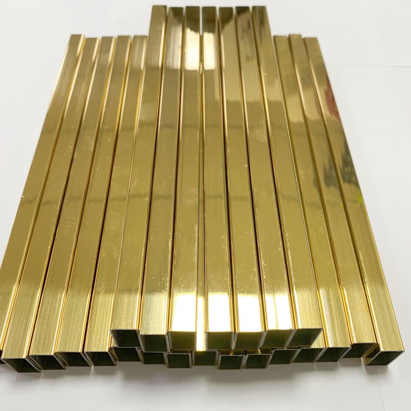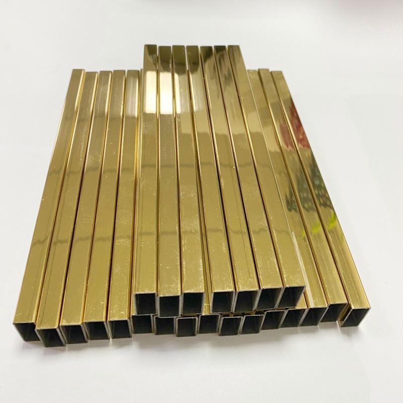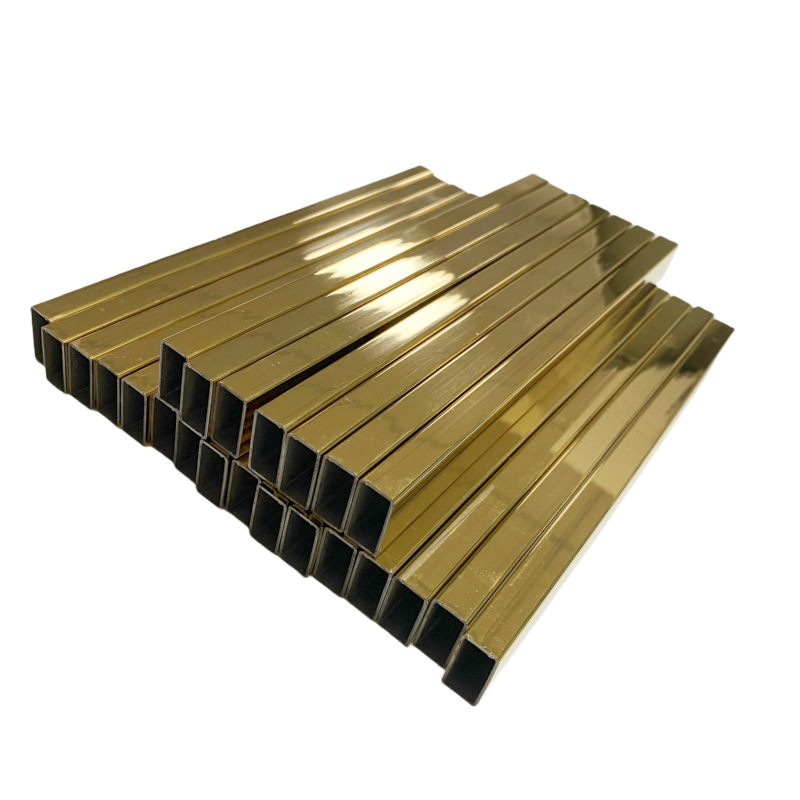 201 квадратная трубка с гальваническим покрытием золотого цвета, прямоугольная трубка из нержавеющей стали 304 из титана, декоративная сварная трубка из нержавеющей стали с золотым слитком.