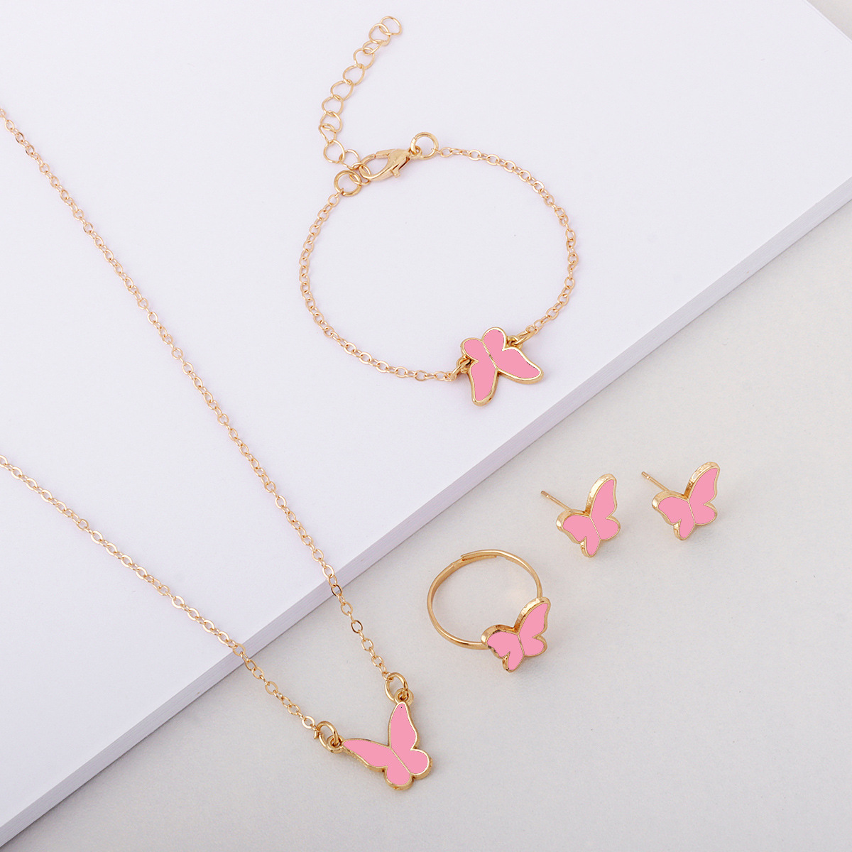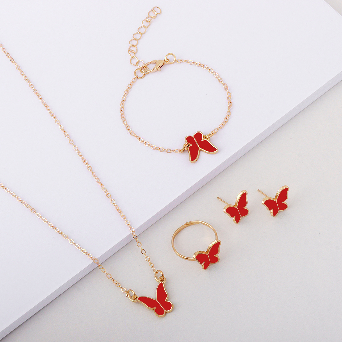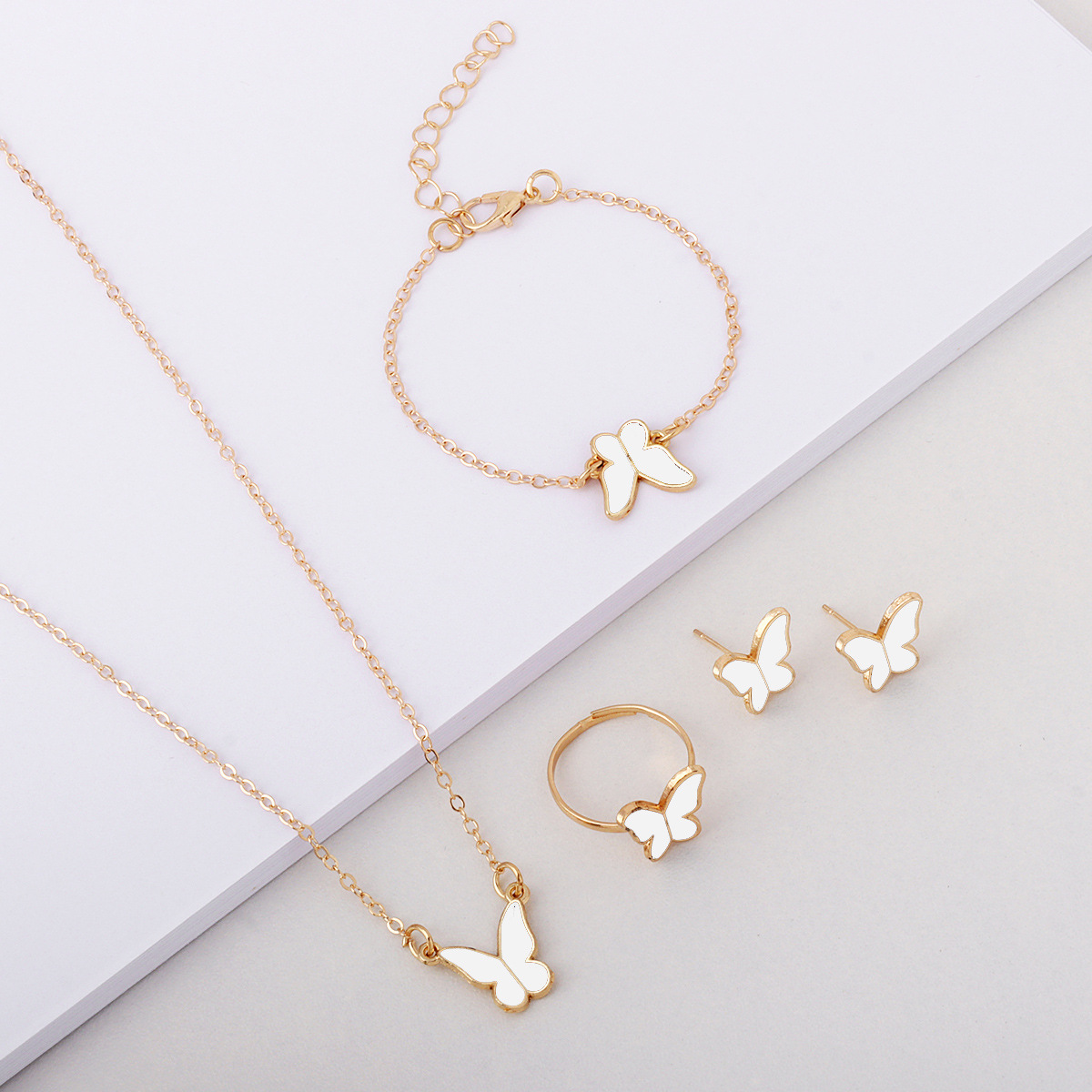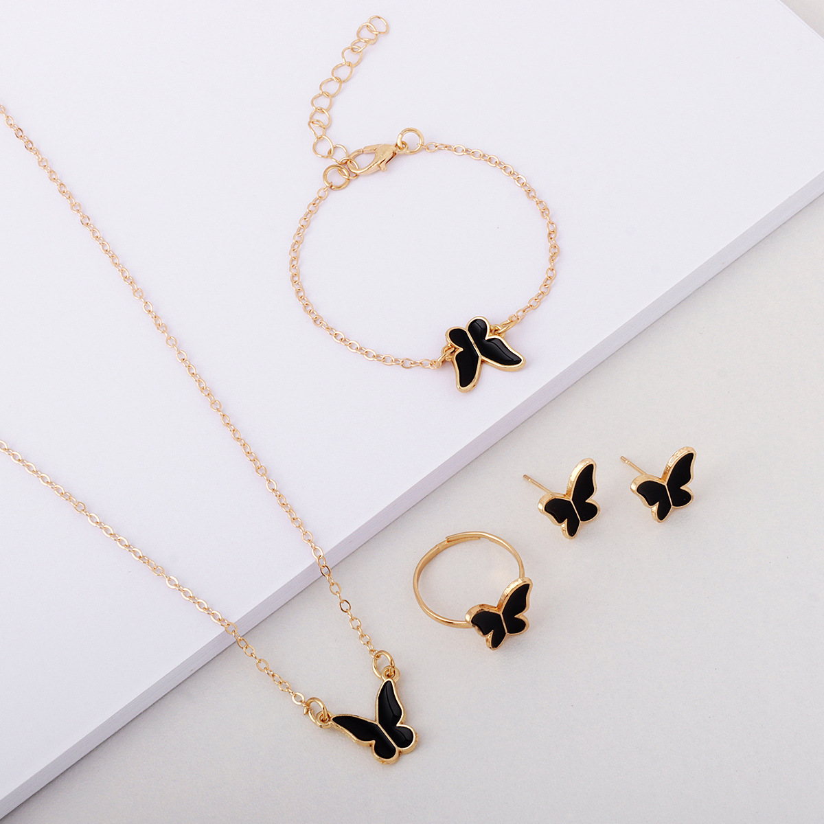 Лидер продаж, европейские и американские ювелирные изделия, женская мода, элегантное стильное ожерелье-бабочка, серьги, кольцо, браслет, комплект ювелирных изделий, оптовая продажа