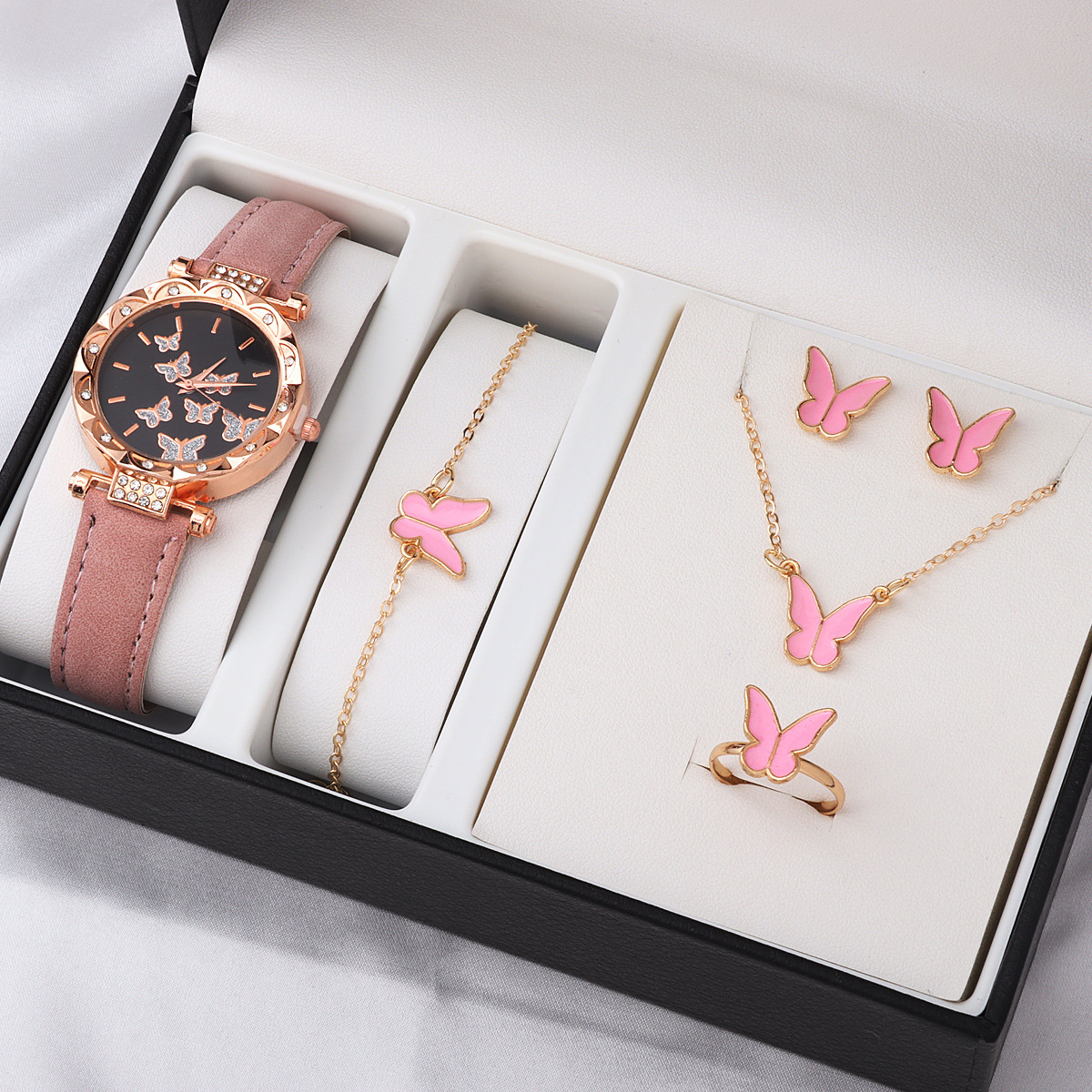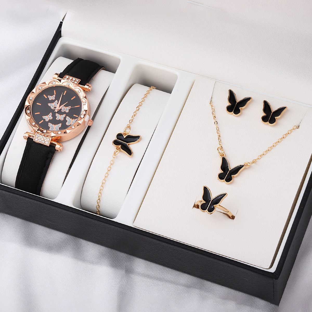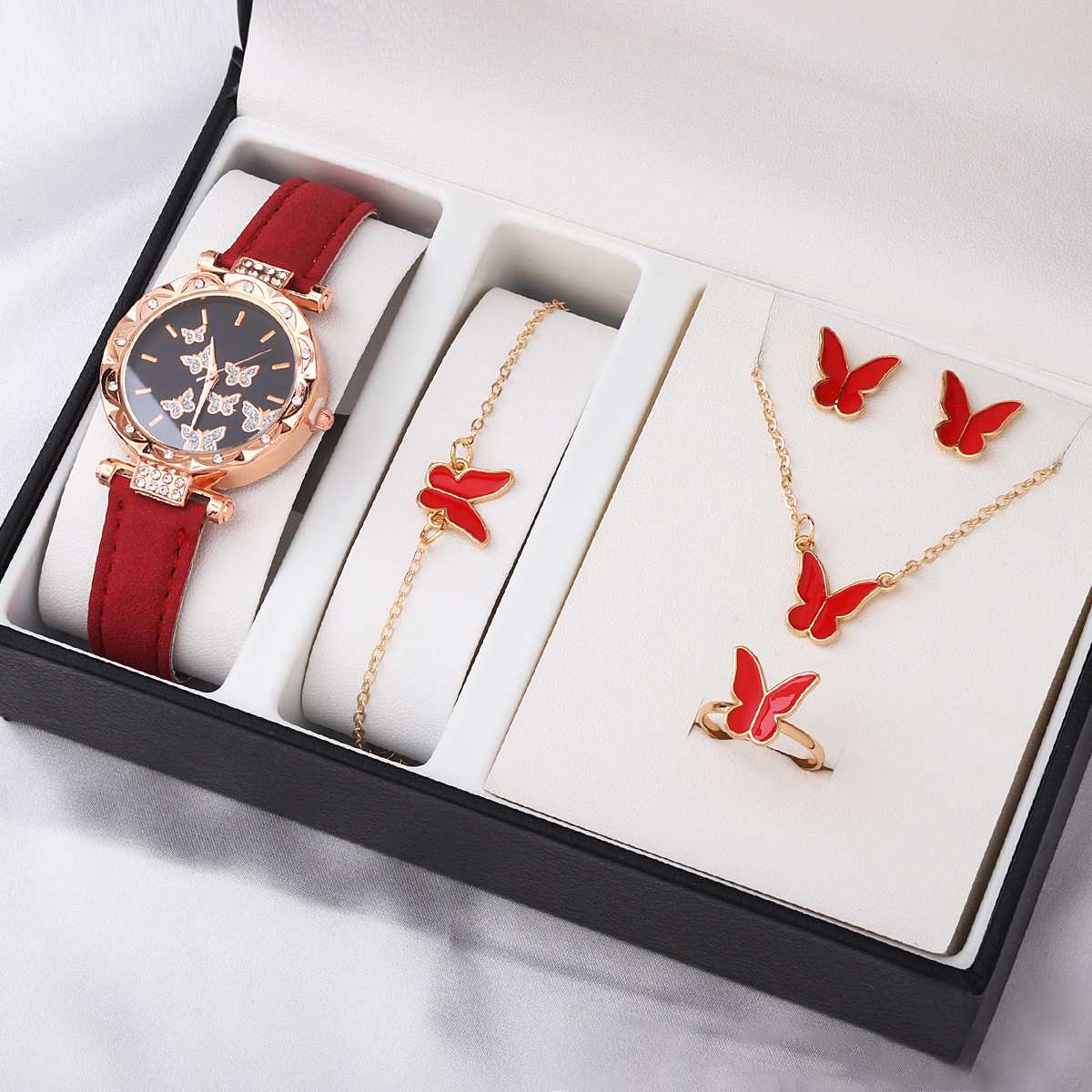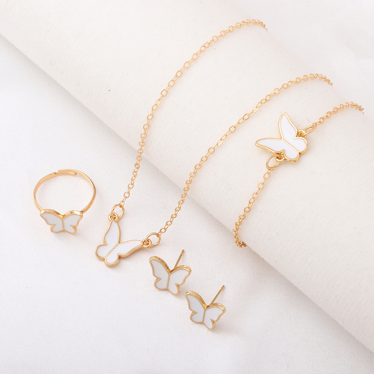 Лидер продаж, европейские и американские ювелирные изделия, женская мода, элегантное стильное ожерелье-бабочка, серьги, кольцо, браслет, комплект ювелирных изделий, оптовая продажа