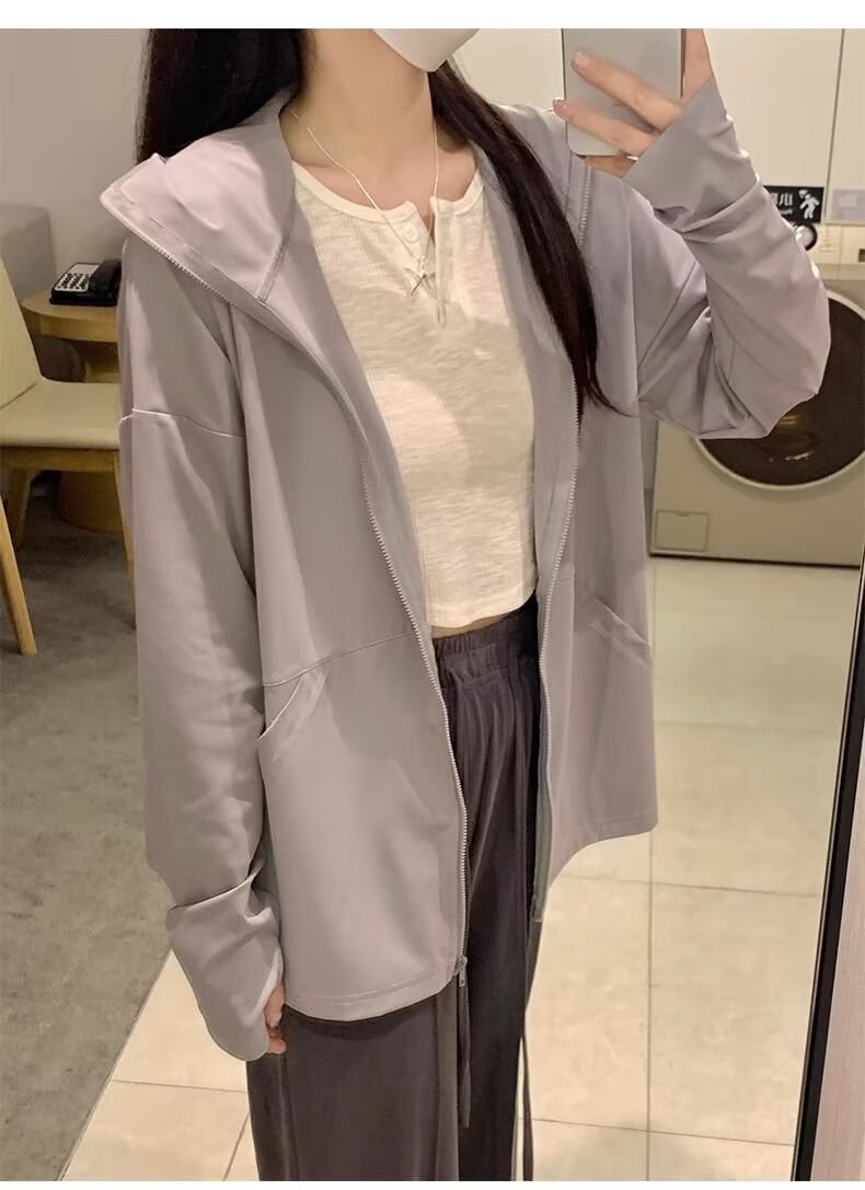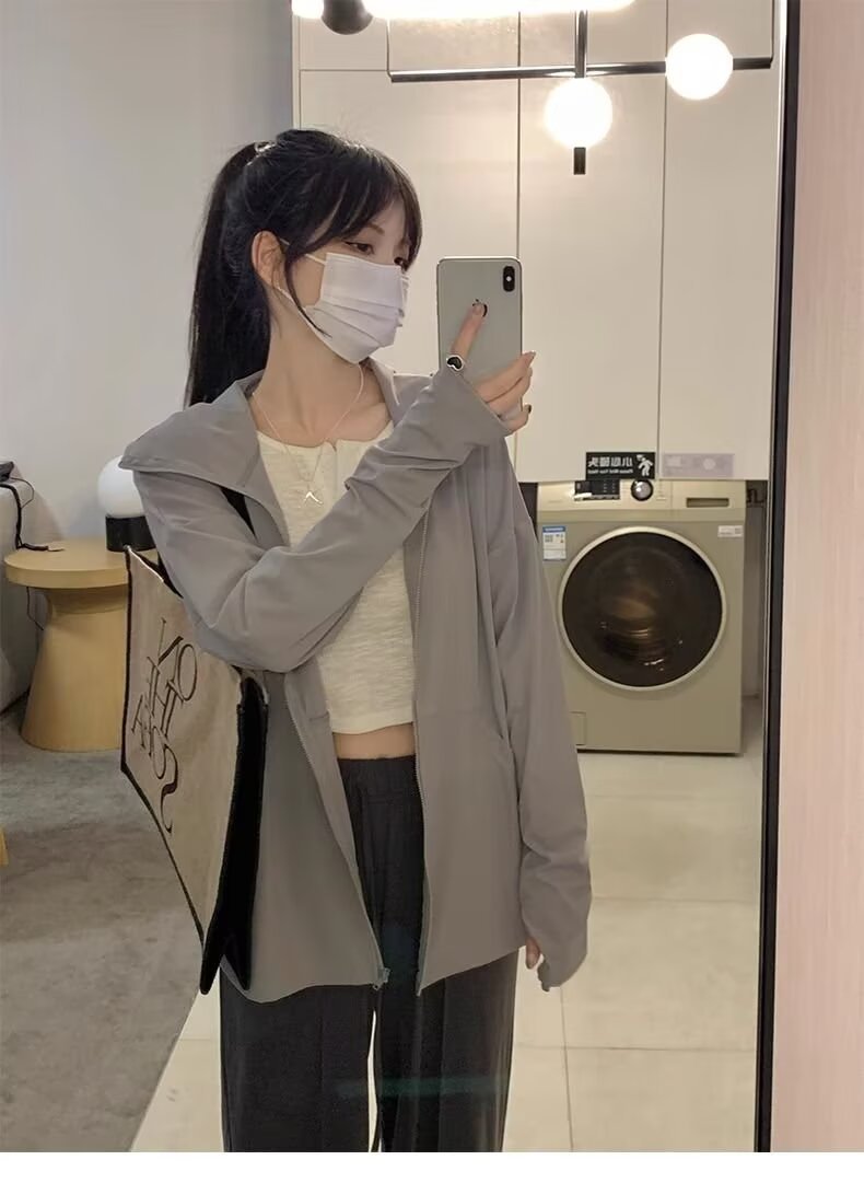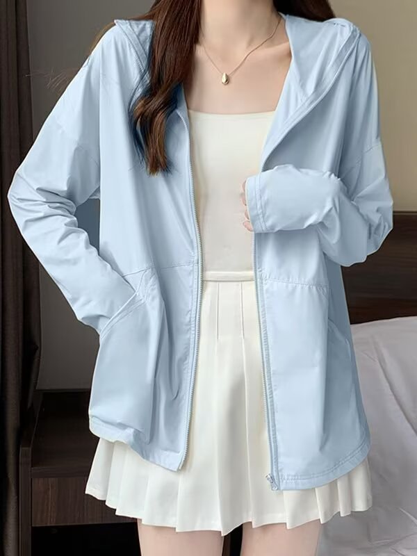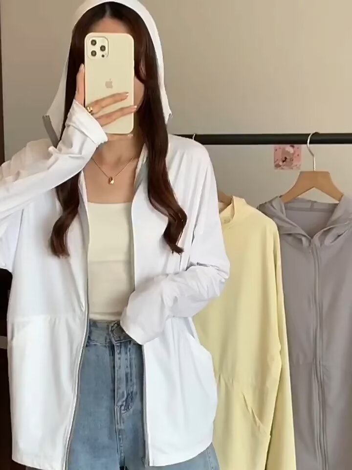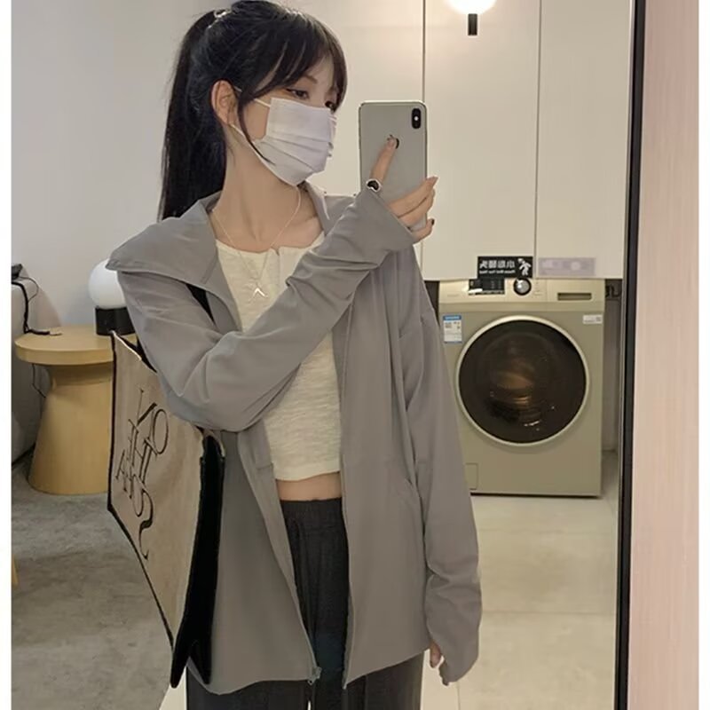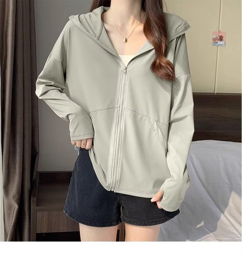 Ледяной шелк, крутая солнцезащитная одежда, женская куртка, летняя анти-УФ-свет и дышащая солнцезащитная одежда, кардиган с капюшоном, оптовая продажа