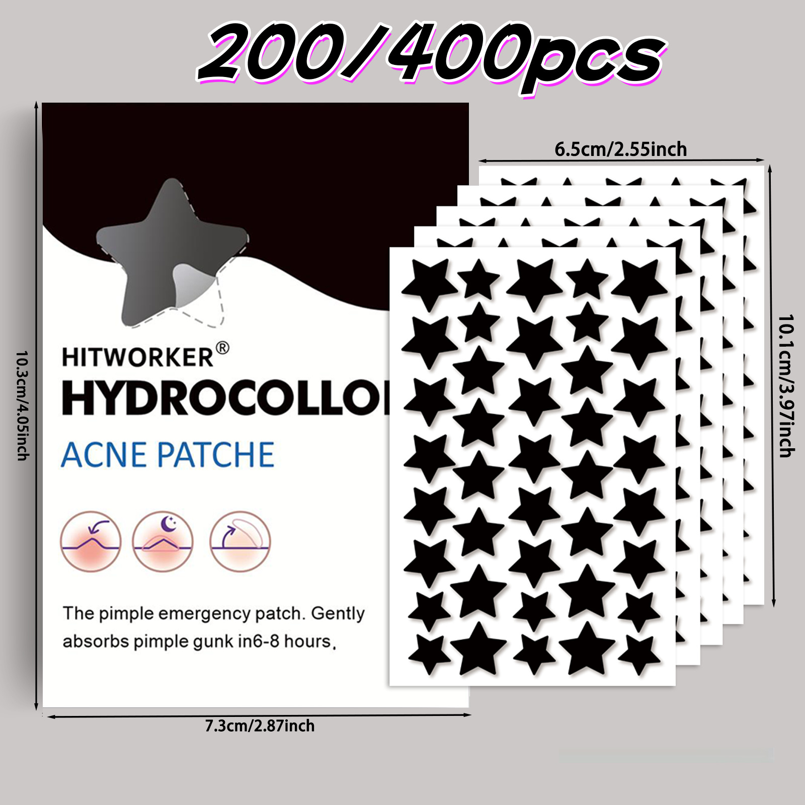 Эксклюзивная трансграничная поставка комбинированных пластырей от прыщей различных спецификаций, популярные пластыри от прыщей со звездами 200/400 шт.