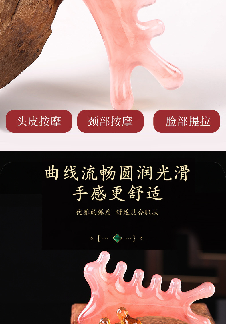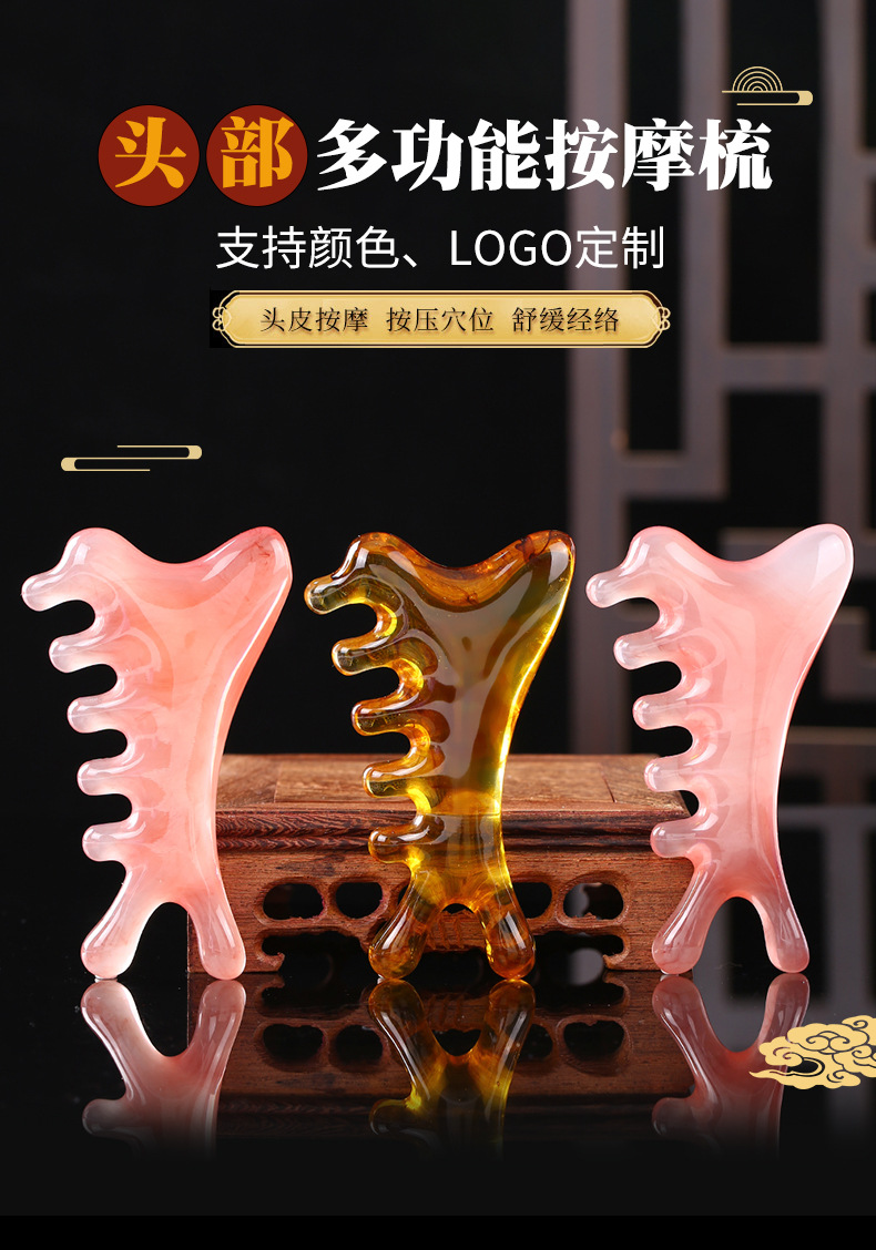 树脂抖音爆款多功能四合一按摩梳养生下颚面脸部美容刮痧板经络刷