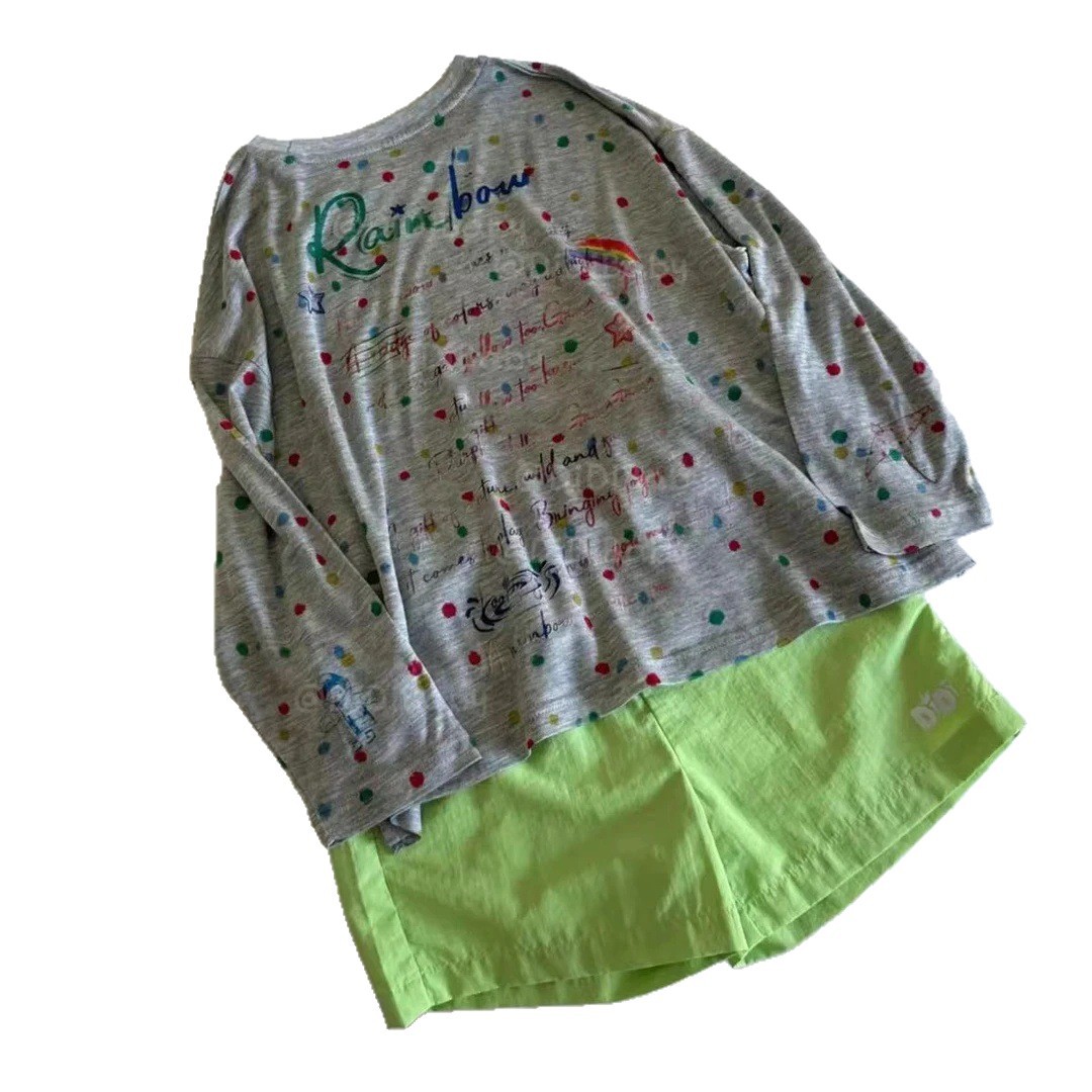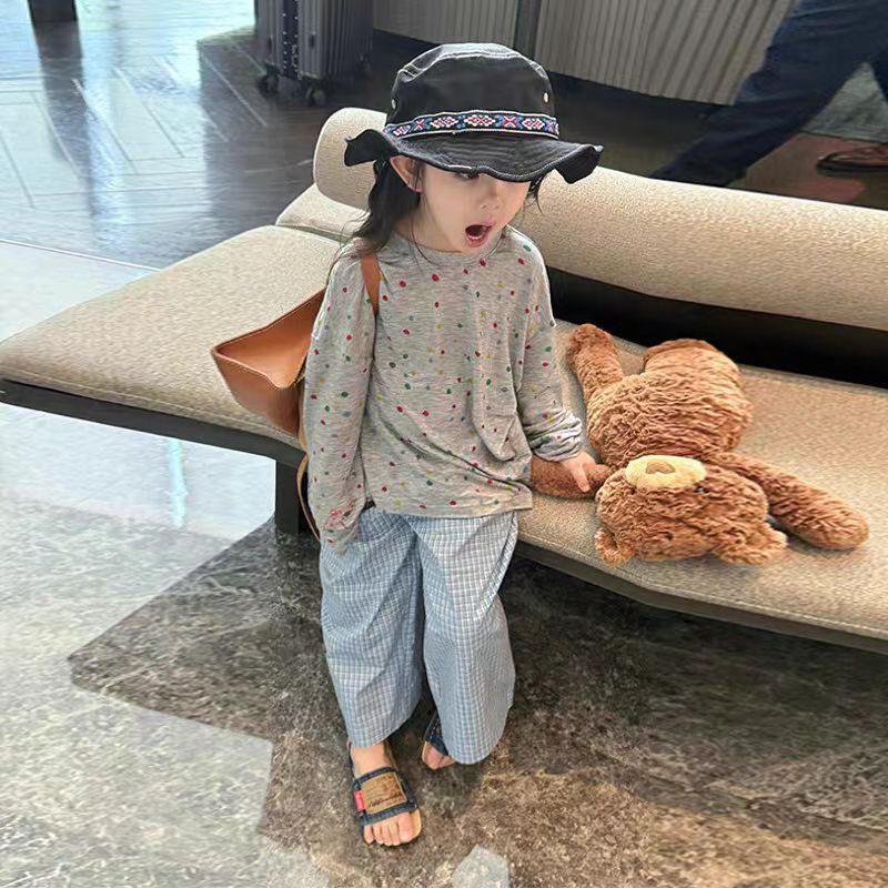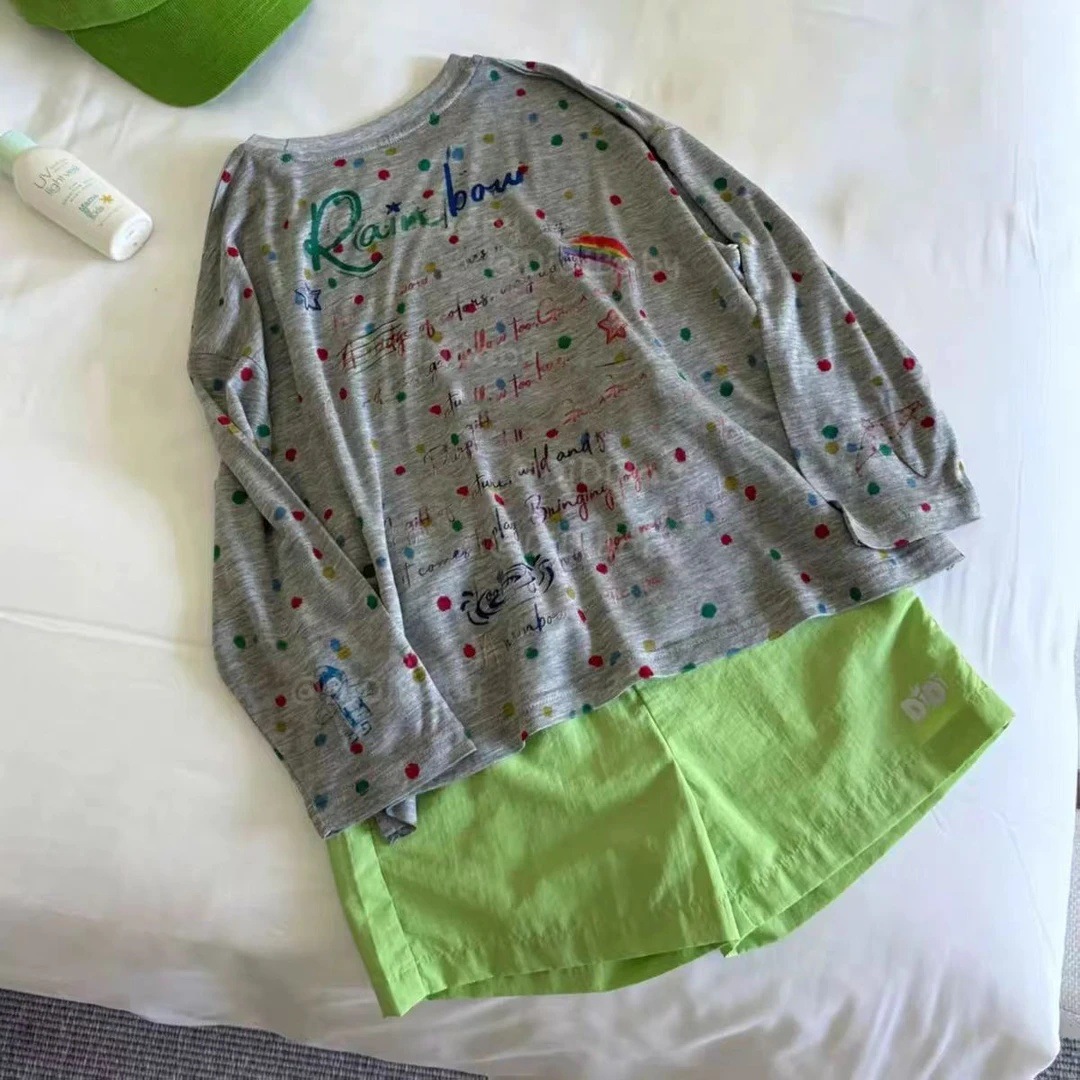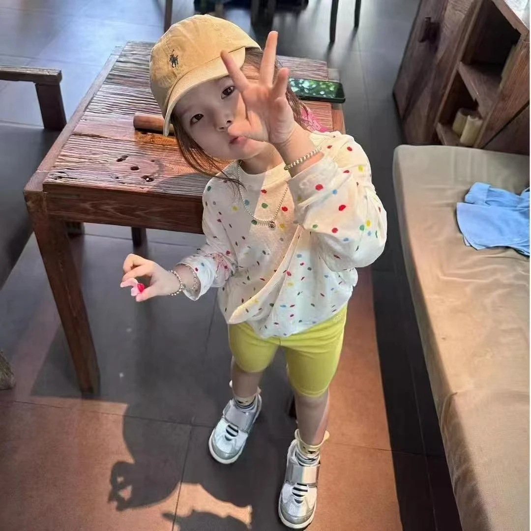 Тонкая и прохладная футболка с длинными рукавами и круглым вырезом в горошек для девочек, новинка лета 2025 года, с защитой от солнца