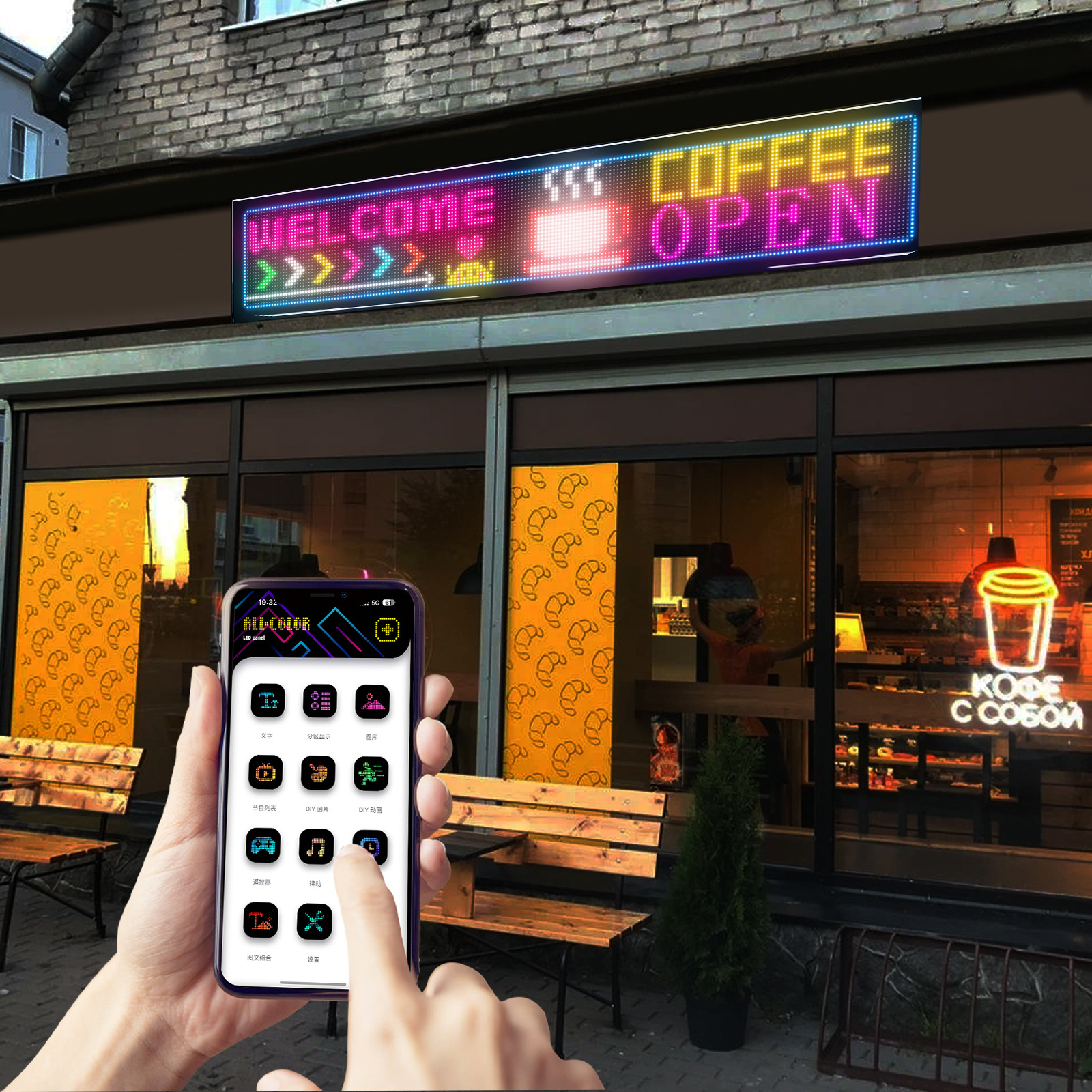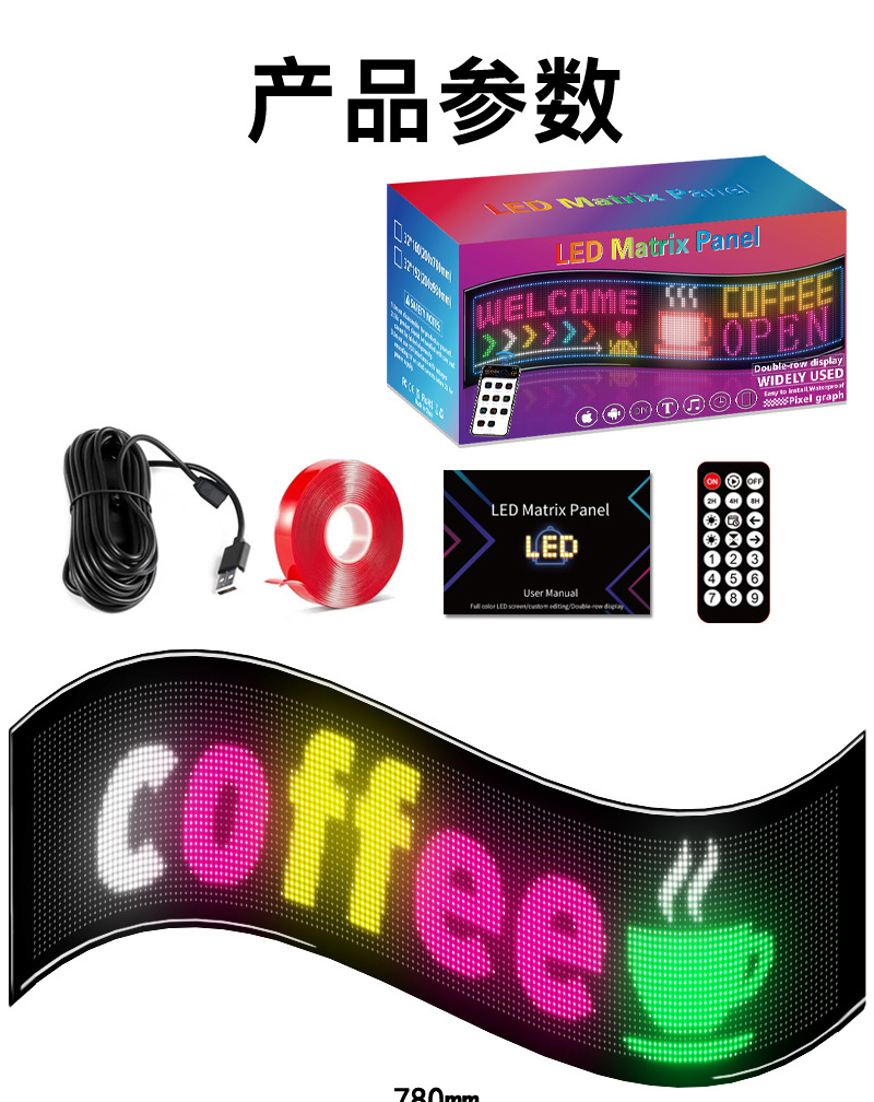 Гибкий светодиодный экран с Bluetooth, прокручивающий текст, гибкий экран, полностью водонепроницаемый светодиодный мягкий экран, рекламный экран для окон