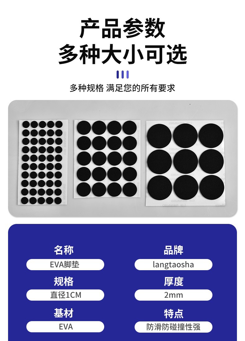 eva泡棉脚垫自粘防滑减震海绵垫 桌脚椅子保护垫黑色圆形eva脚垫