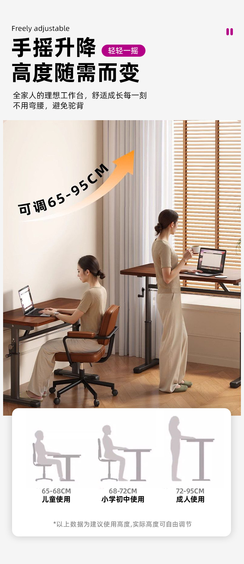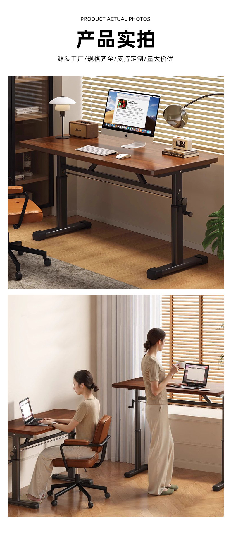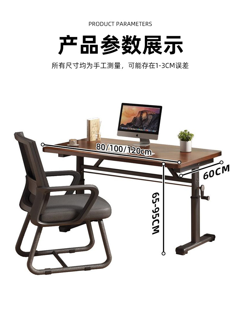 [Настольный компьютер из орехового дерева] Подъемный стол с ручным управлением