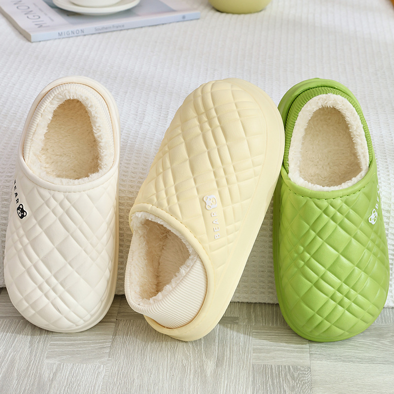Новые стильные водонепроницаемые стеганые хлопковые тапочки для мужчин, осенние и зимние домашние нескользящие хлопковые тапочки на толстой подошве для женщин.