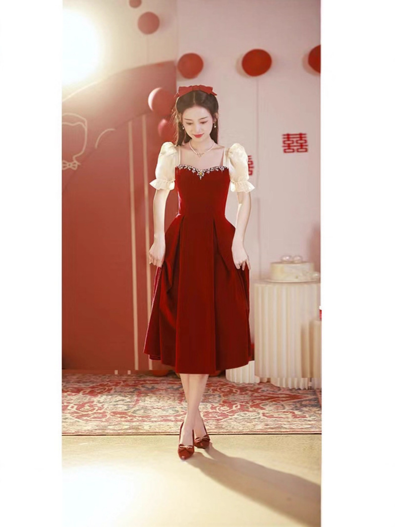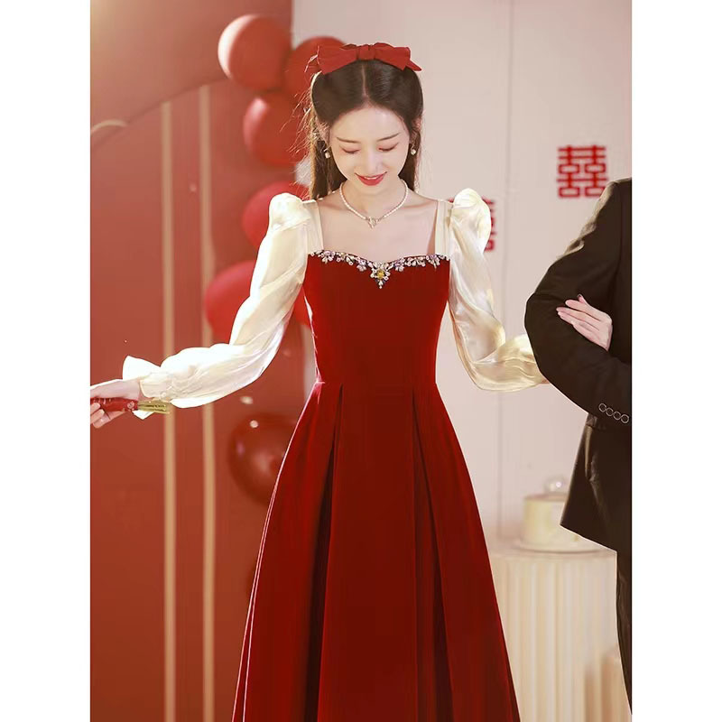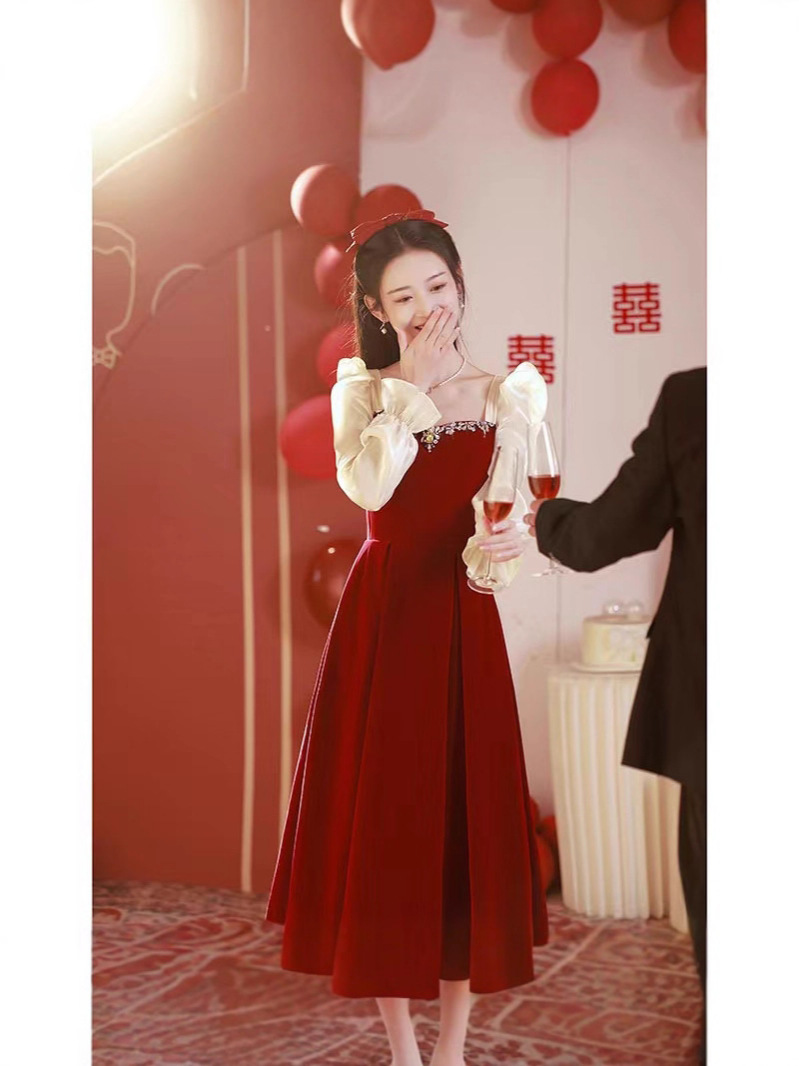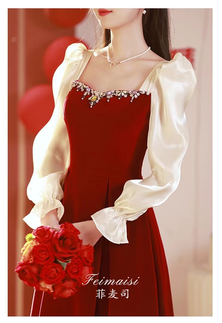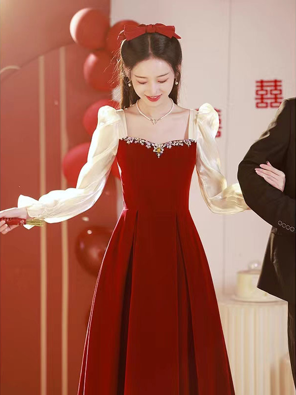 Свадебное бордовое обручальное платье, подходящее для миниатюрных женщин, элегантное свадебное платье с прозрачными рукавами.