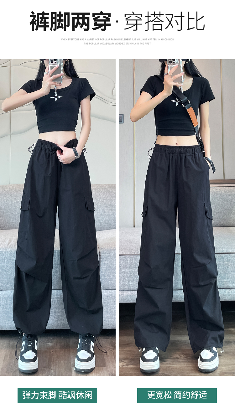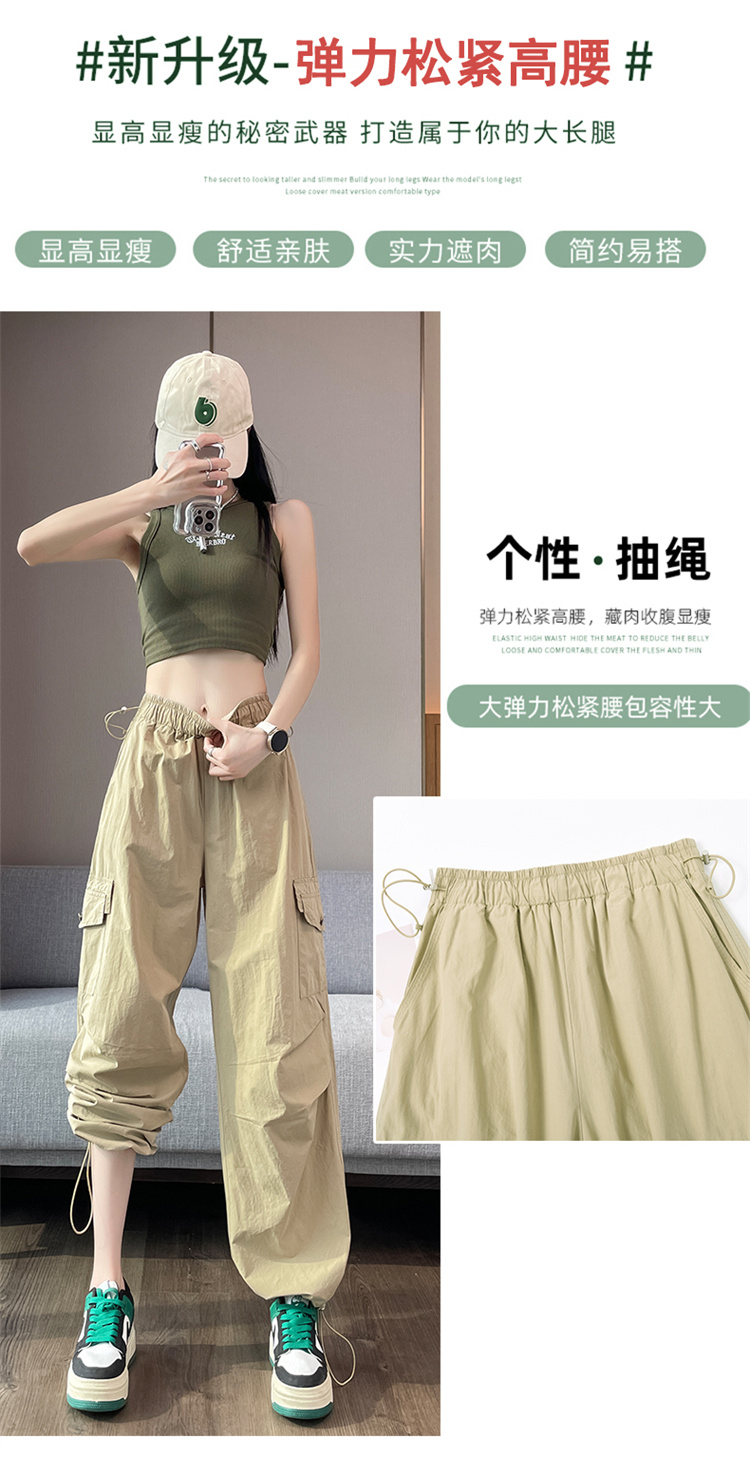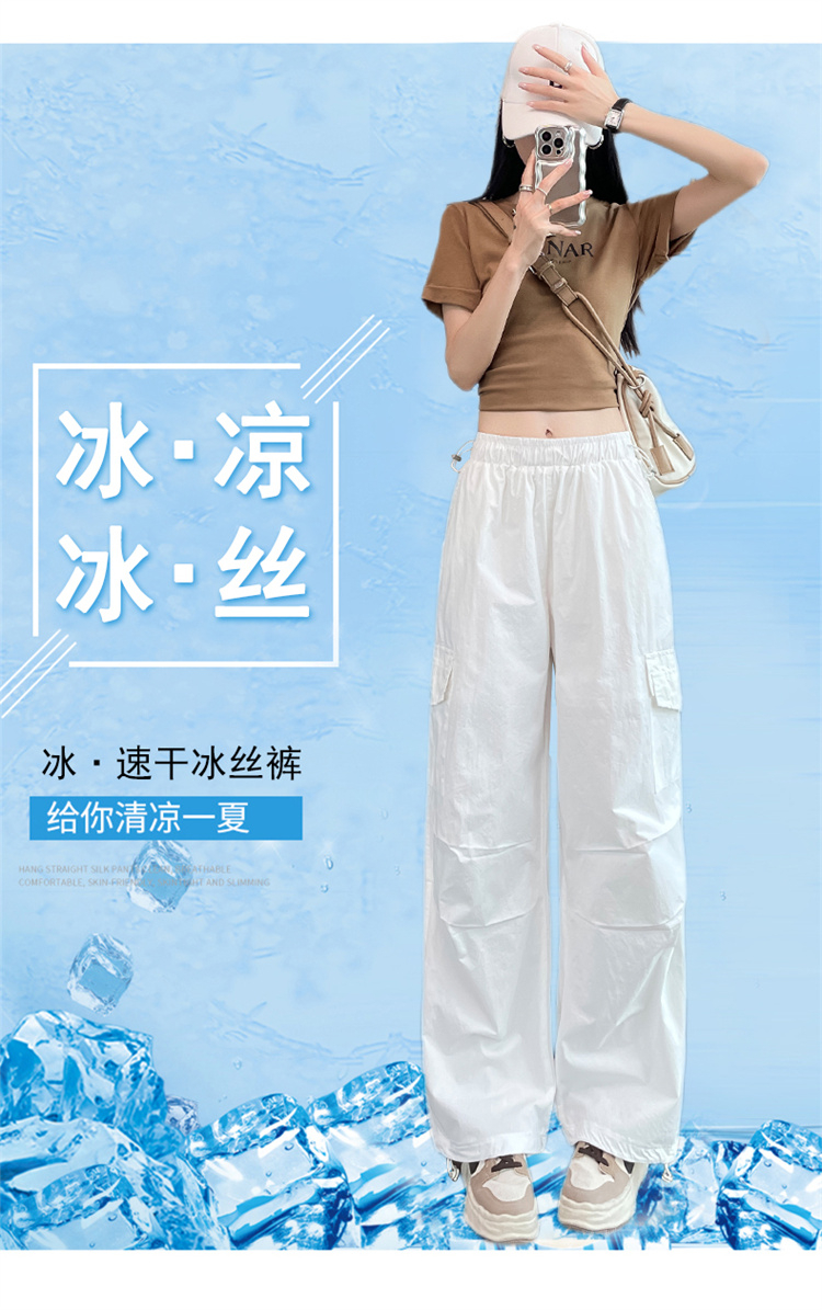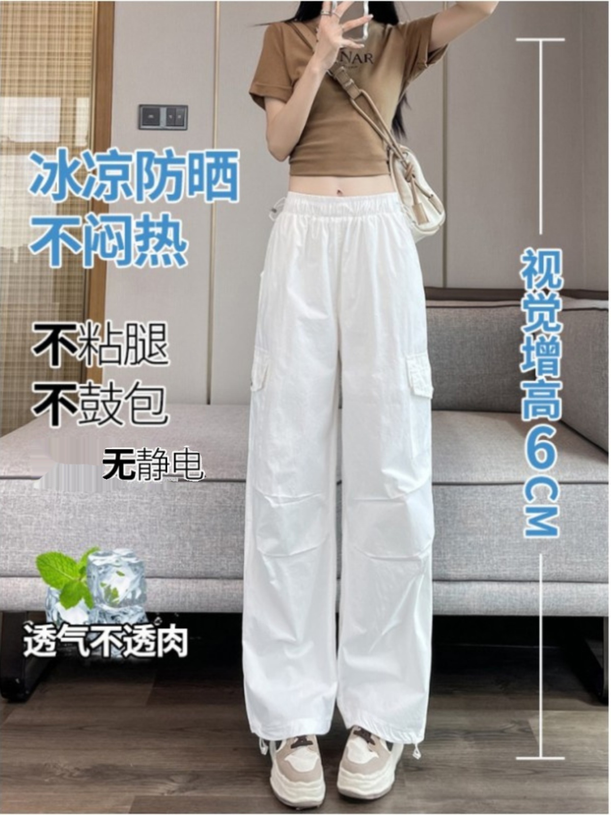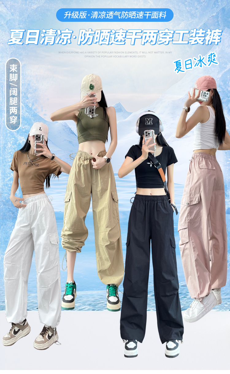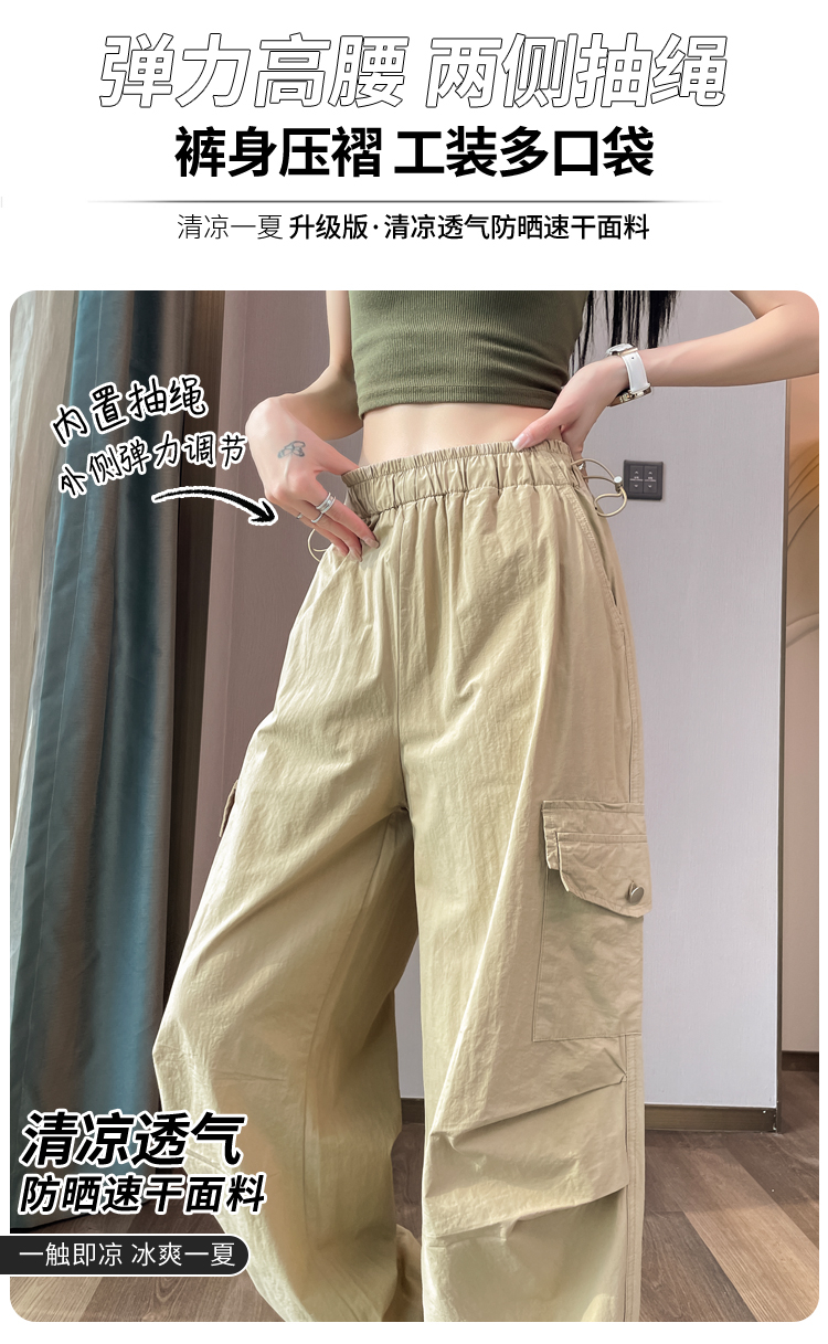 Быстросохнущие женские брюки-карго из ледяного шелка, тонкий весенне-осенний стиль, новые свободные прямые широкие солнцезащитные спортивные брюки в американском стиле 2025 года.