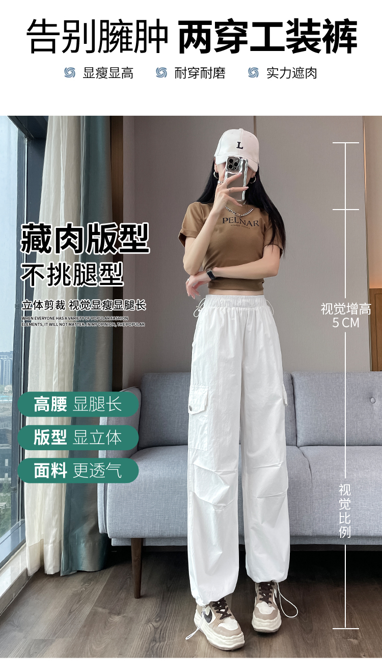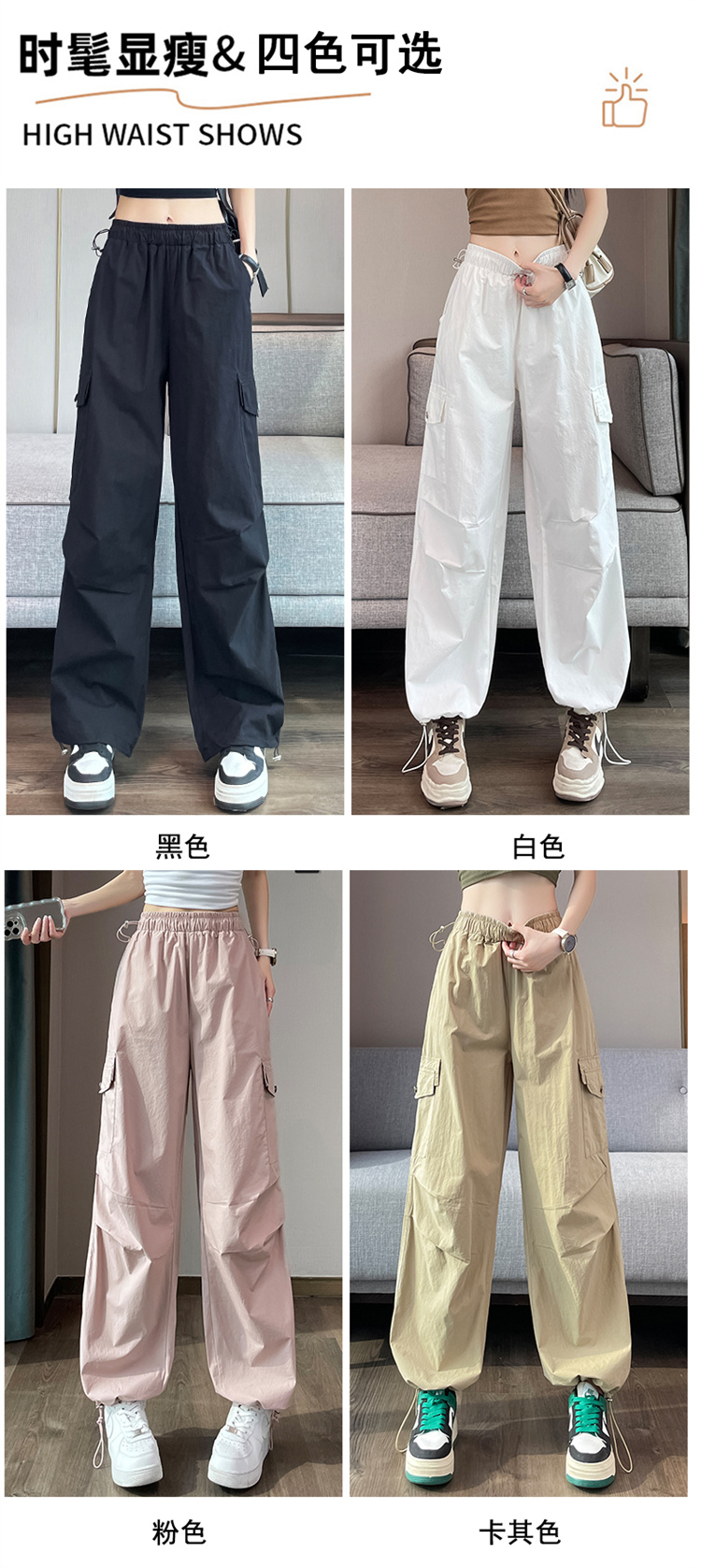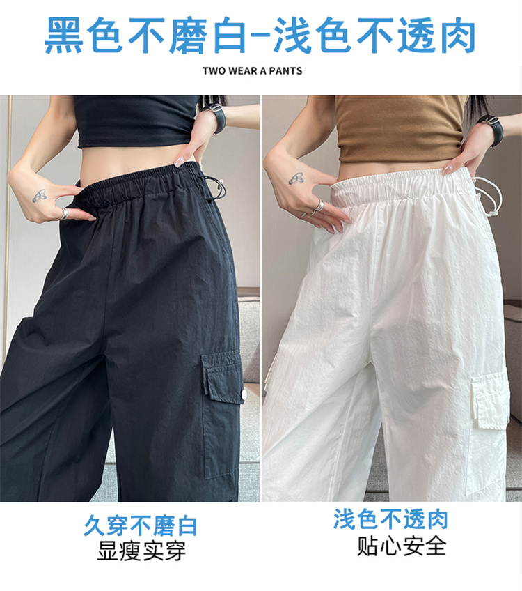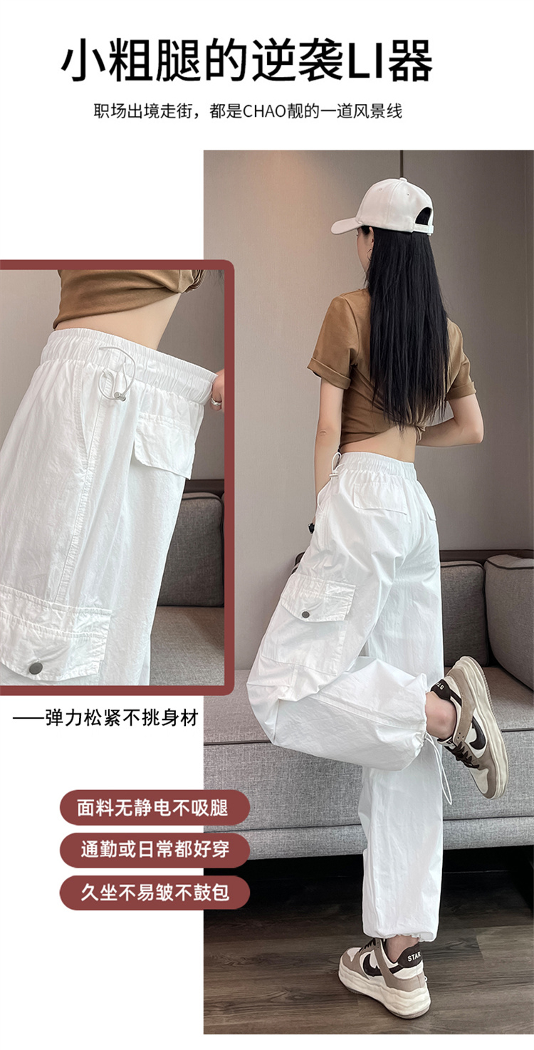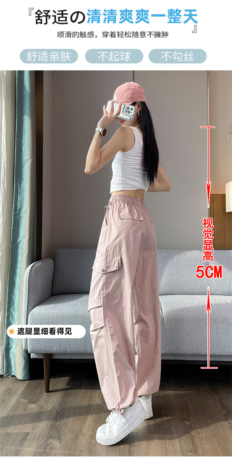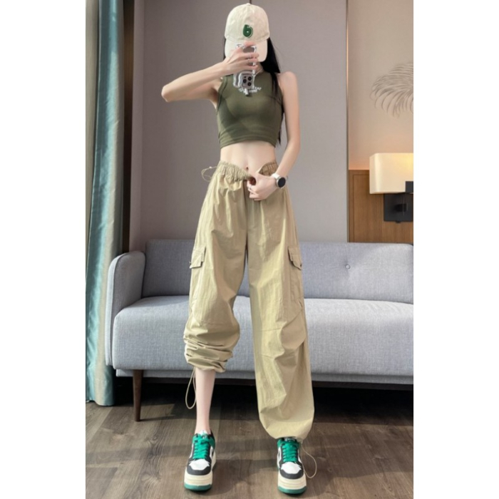 Быстросохнущие женские брюки-карго из ледяного шелка, тонкий весенне-осенний стиль, новые свободные прямые широкие солнцезащитные спортивные брюки в американском стиле 2025 года.