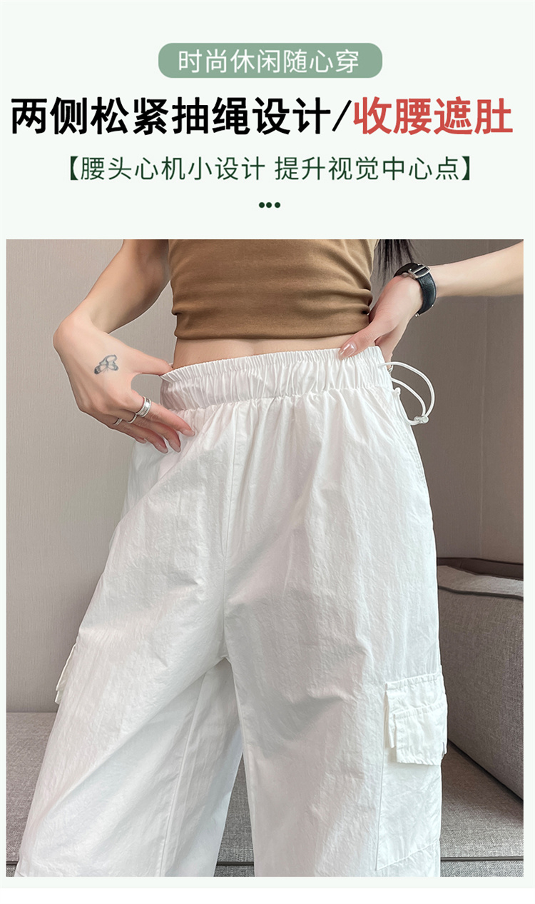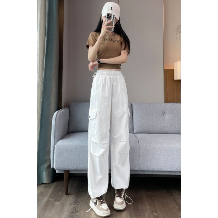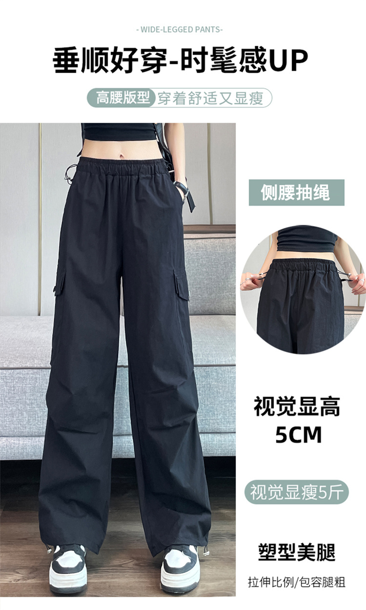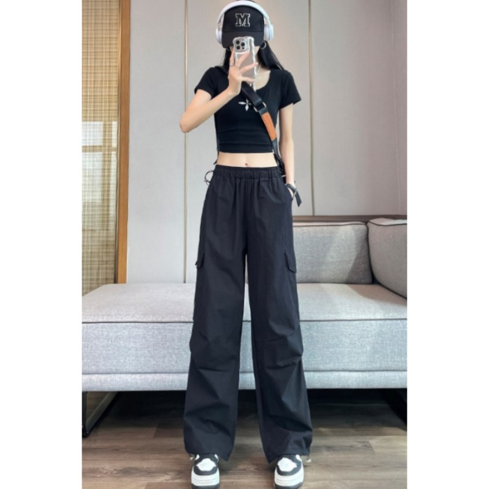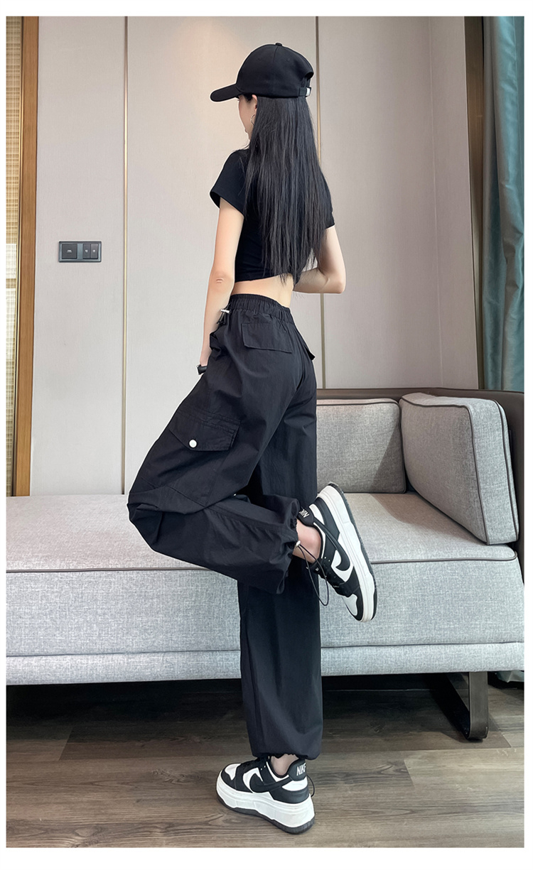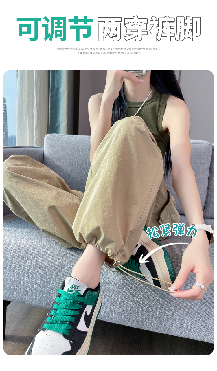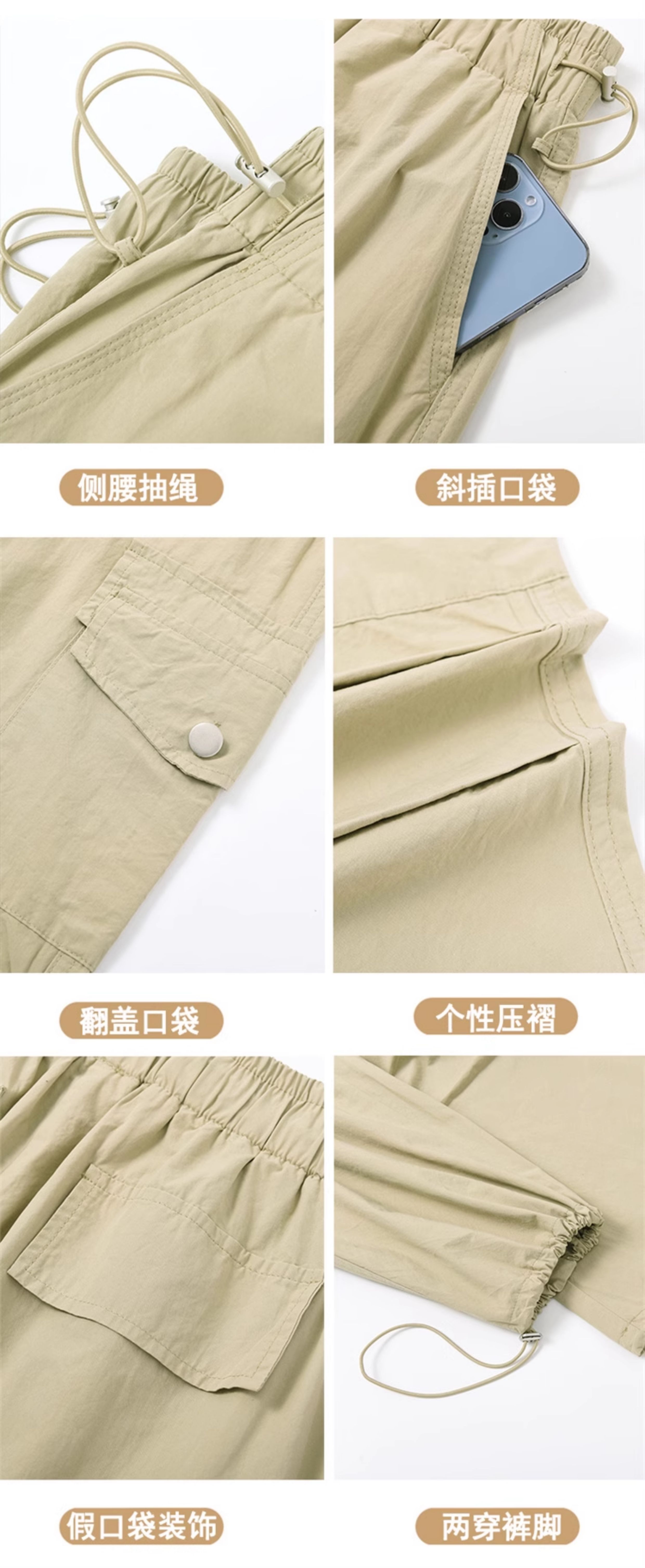Быстросохнущие женские брюки-карго из ледяного шелка, тонкий весенне-осенний стиль, новые свободные прямые широкие солнцезащитные спортивные брюки в американском стиле 2025 года.