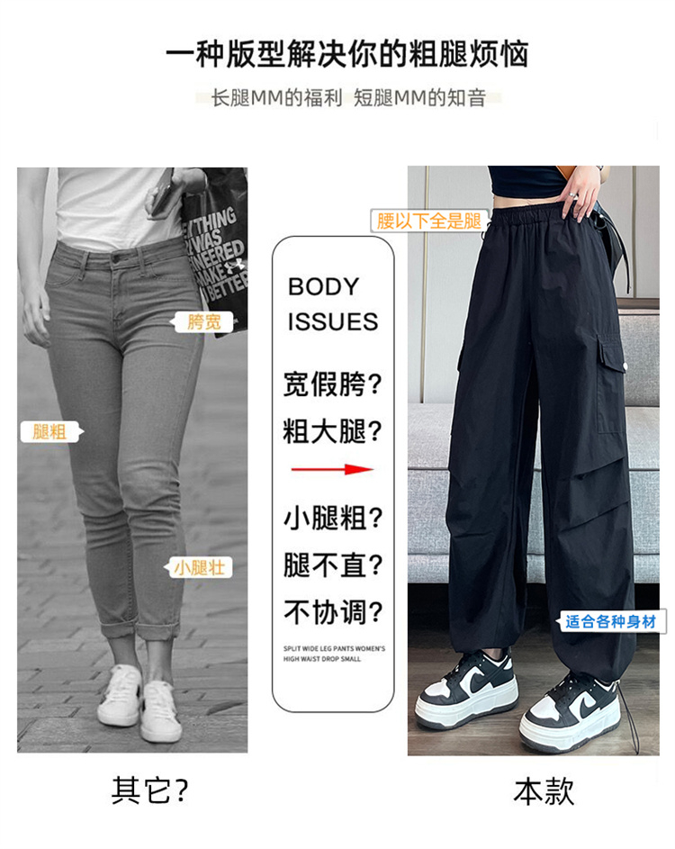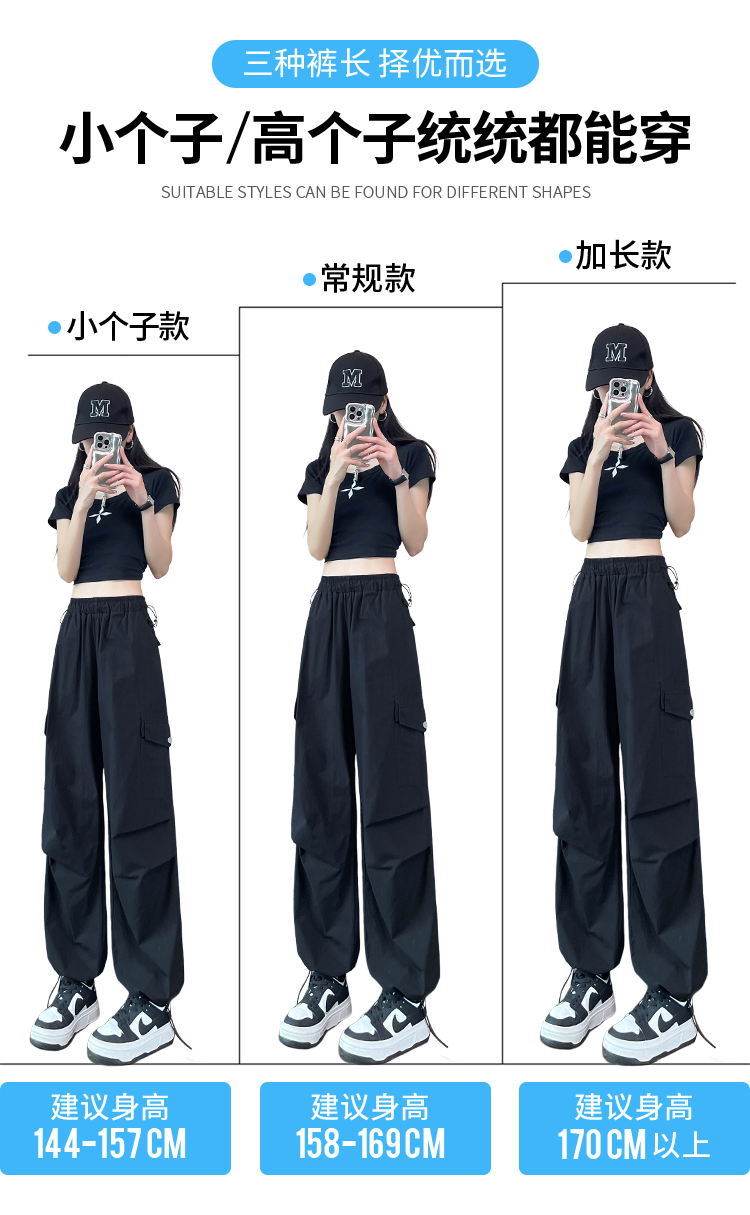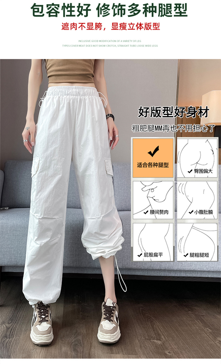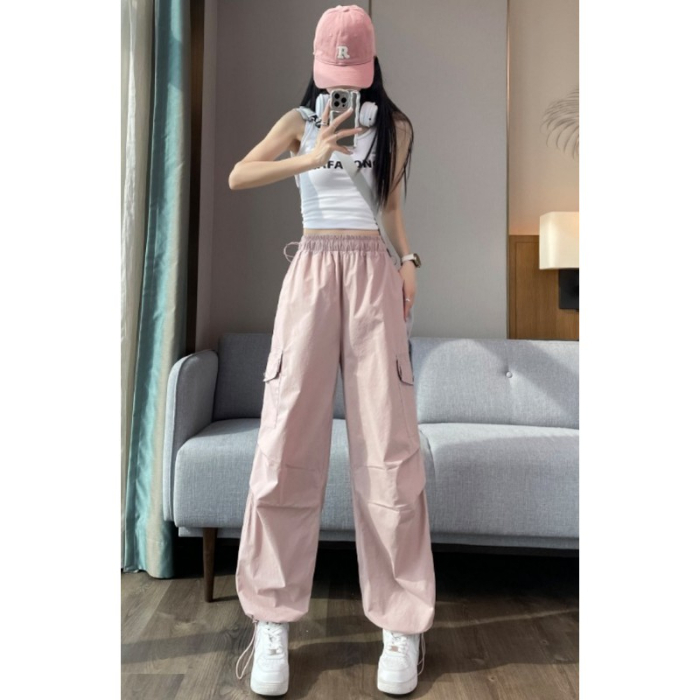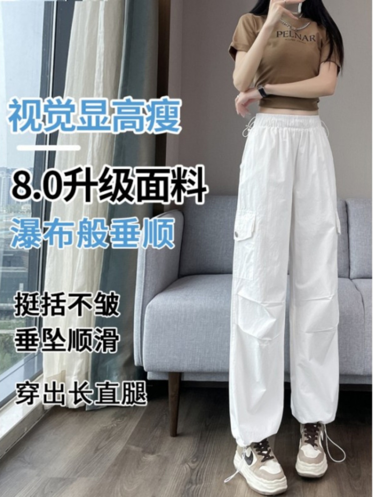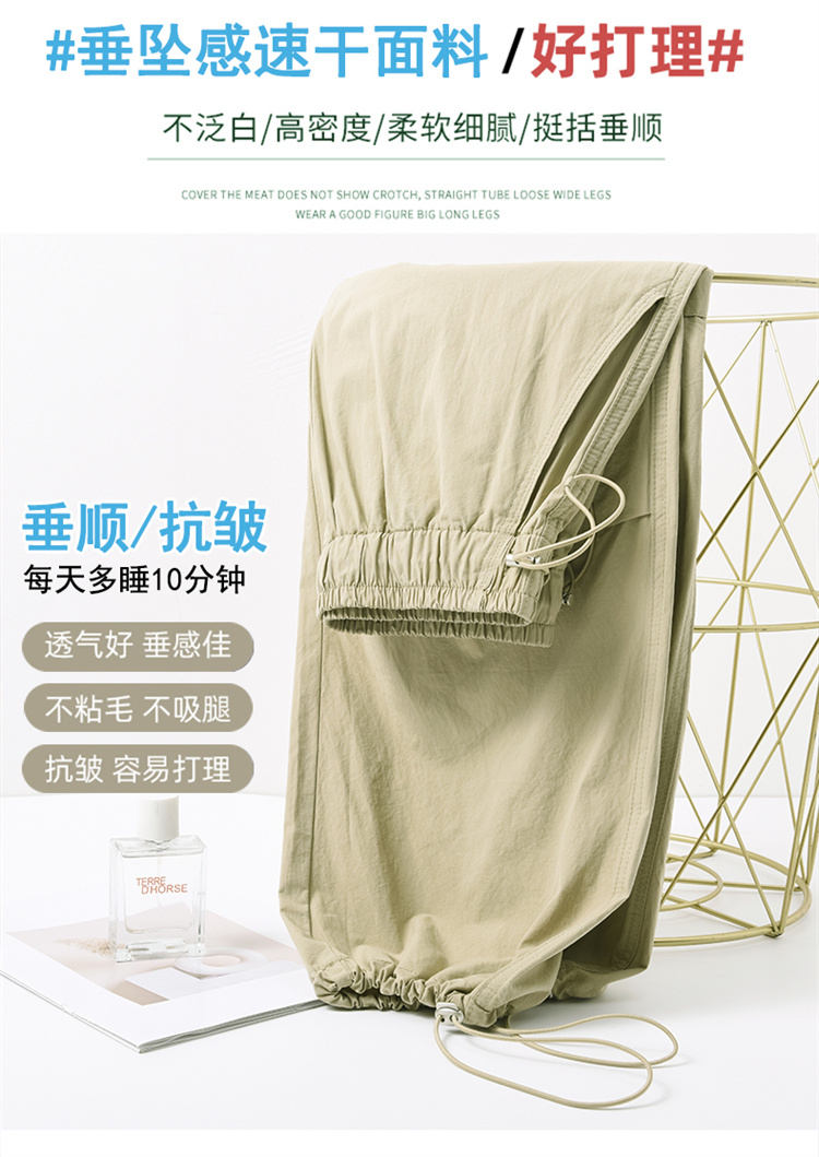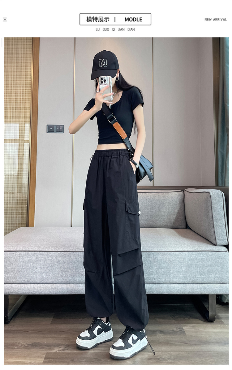 Быстросохнущие женские брюки-карго из ледяного шелка, тонкий весенне-осенний стиль, новые свободные прямые широкие солнцезащитные спортивные брюки в американском стиле 2025 года.