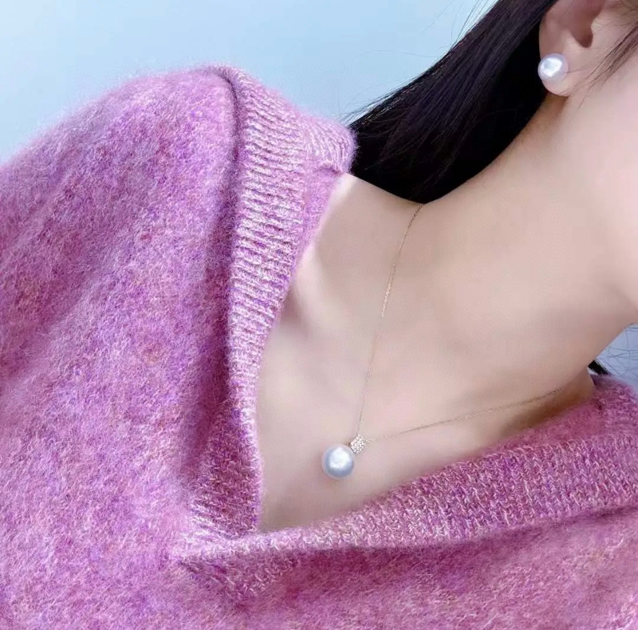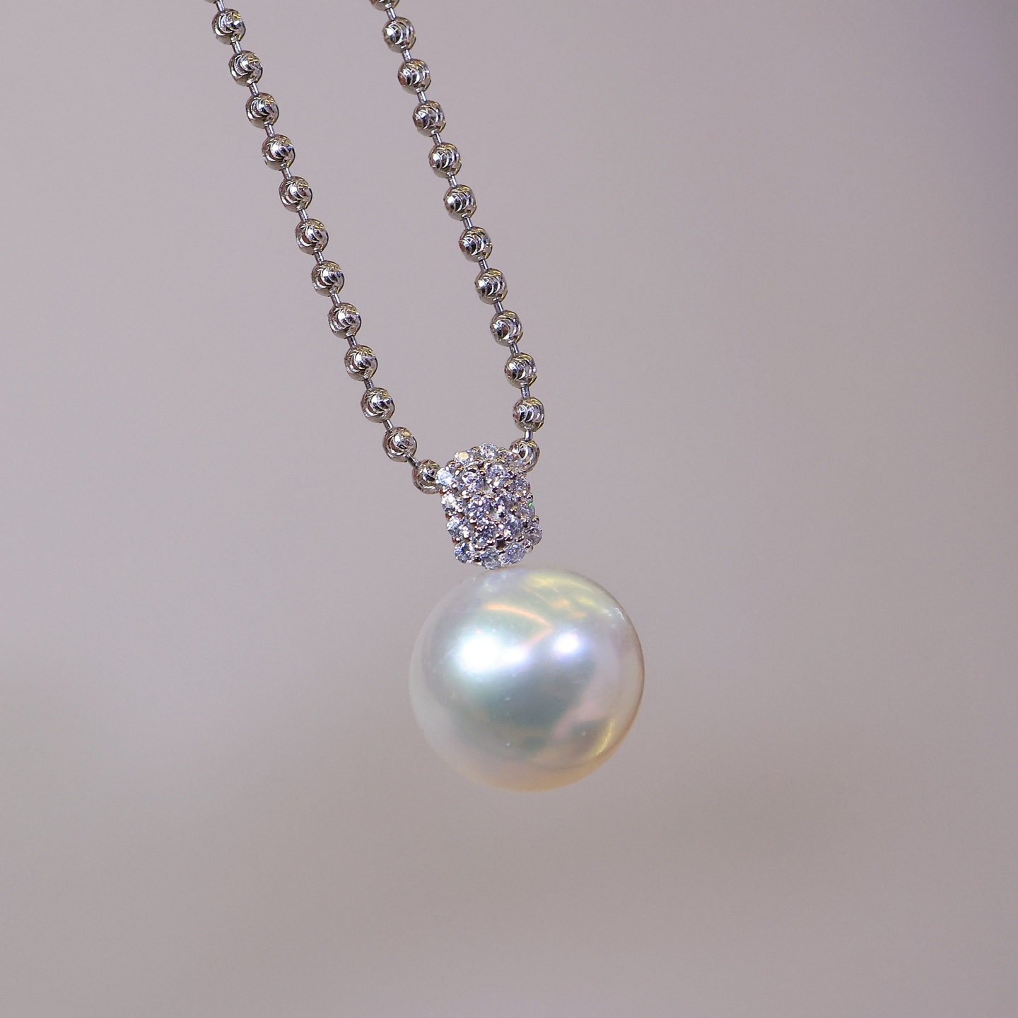 Аксессуары Platinum Pt900, простой кулон с белым цирконием, паве, с бусинами 12–13 мм, цепочка в комплект не входит
