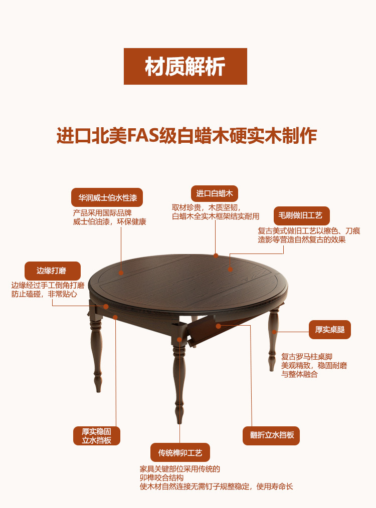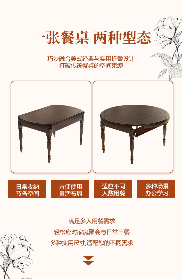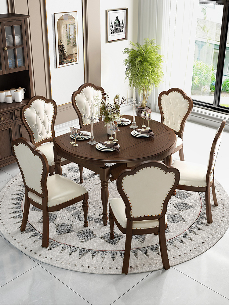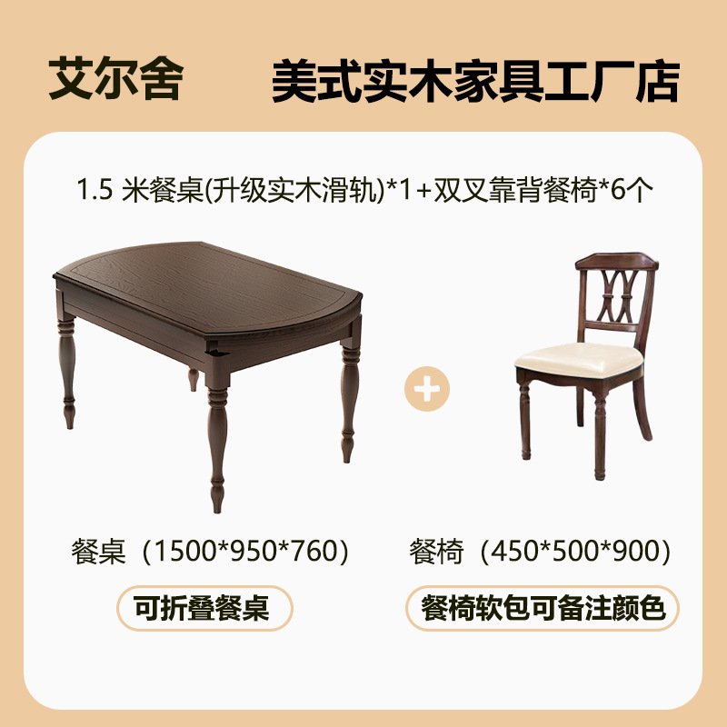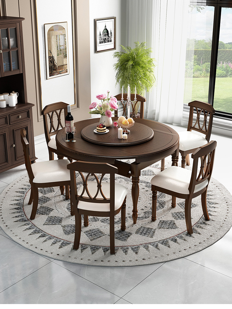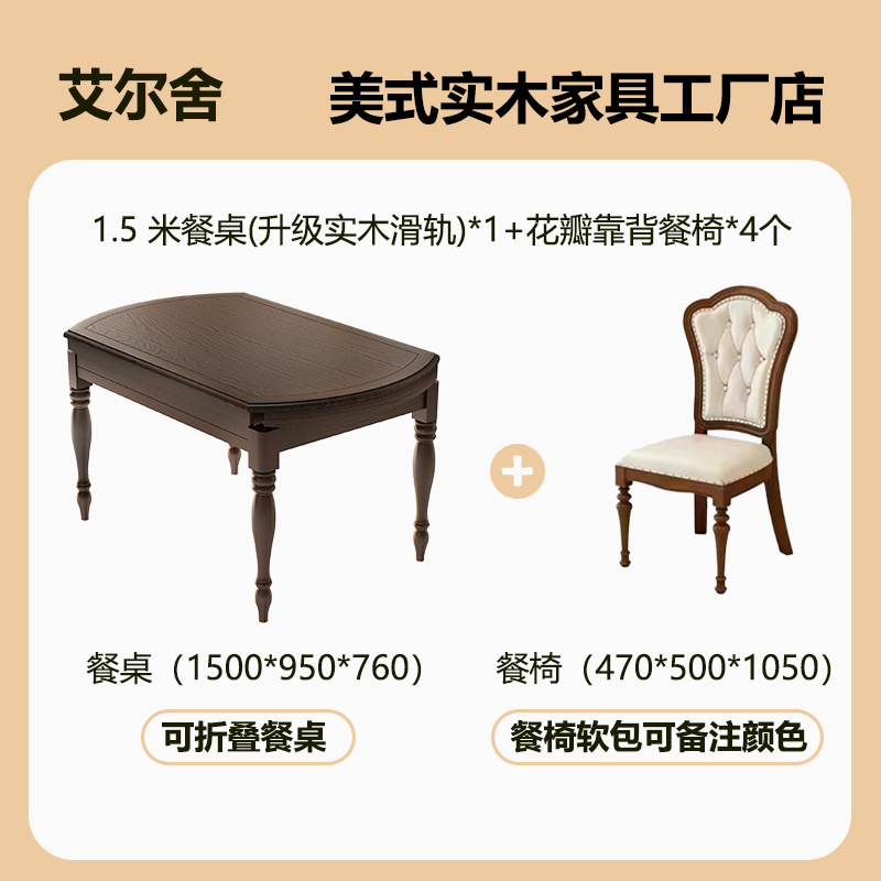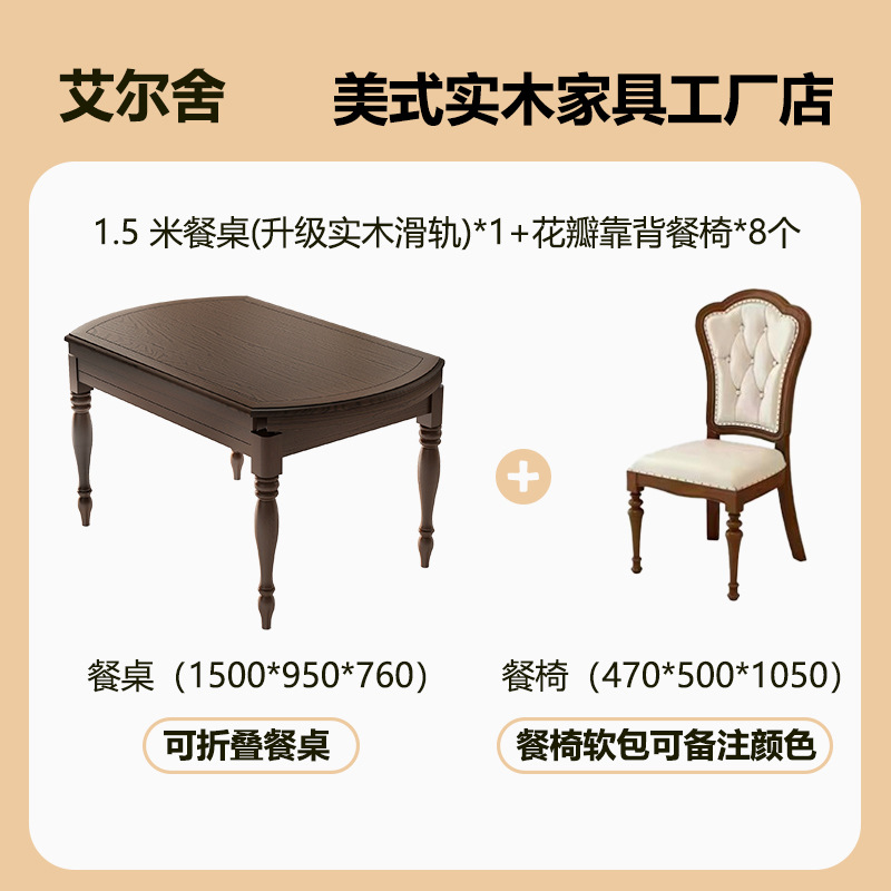 Американский ретро обеденный стол и стул из цельного дерева, комбинированный выдвижной складной бытовой переменный круглый обеденный стол для небольшой квартиры из ясеня