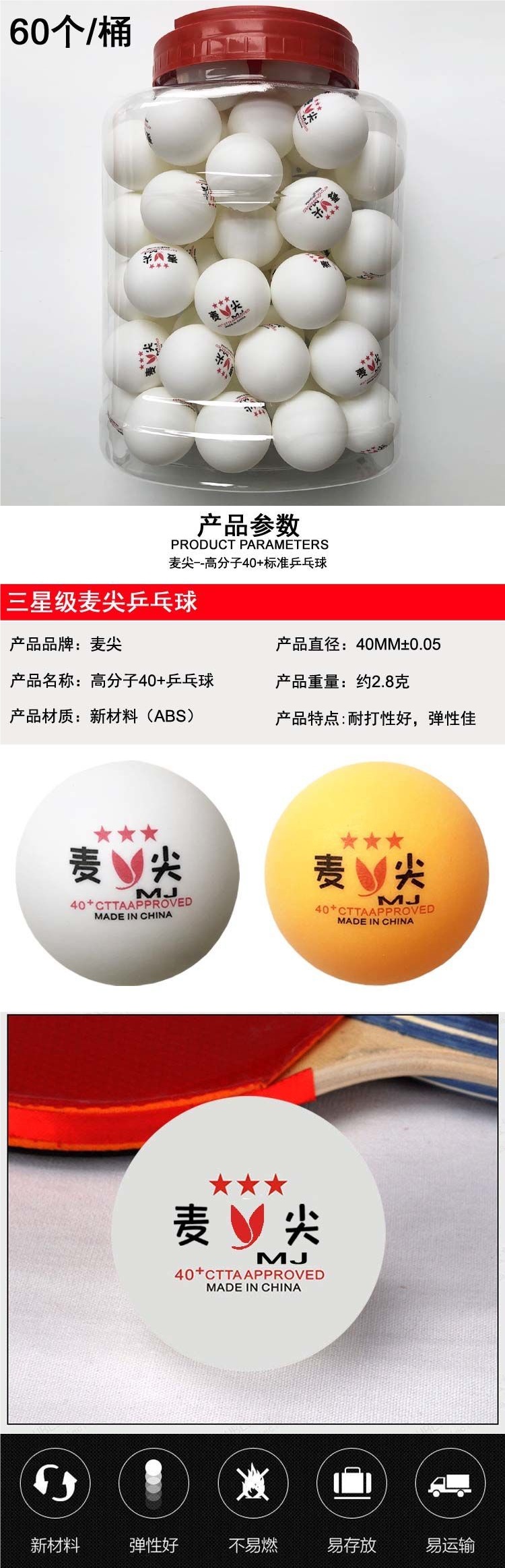 Новый материал для настольного тенниса, бесплатная доставка, 60 ведер с трехзвездочными высокоэластичными тренировочными мячами для любительских соревнований по настольному теннису