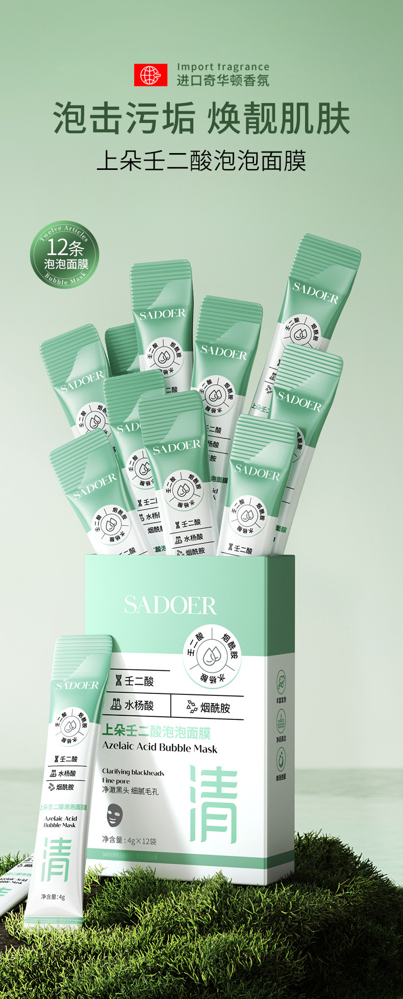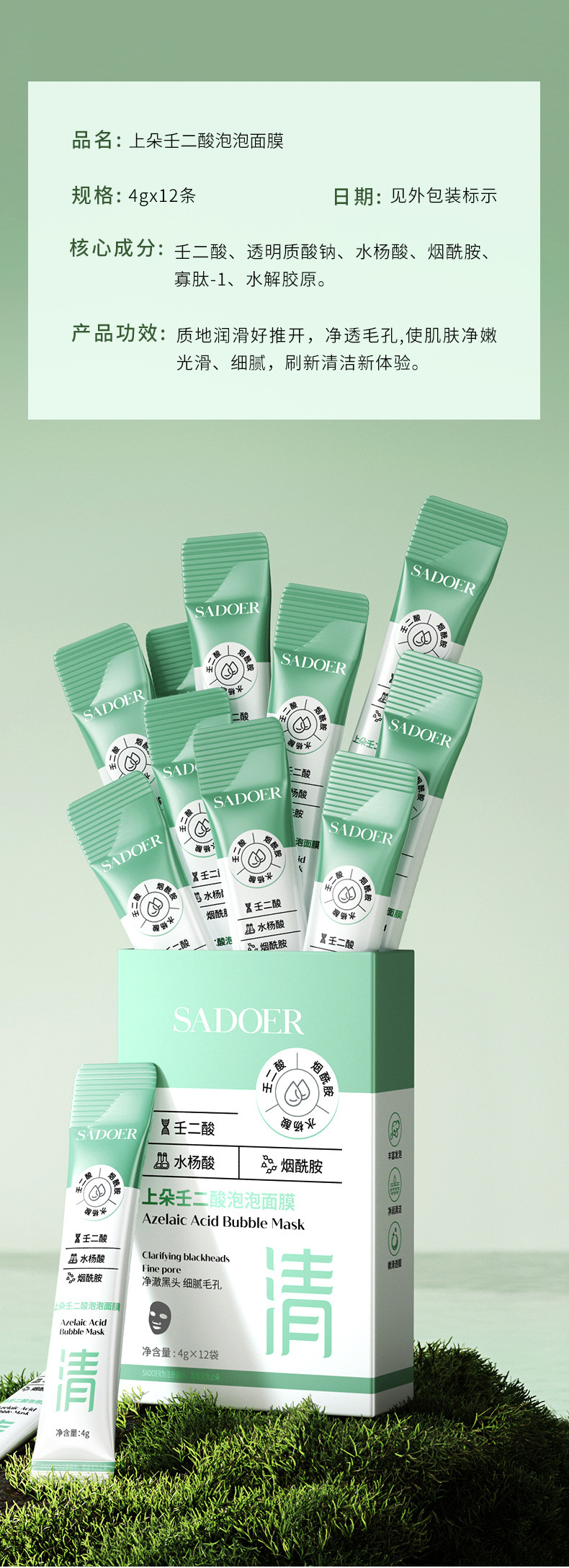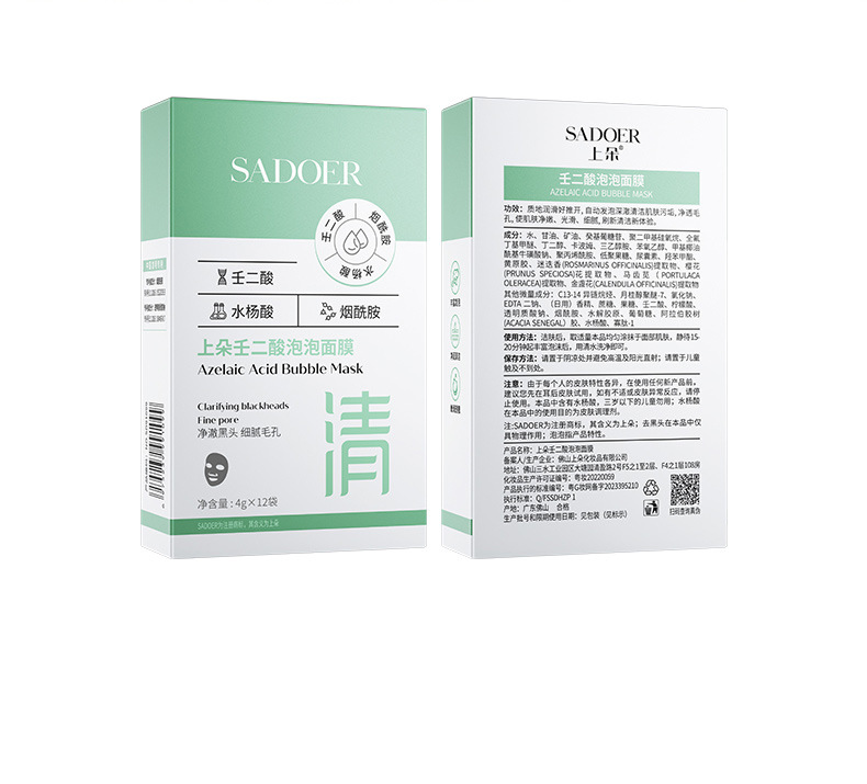 Shangduo Azelaic Acid Bubble Mask Глубокое очищение пор лица от черных точек Мягкая и не раздражающая грязевая маска Прямые продажи с фабрики