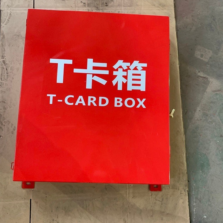 T卡箱外面和卡槽板上均喷有中文“T卡箱”及英文“T card box”标识,美观大方,箱口做风雨密处理,箱门边安装防水密封条,进行密封防水;T卡箱整体喷塑处理(防锈防腐),内部卡槽板激光开插卡槽(卡槽数量客户指)。
