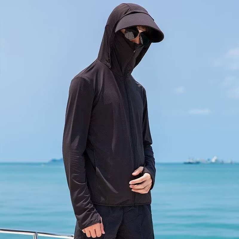 Модная простая однотонная солнцезащитная куртка на молнии, модная брендовая мужская свободная осенняя ветровка с капюшоном (нельзя снять)