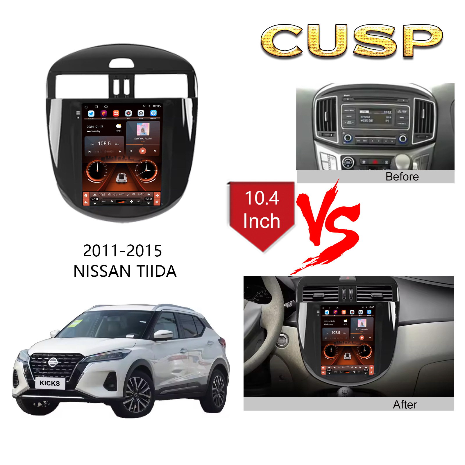 Подходит для навигационной панели Tiida 11-15, аудиопанели 9.7inch Android, навигации с большим экраном, универсальной рамки