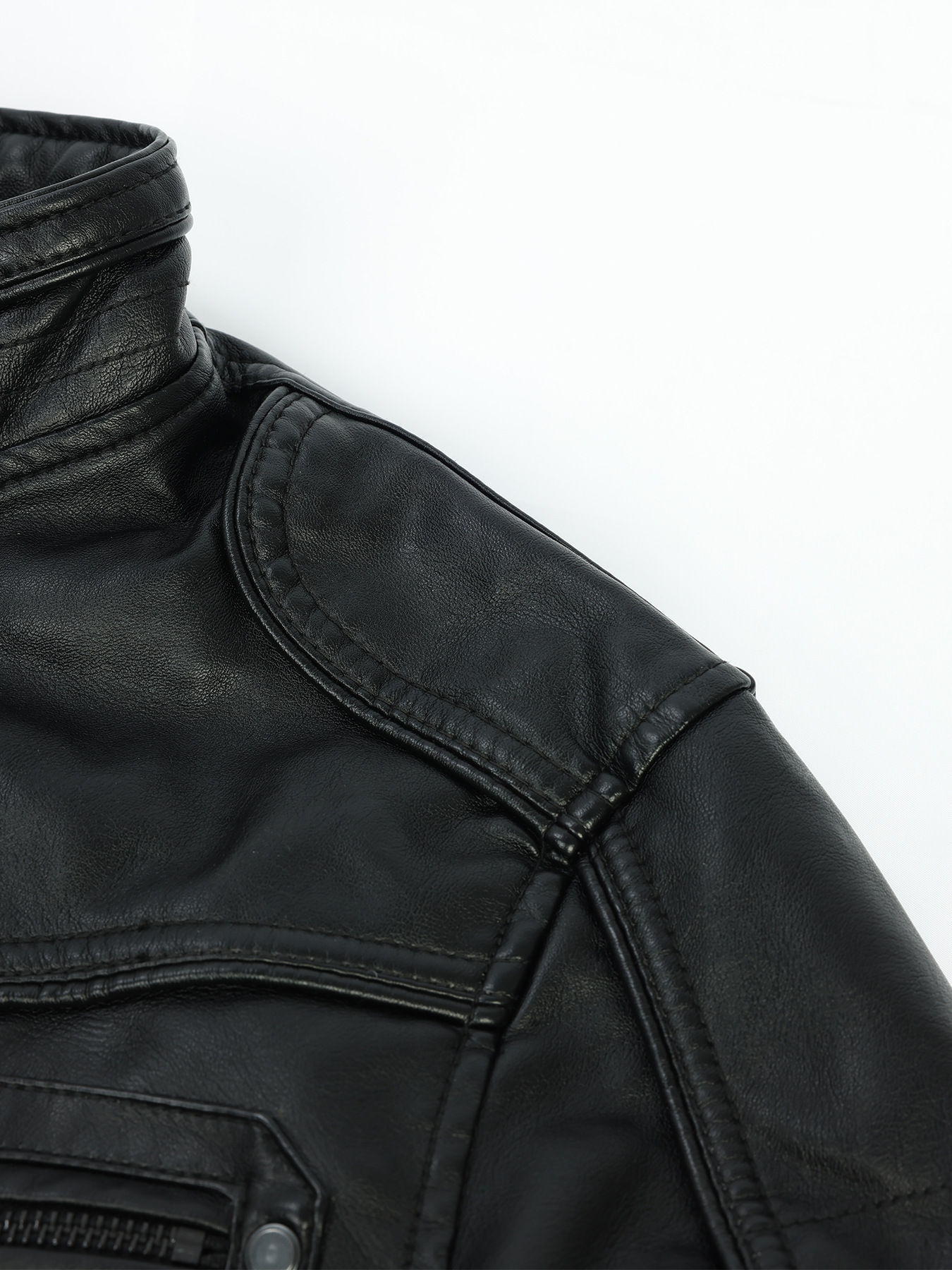 2025 эксклюзивная кросс-граничная куртка из искусственной кожи для молодых мужчин, осенне-зимняя велосипедная повседневная куртка с воротником-стойкой для мотоциклистов.
