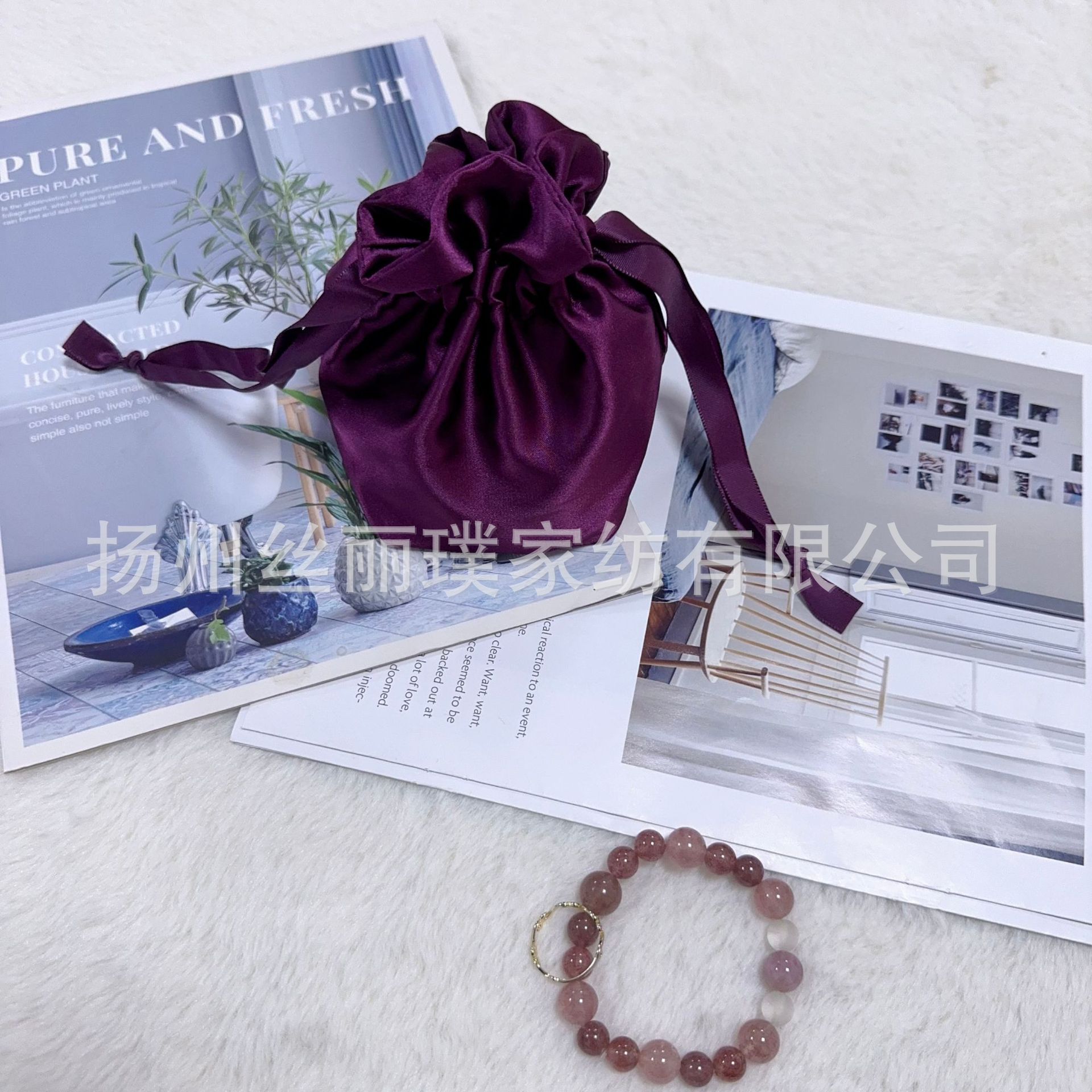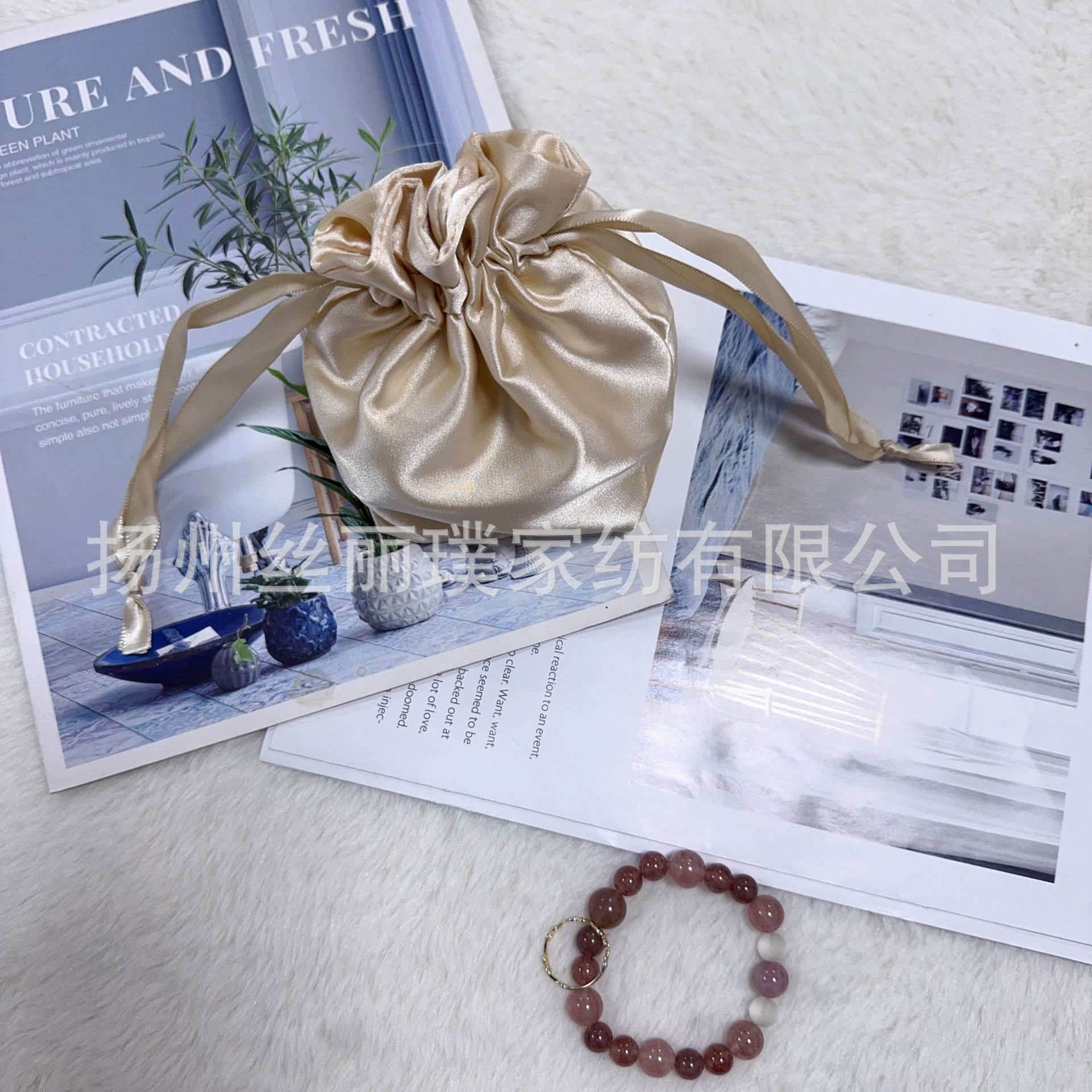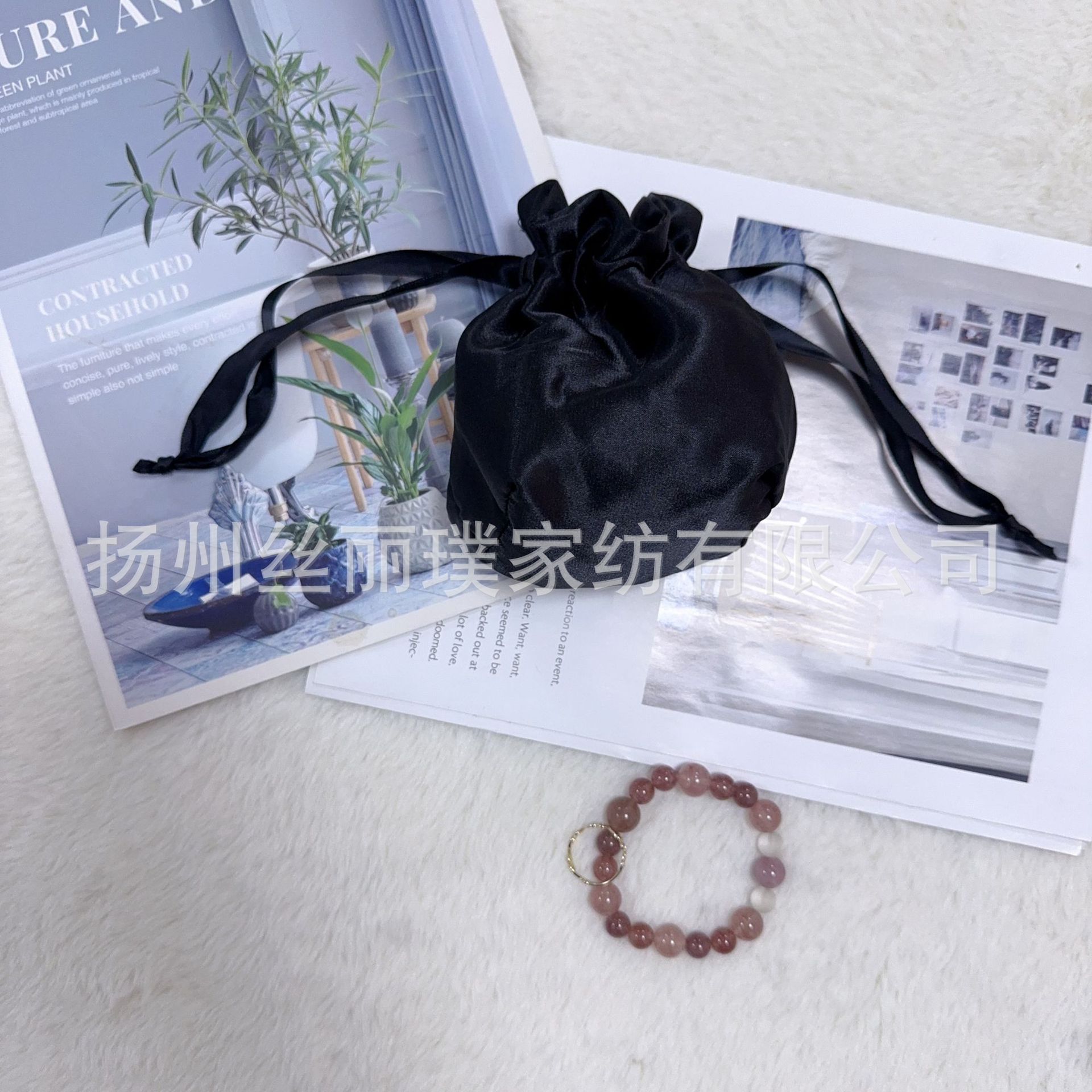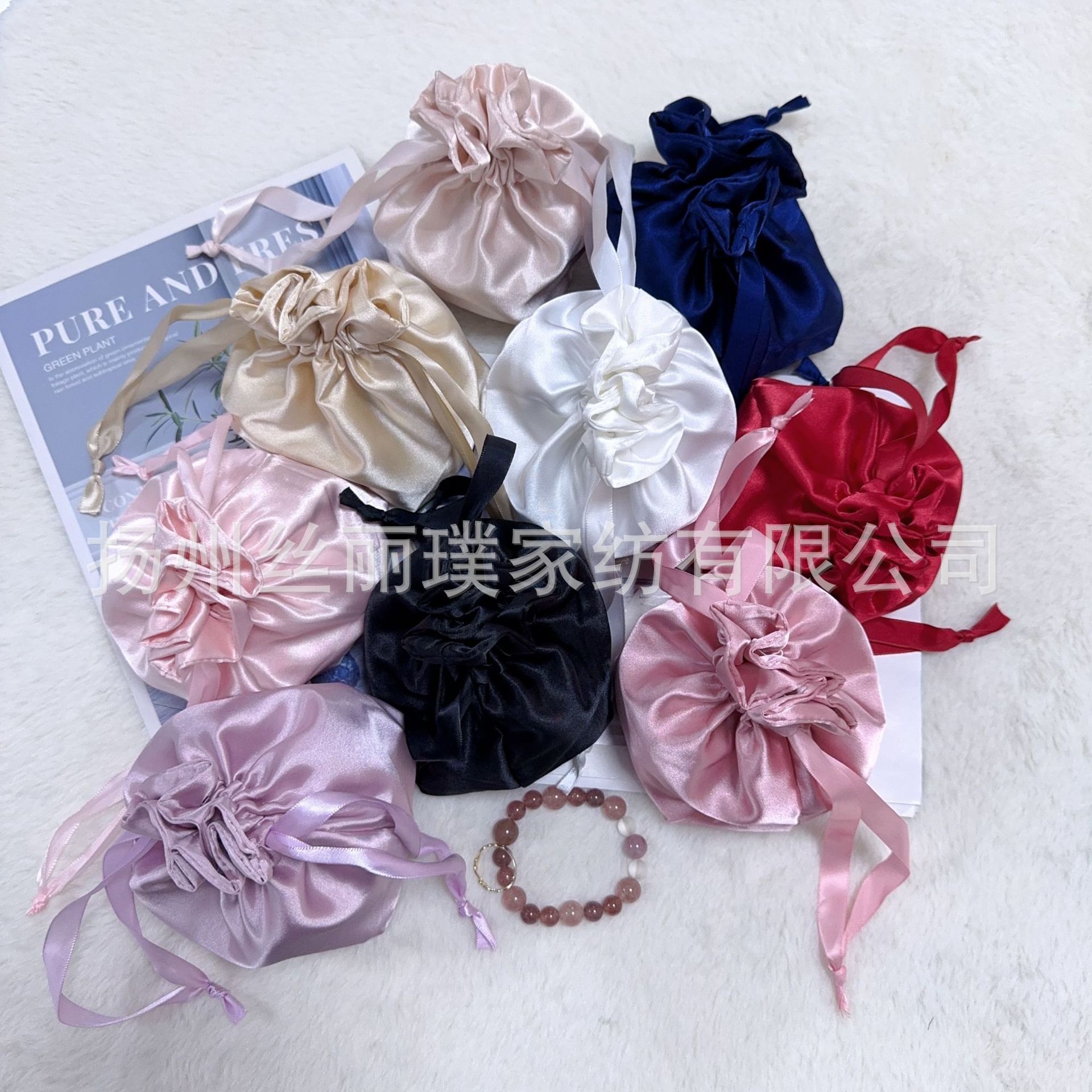 Готовая маска для глаз из искусственного шелка, двухслойная тканевая сумка, атласный карман на шнурке, шелковая сумка с двойным шнурком, сумка для хранения косметики
