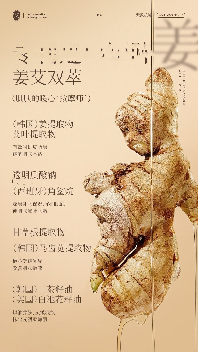 Whsa Ginger Mugwort Эфирное масло Теплый массажный крем Бытовое эфирное масло Mugwort Увлажняющий массажный крем для тела Производитель Оптовая продажа