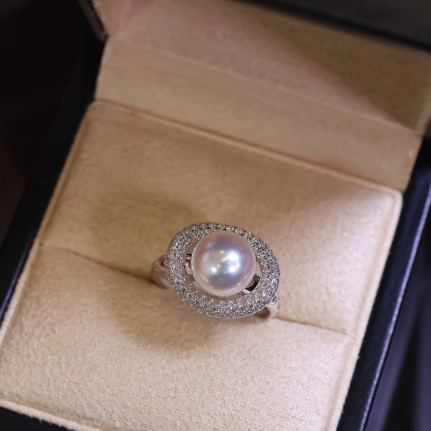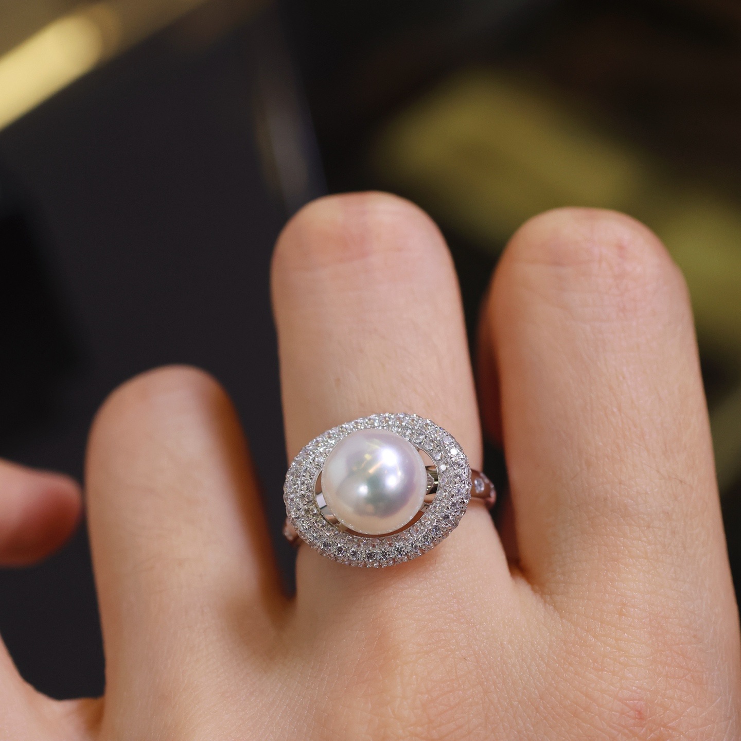 Аксессуары Platinum Pt900, кольцо с линейным дизайном, инкрустация тяжелым цирконом, изображение с бусинами 9 мм, бусины в комплект не входят.