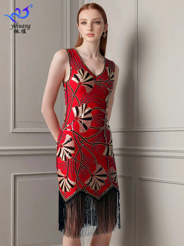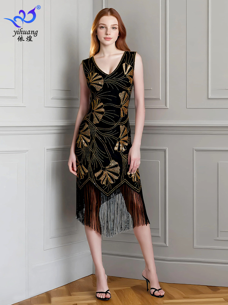 Бальное платье 1920 года, ретро платье с пайетками, платье с пайетками, одежда для выступлений, юбка для латинских танцев с кисточками, танцевальная юбка, вечерние юбки