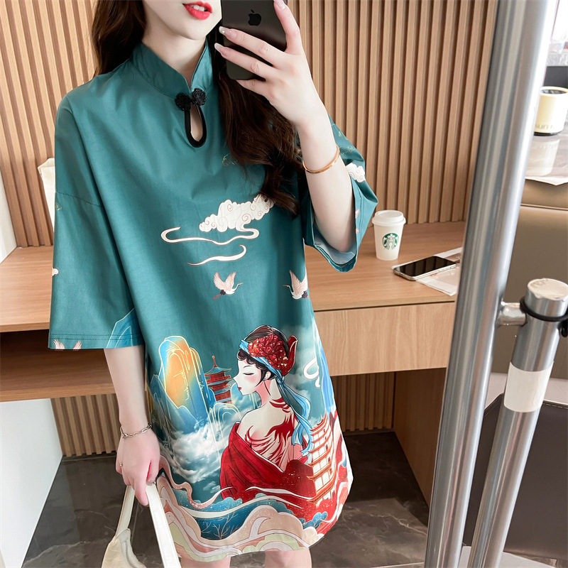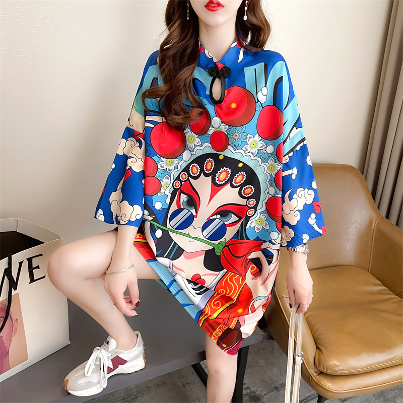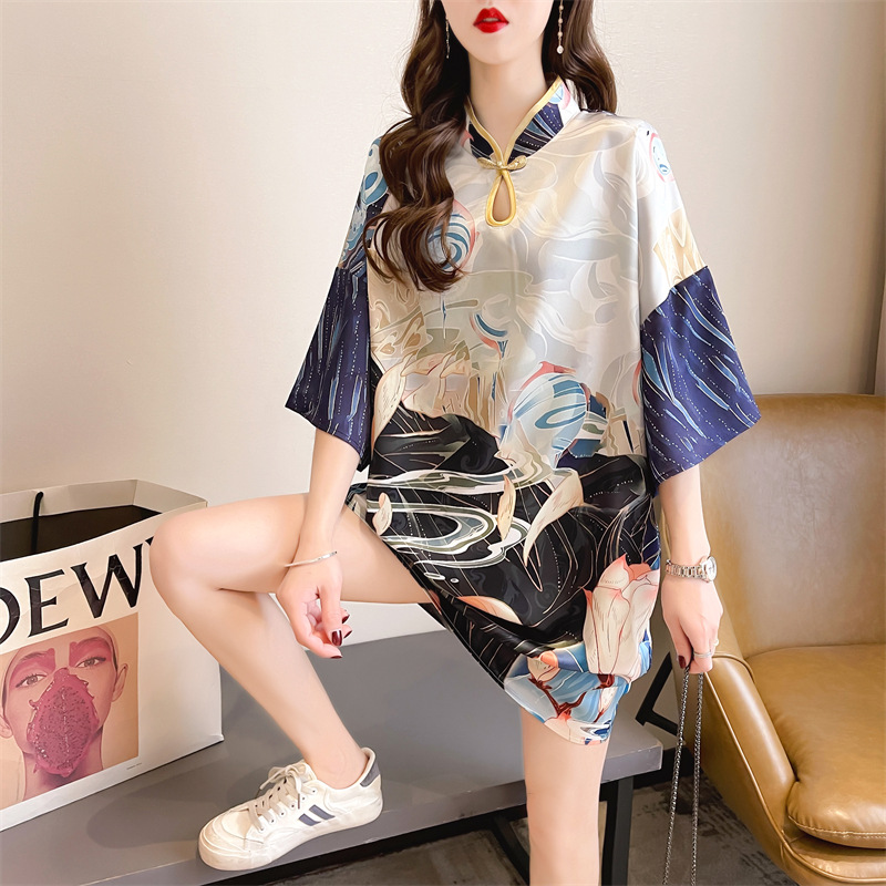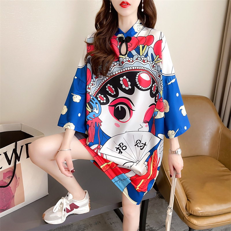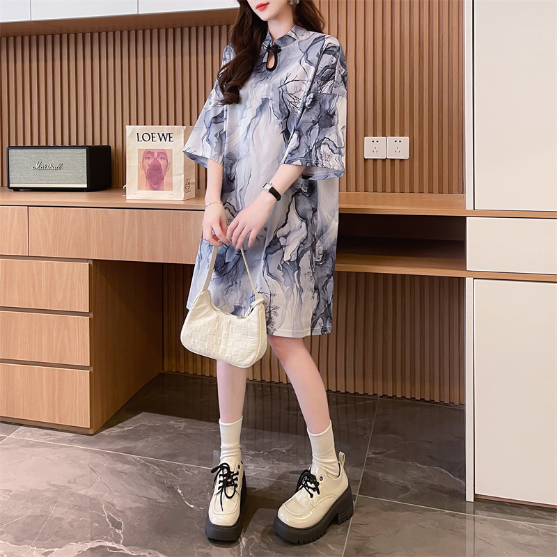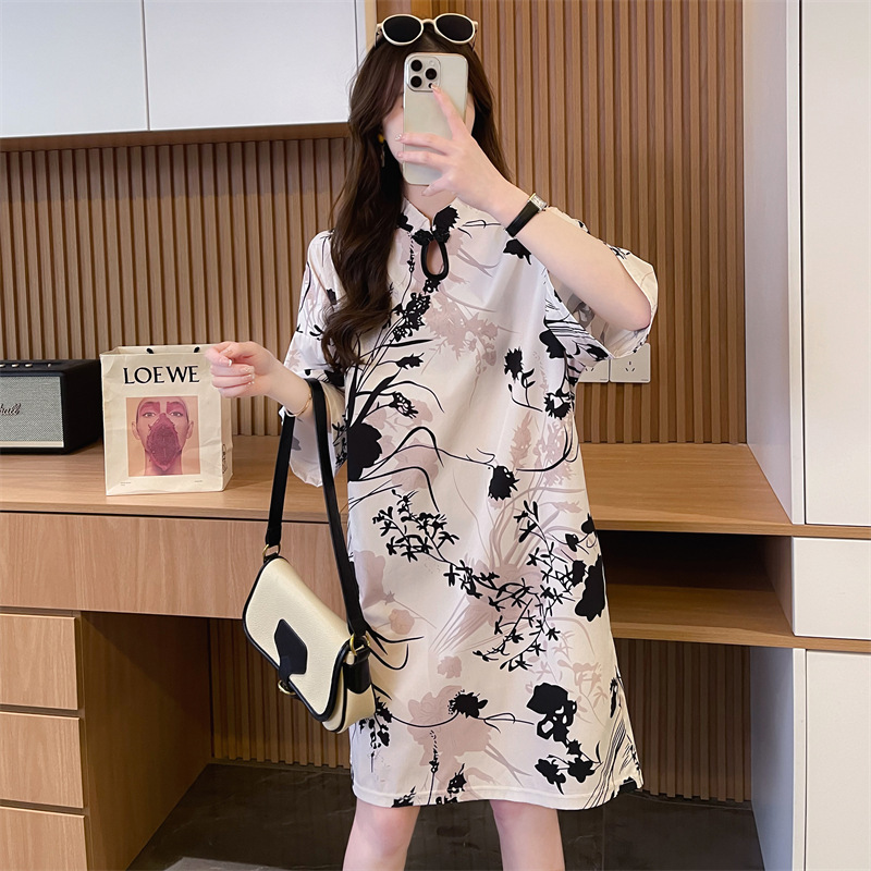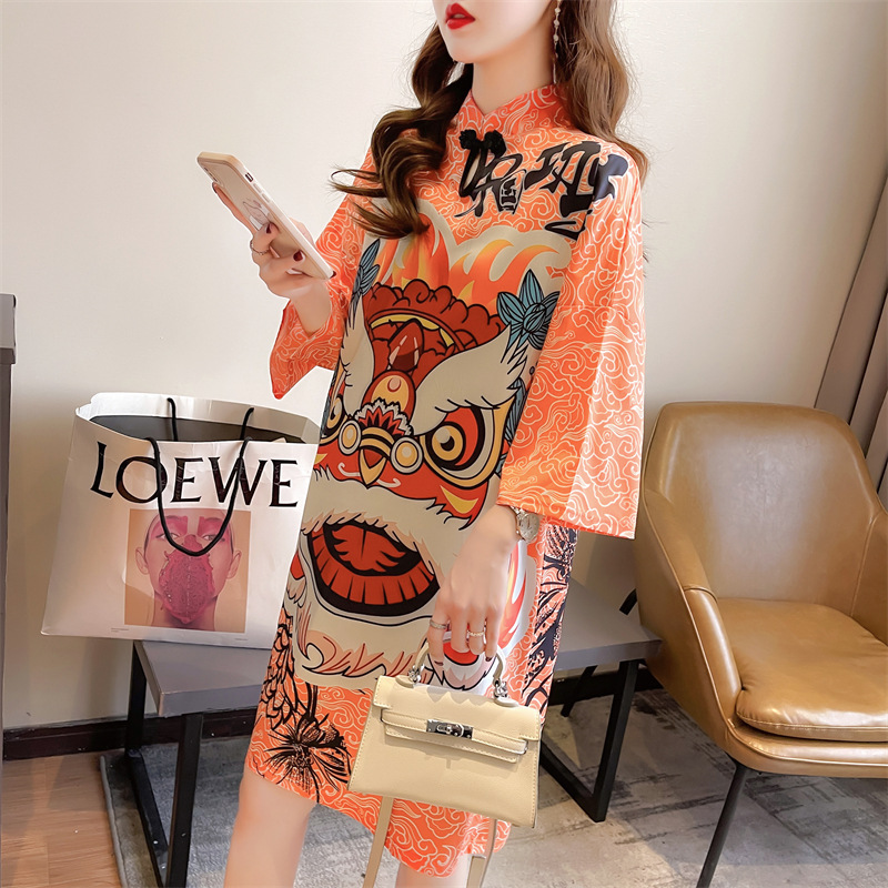 Черное платье-чонсам 2025 летний национальный тренд с принтом молодежное улучшенное для девушек китайский стиль уличное короткое контрастное платье