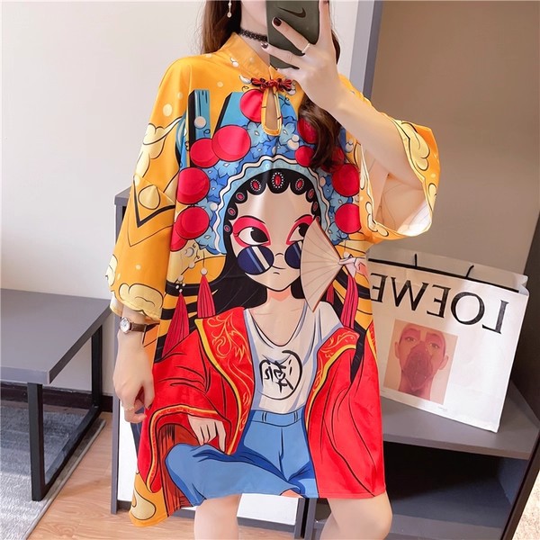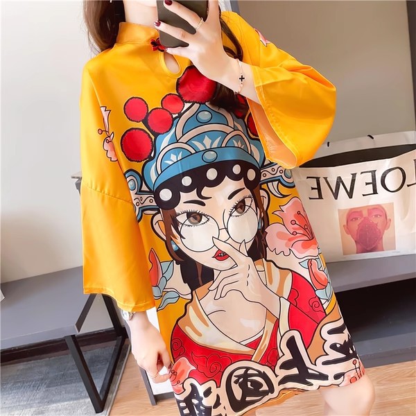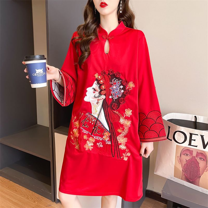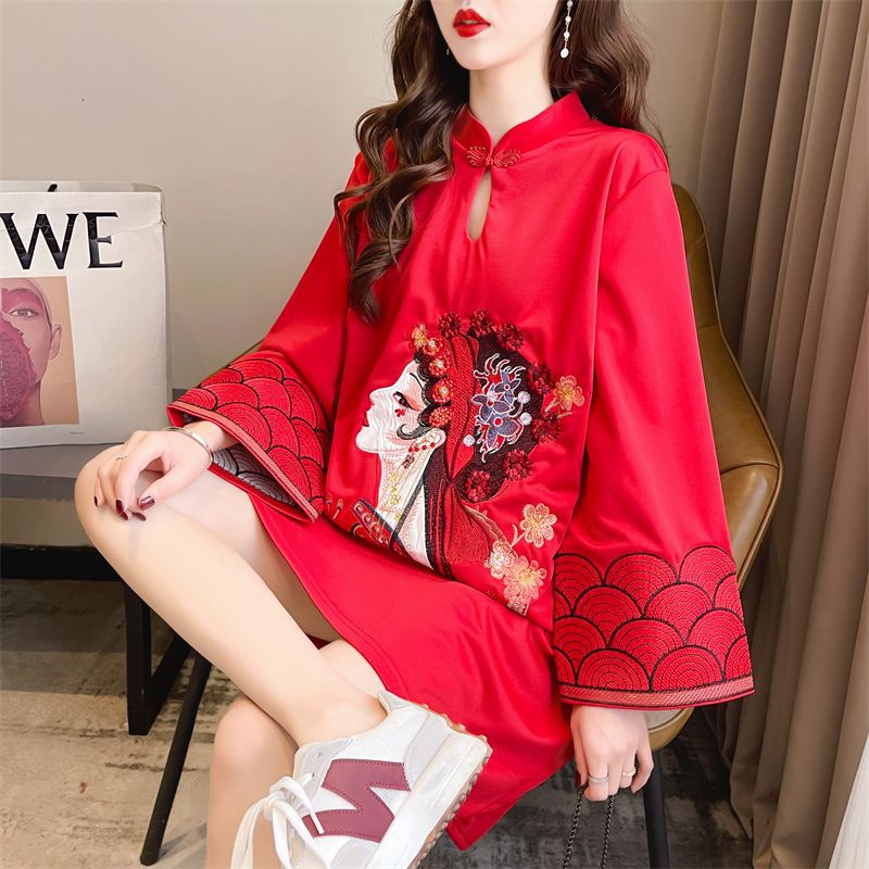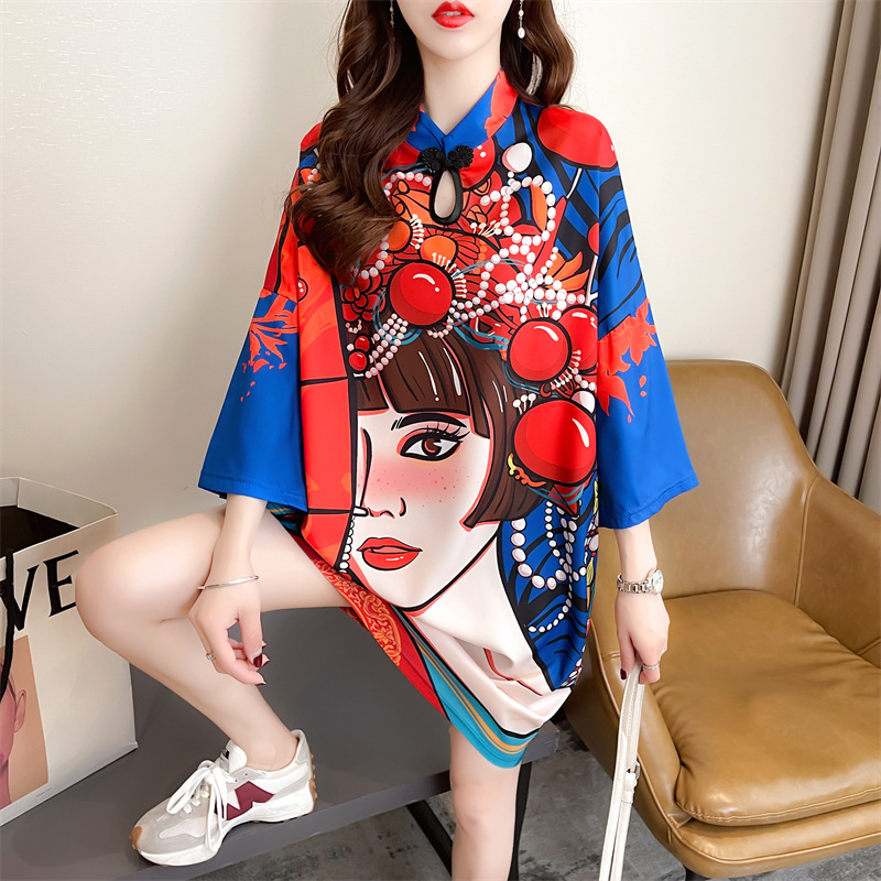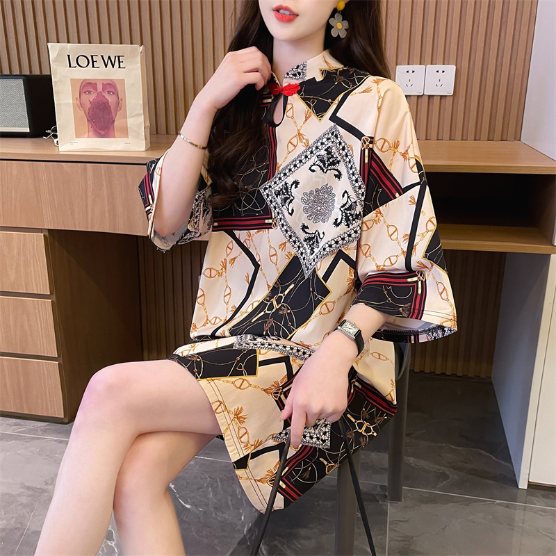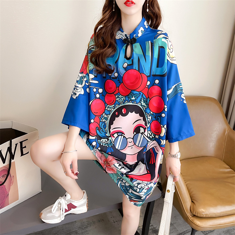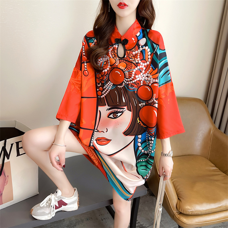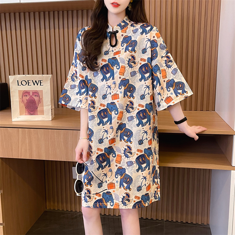 Черное платье-чонсам 2025 летний национальный тренд с принтом молодежное улучшенное для девушек китайский стиль уличное короткое контрастное платье