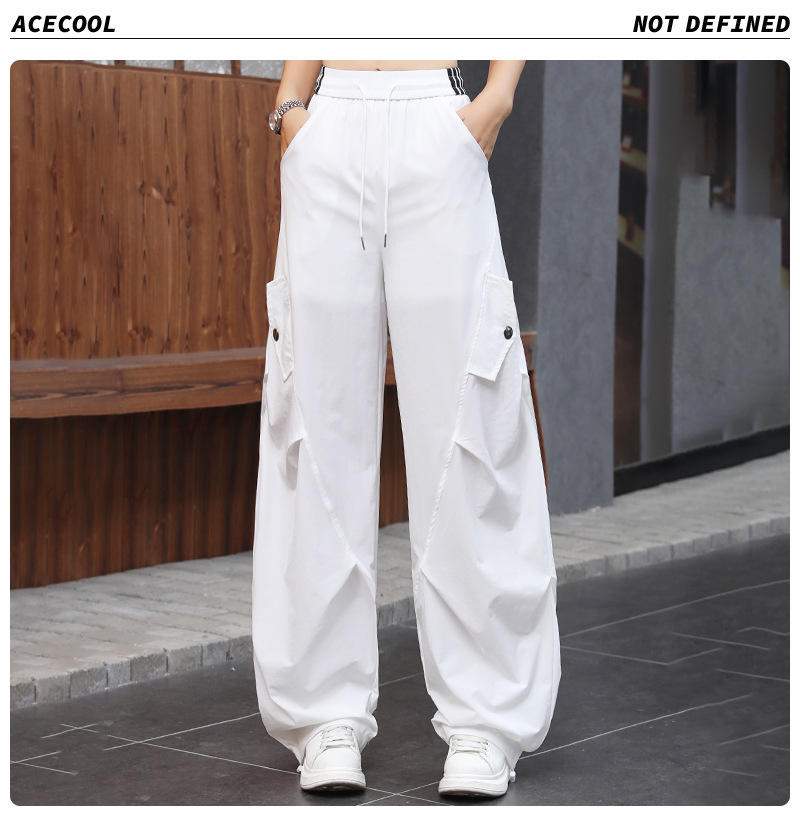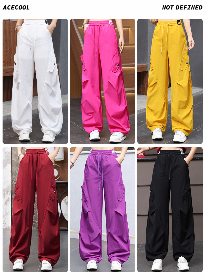 Женские брюки-карго десантника в американском стиле, новые летние спортивные брюки с высокой талией, быстросохнущие повседневные широкие длинные брюки для улицы.