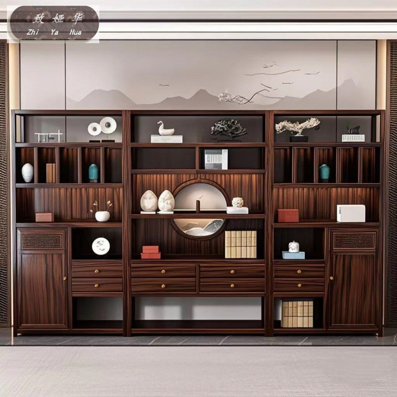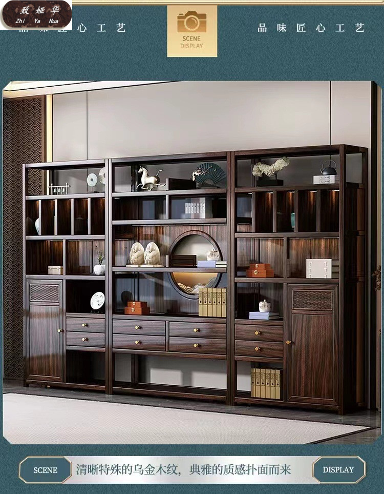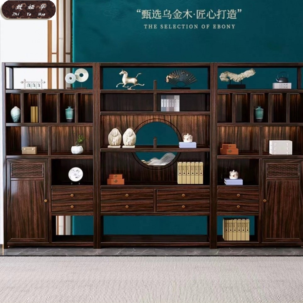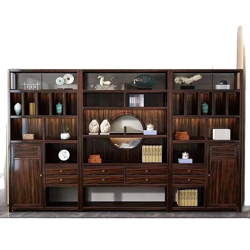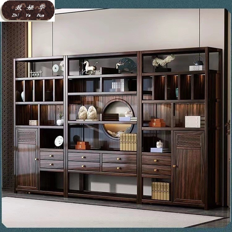 Книжная полка из черного дерева с несколькими сокровищами, книжный шкаф с лампой, витрина для офиса, гостиной, новый комбинированный книжный шкаф из цельного дерева в китайском стиле
