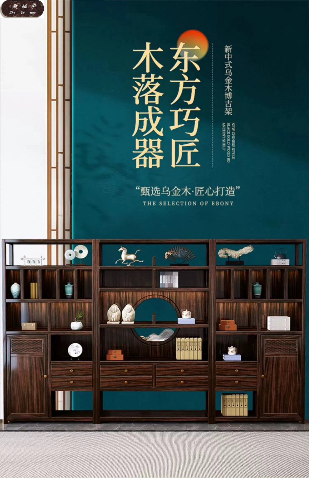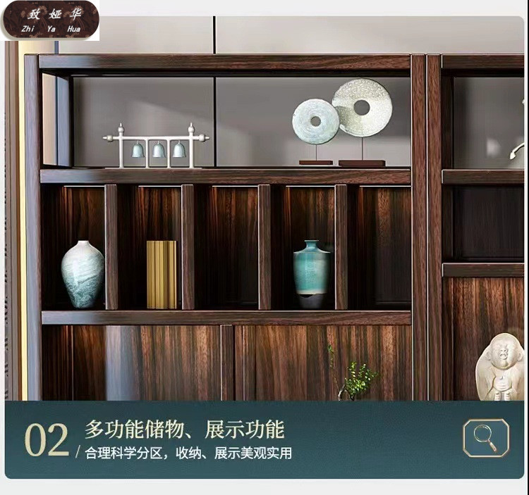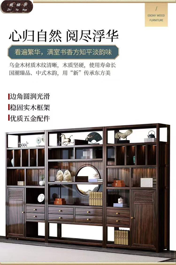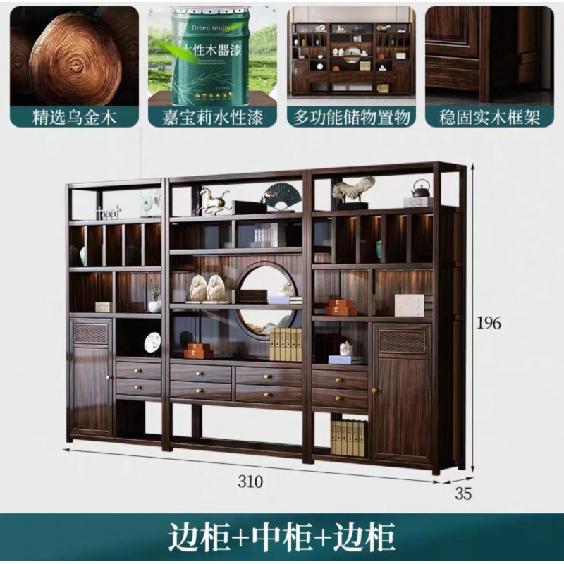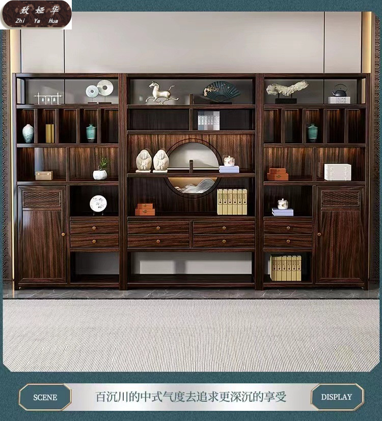 Книжная полка из черного дерева с несколькими сокровищами, книжный шкаф с лампой, витрина для офиса, гостиной, новый комбинированный книжный шкаф из цельного дерева в китайском стиле