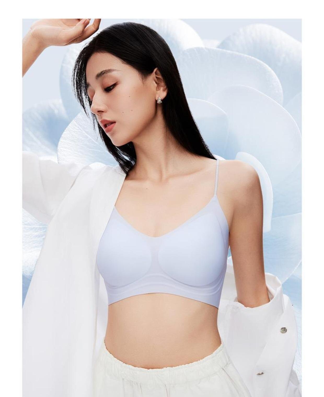 Бесшовное нижнее белье, женское летнее тонкое дышащее мягкое поддерживающее красивое сплошное белье на тонких бретельках, бюстгальтер из ледяного шелка