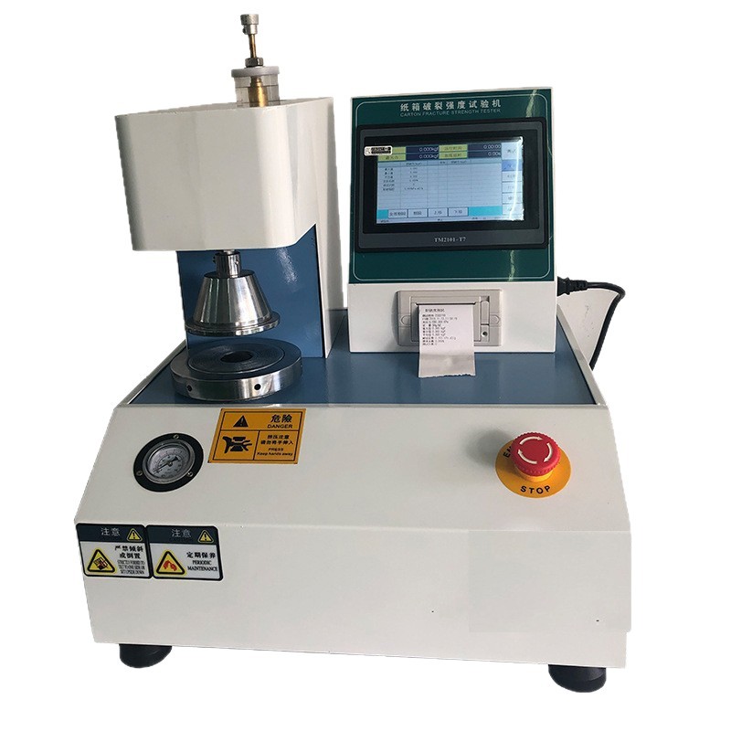 全自动耐破度仪是测试纸箱纸板的破裂强度值,采用数字显示压力,在试料破裂时,自动保留最大破裂强度值,同时可趋势打印检测结果。破裂强度试验机的指示方式为数位式,容量为0-100kg/cm2。破裂强度试验机广泛的适用于包装材料,包括一般纸张、瓦楞纸、卫生纸、包装、 纸等等, 及皮革、布类、包装薄膜之上, 可有效的对产品质量进行监测。