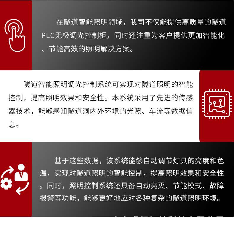 我司是专业生产隧道弱电机电设备的厂家,隧道常用的PLC控制柜、LED调光灯具、调光控制器、COVI检测仪、亮度检测仪、车道指示器、情报板、电光标志、紧急电话等等均有生产,欢迎点击或者来电咨询。产品物美价廉,惊喜多多!