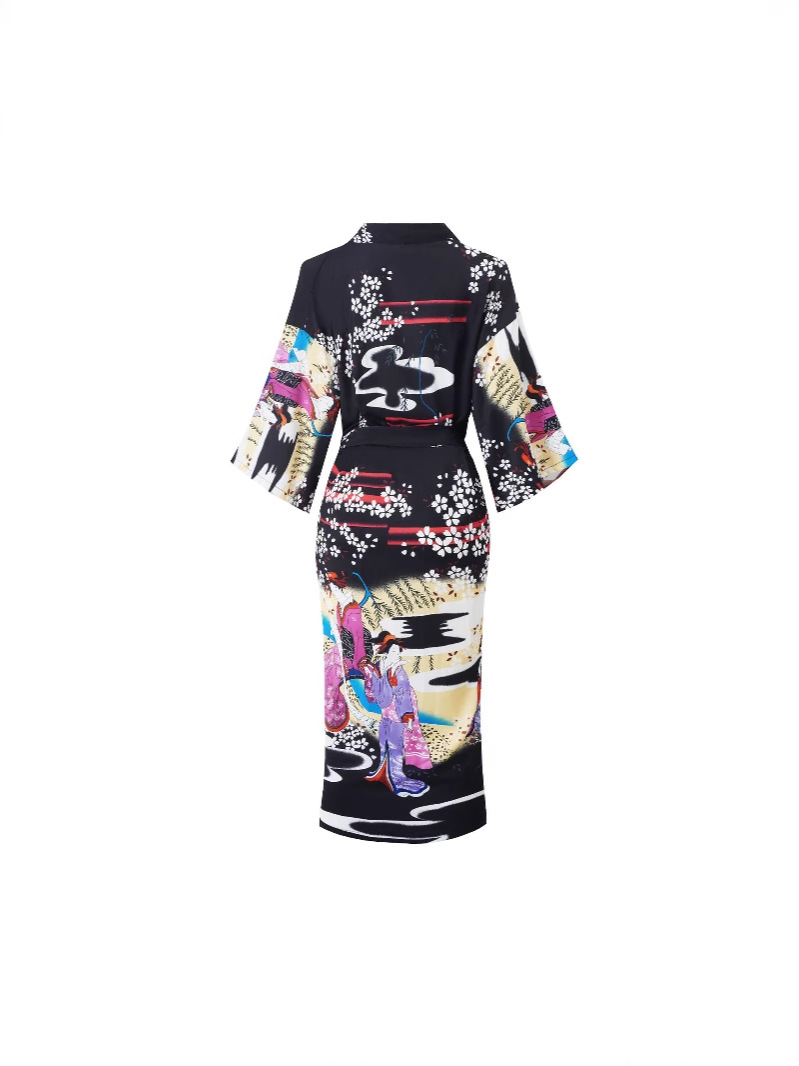 Кимоно средней длины с принтом в этническом стиле, кардиган с поясом, тонкая куртка для мужчин и женщин, европейская и американская элегантная повседневная тонкая куртка